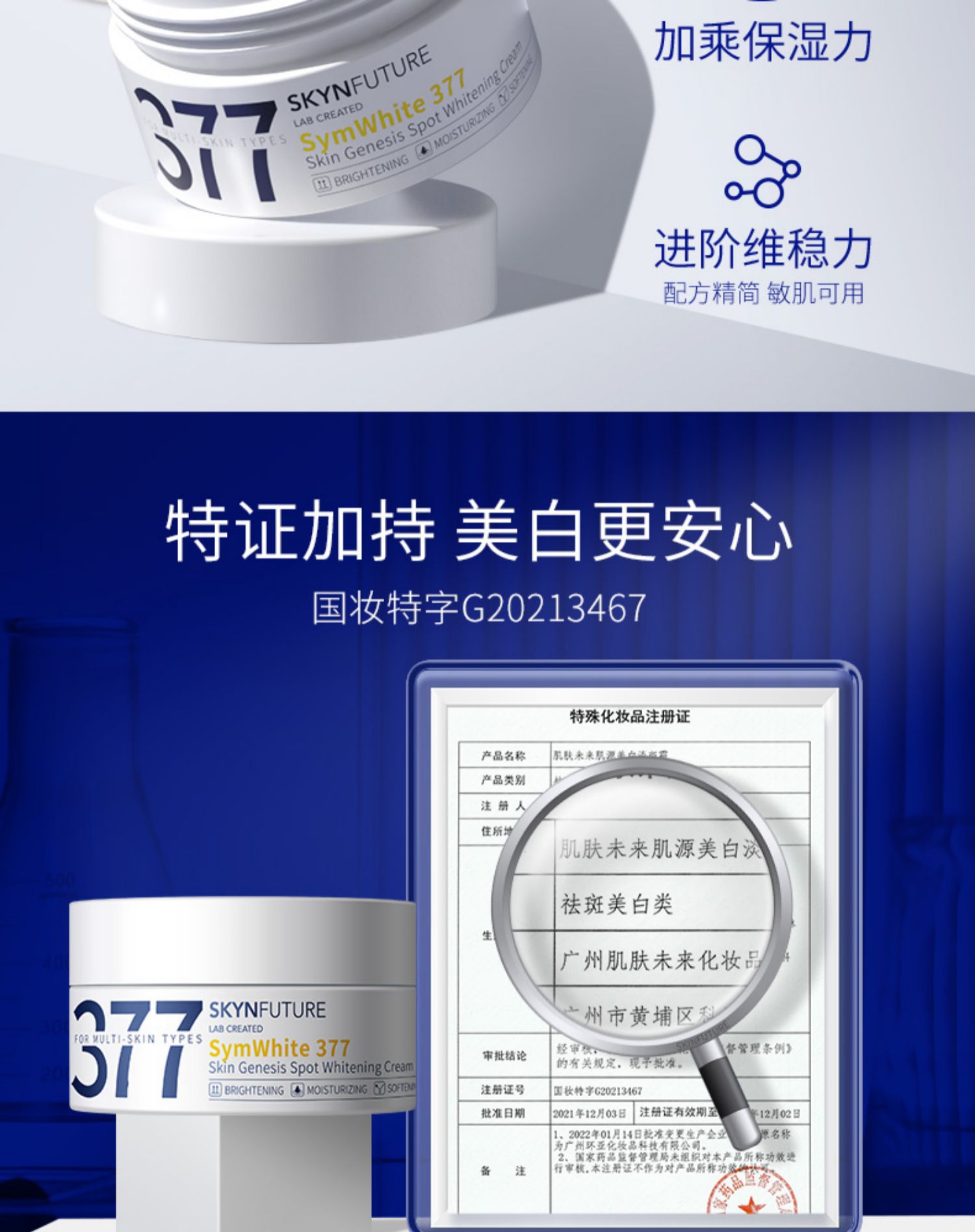 肌肤未来377美白面霜淡化色斑男女士提亮肤色补水保湿滋润秋冬季