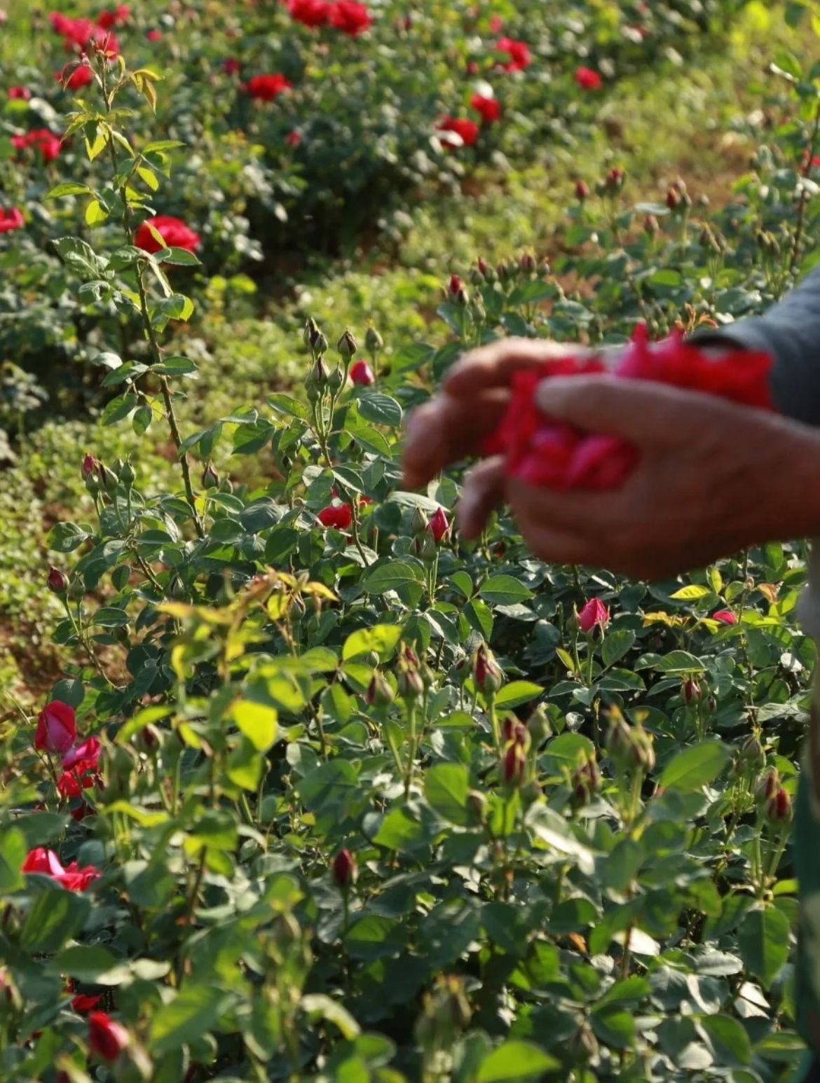 娇嫩欲滴的墨红玫瑰遍布山野。