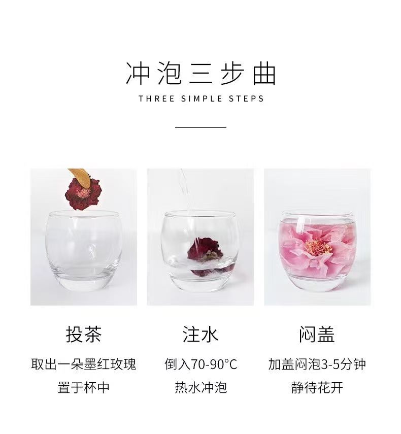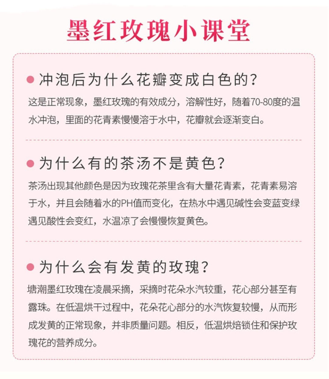 【养颜护肤】墨红玫瑰花茶含有丰富的花青素是抗衰老的有效元素,有美白、淡斑、祛痘、祛黄气。