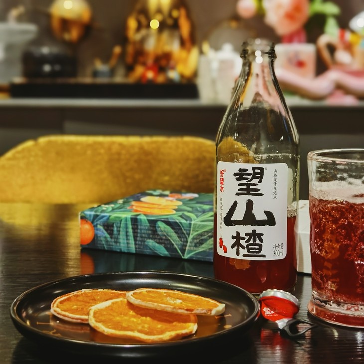 望山楂(希望你收获健康)应该是好望水的入门款,它的配料里面除了山楂外,还有陈皮、甘草、玫瑰花和茉莉花这些草本原料,这让汽水的层次更丰富,果味更浓郁。不同于以往山楂饮料太酸的印象,加入气泡感的它,既有果味的清甜,又有碳酸的劲爽,酸而不涩、甜而不腻,喝起来伴有陈皮和草莓味,就像干红葡萄酒一样,优秀!