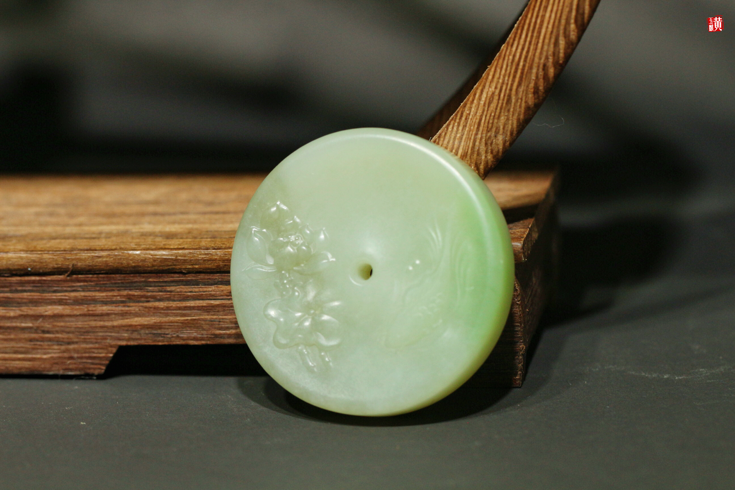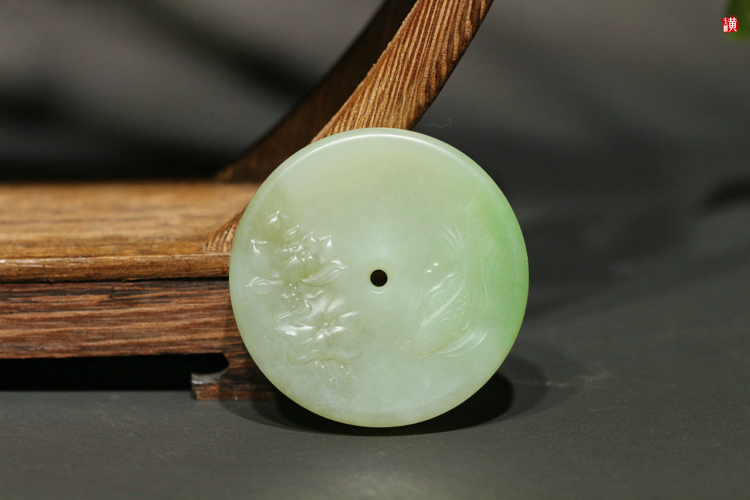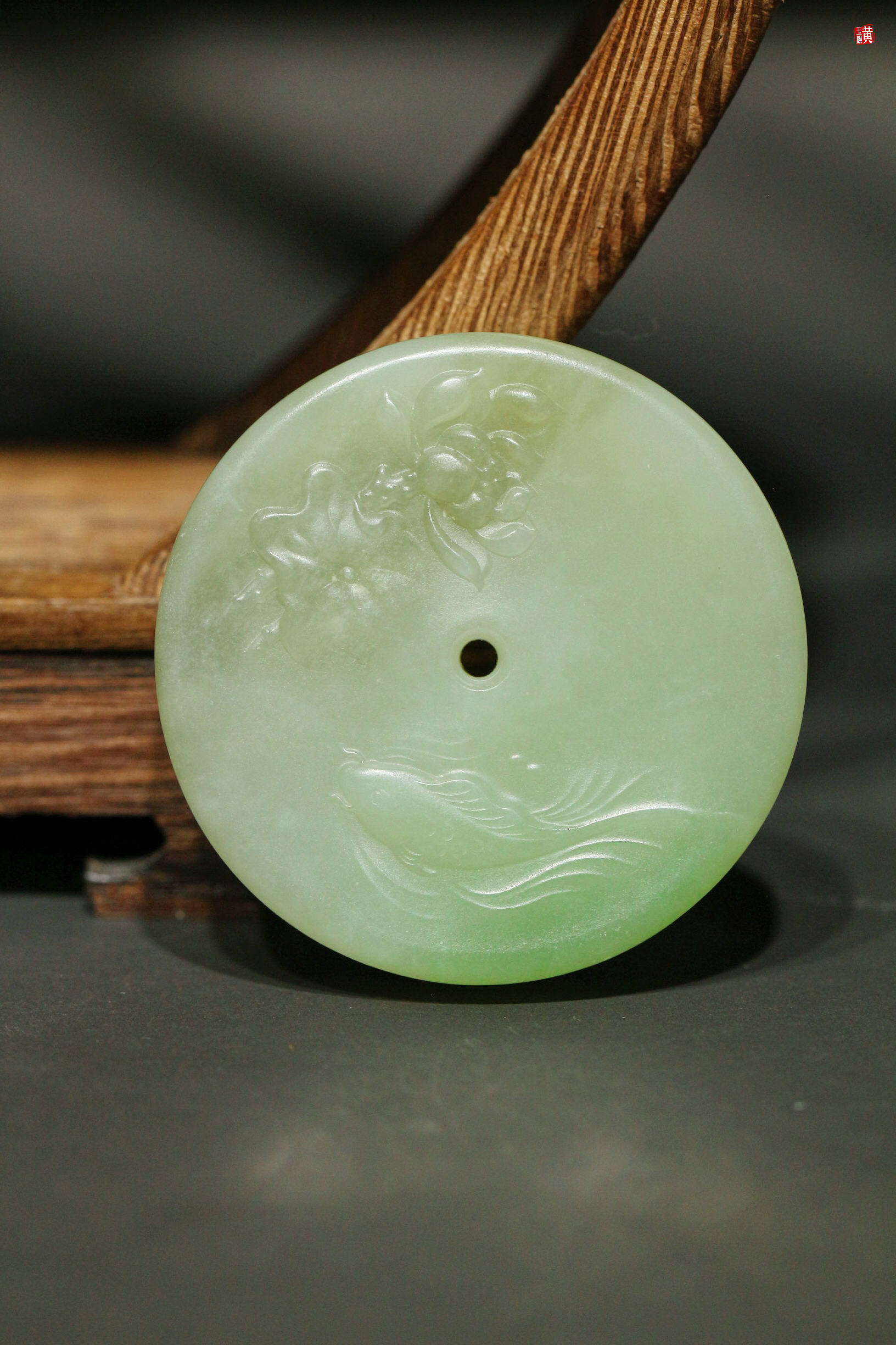 和田玉翠青 【莲莲有鱼】吊坠 配精美挂绳