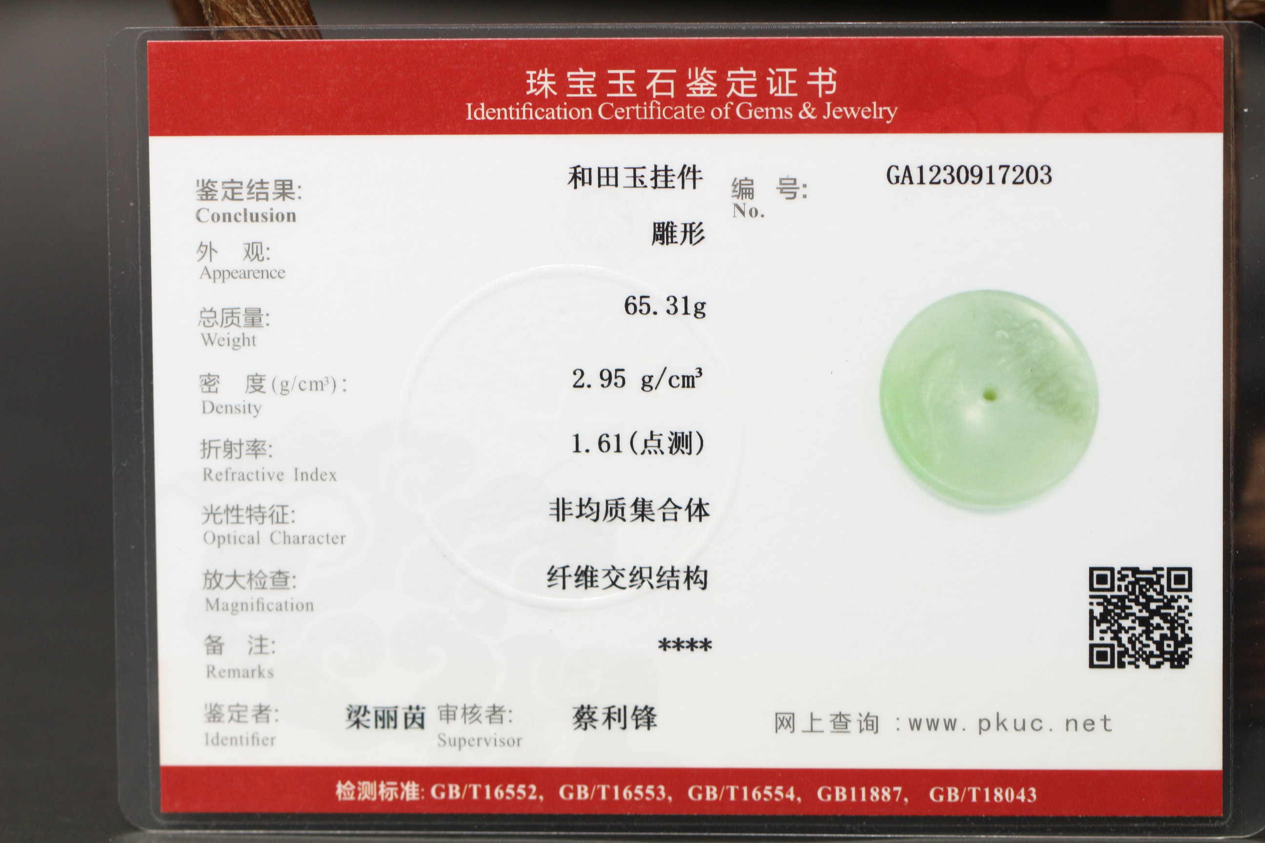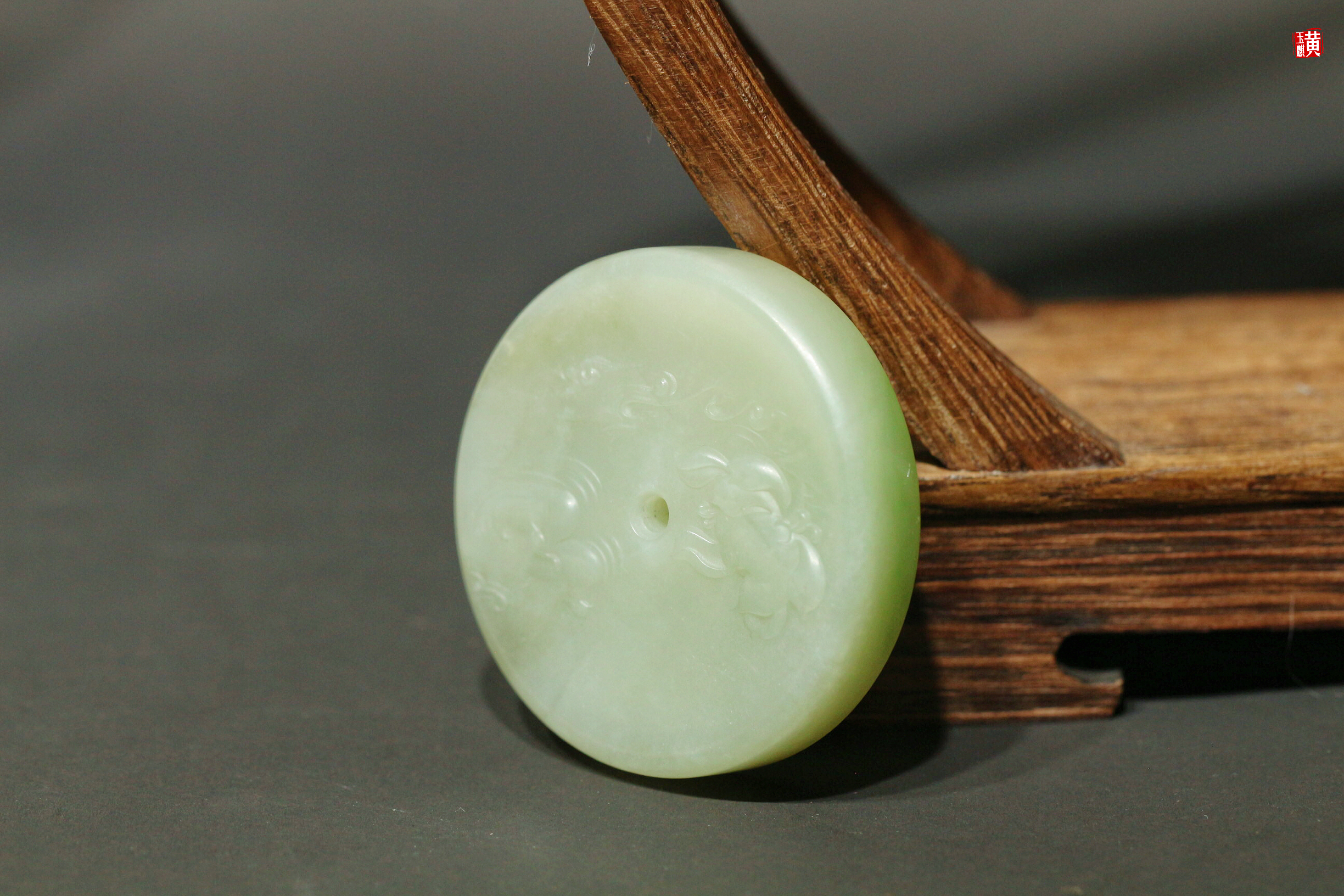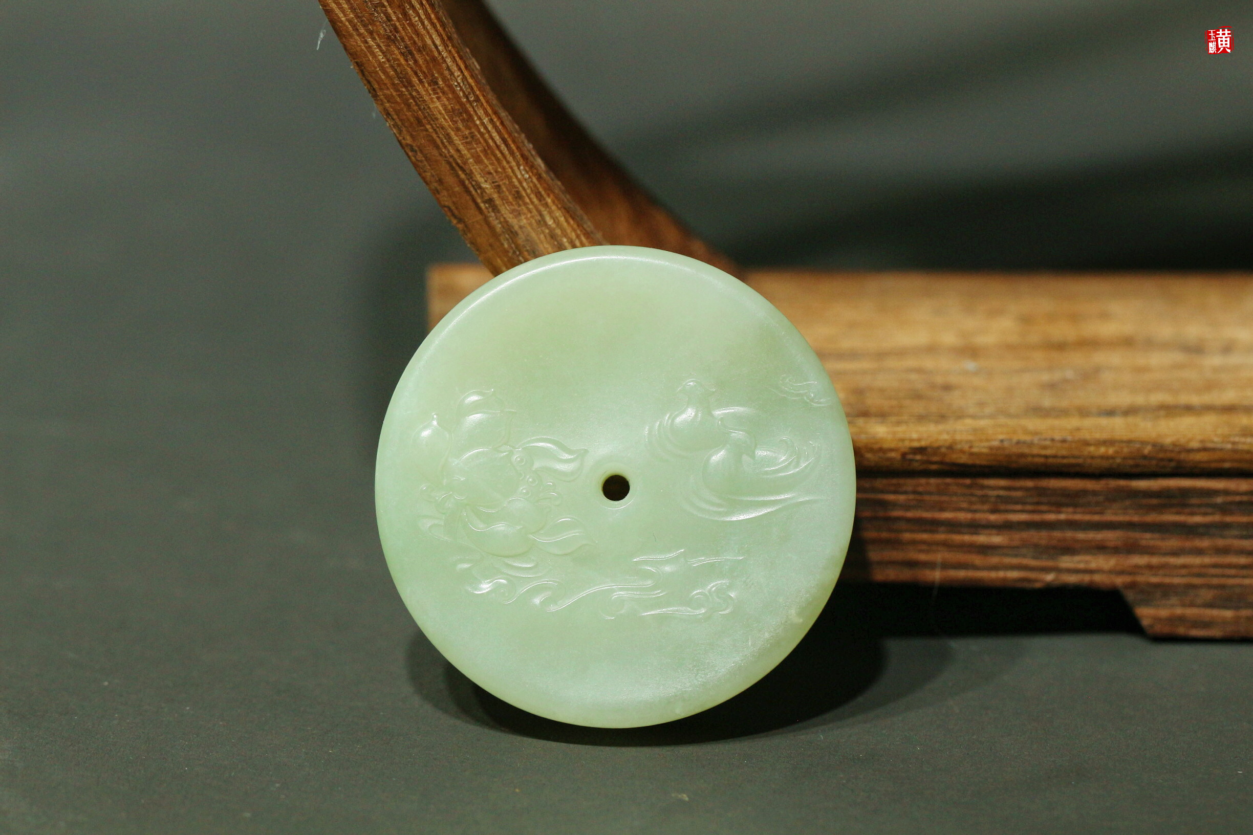 和田玉翠青 【莲莲有鱼】吊坠 配精美挂绳