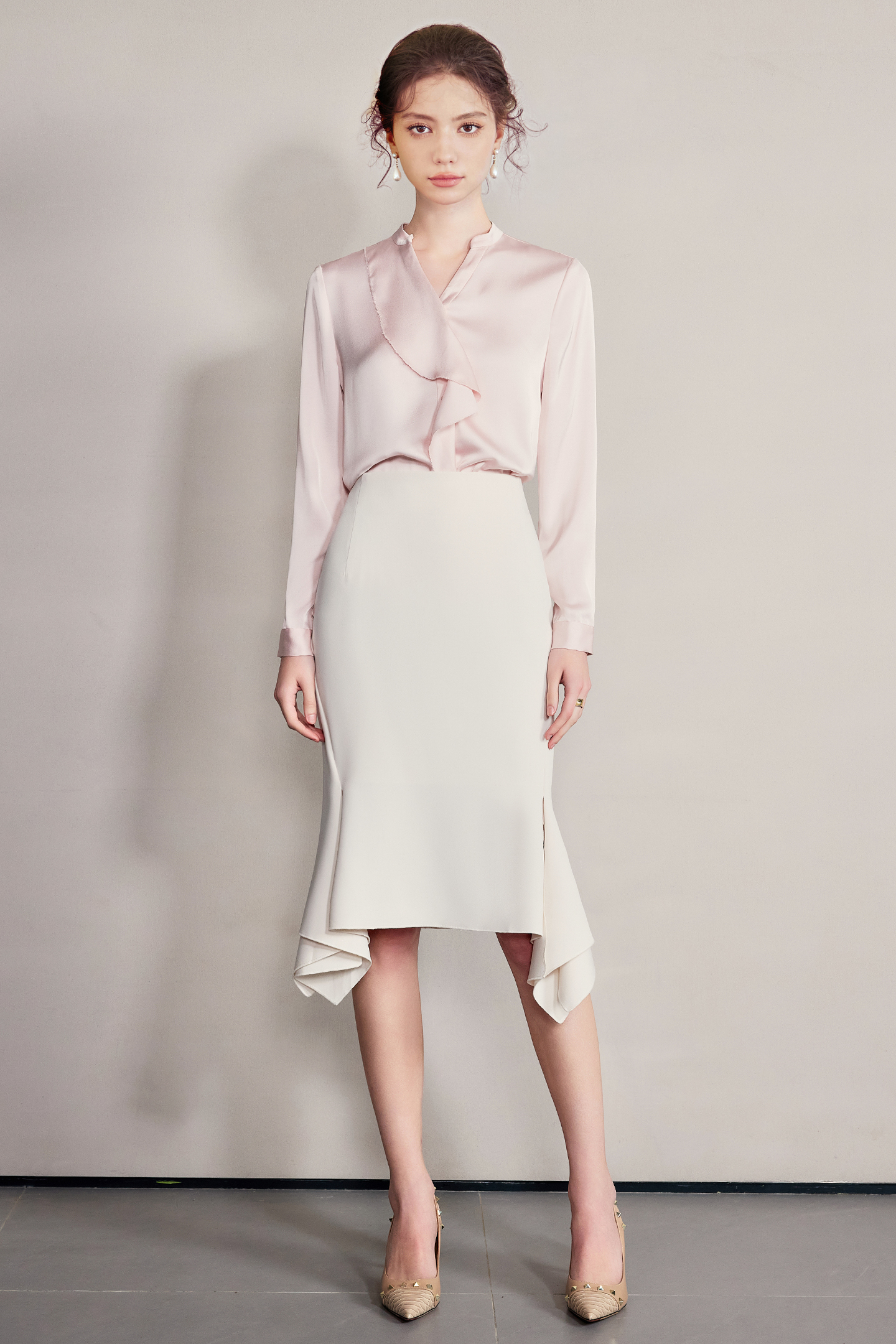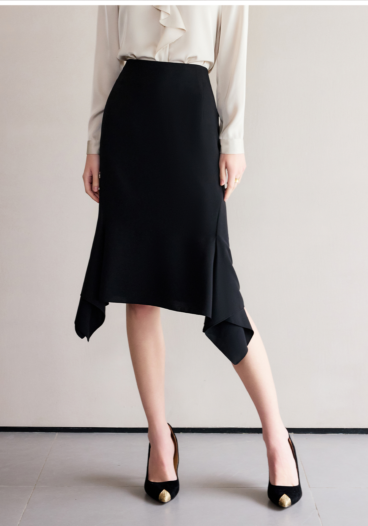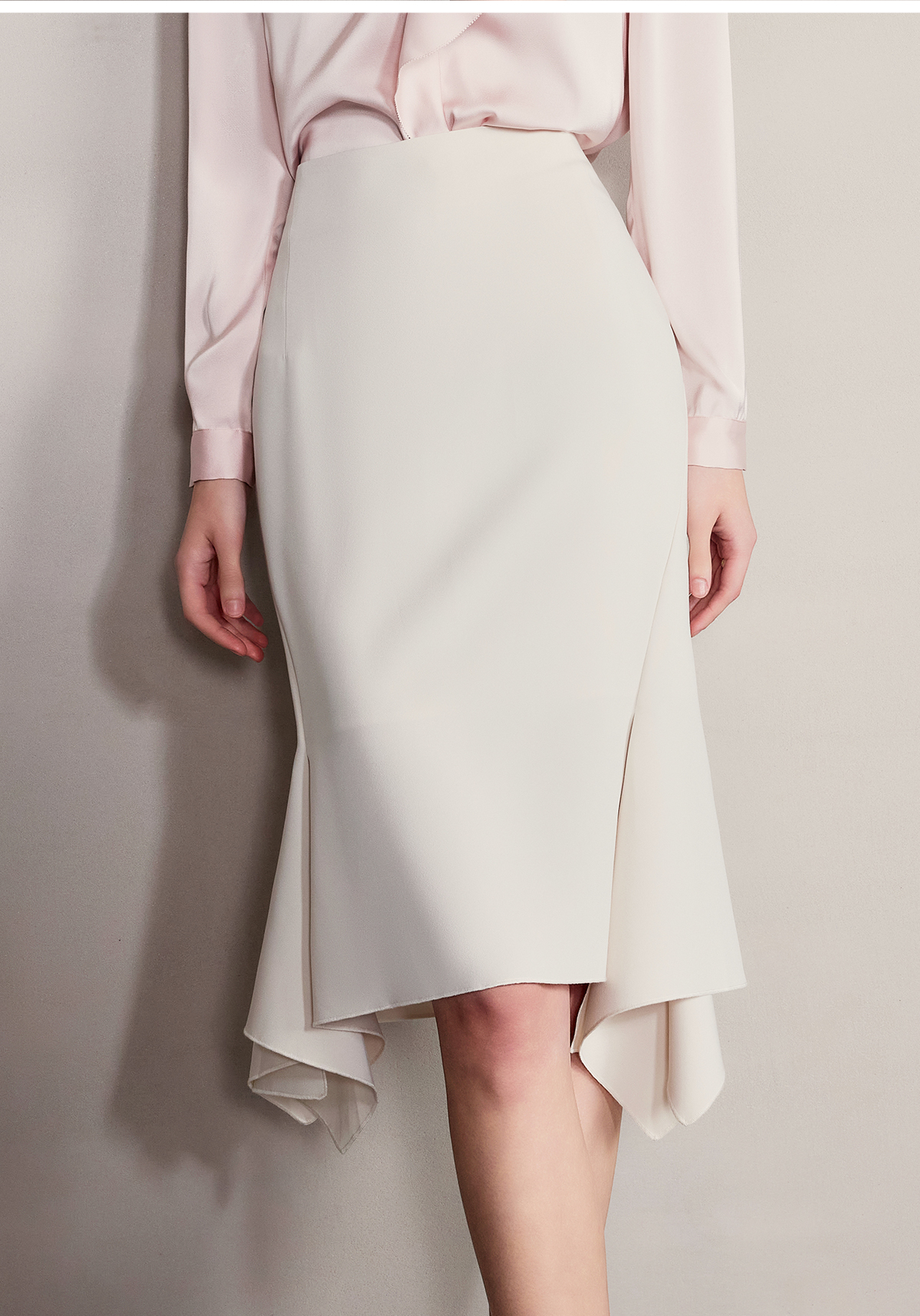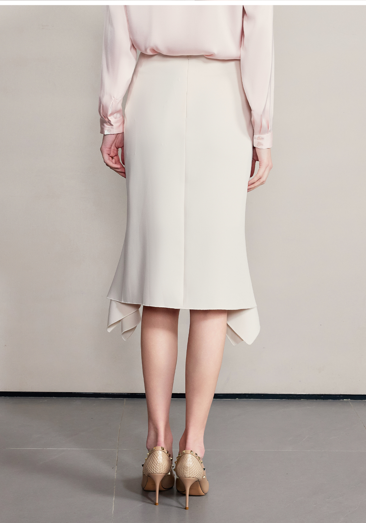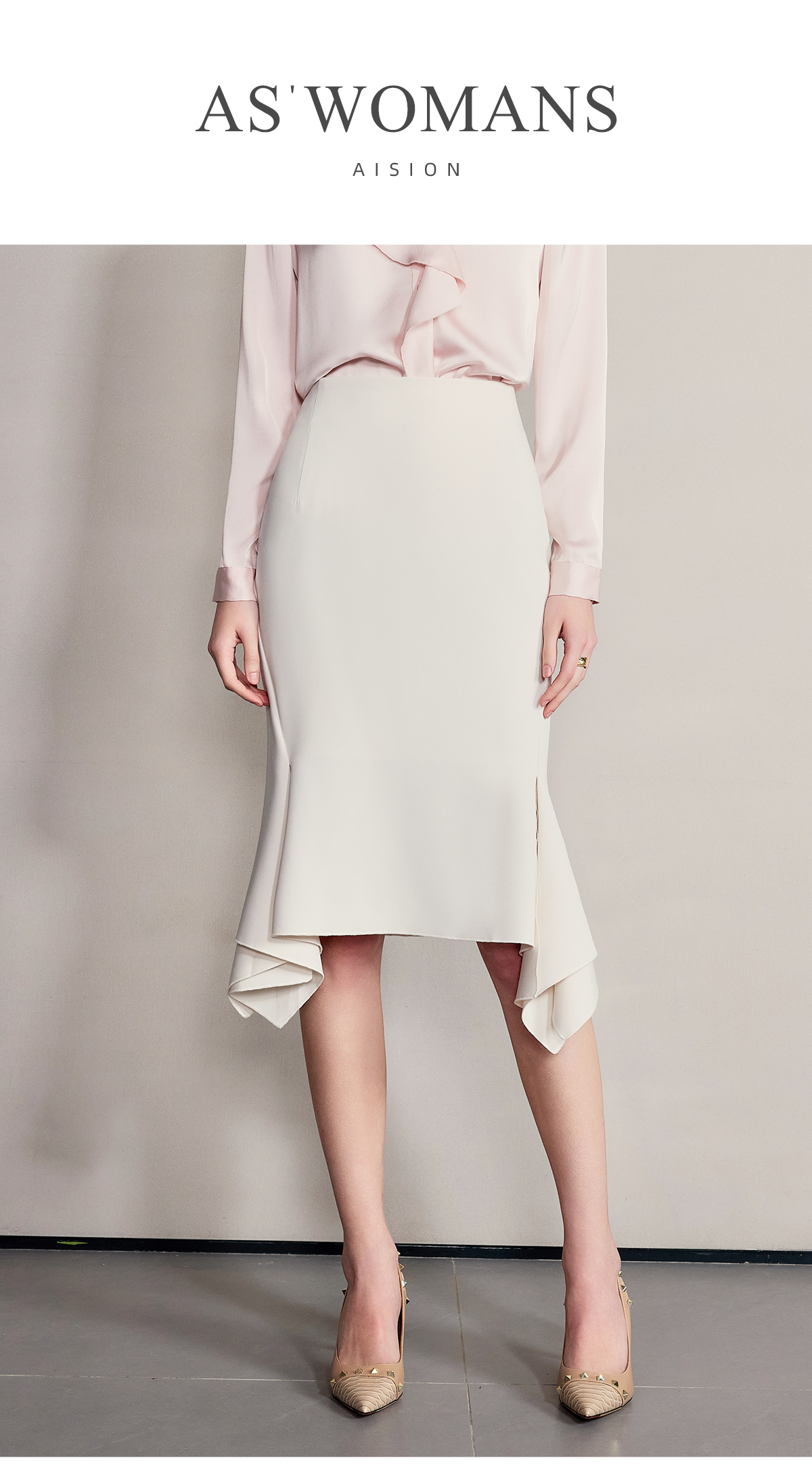 艾尚臣2025新款高级感白色时尚减龄鱼尾裙气质优雅不规则半身裙女