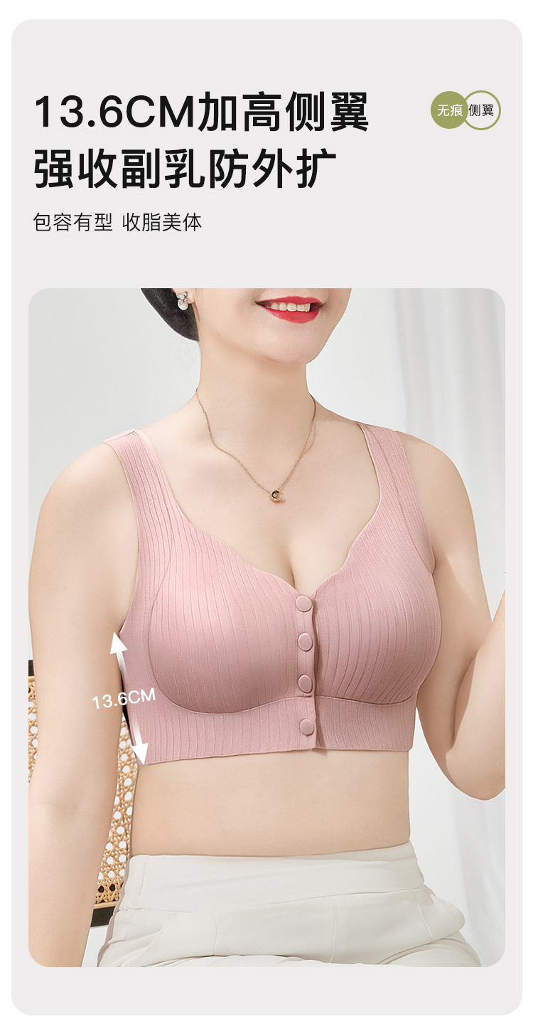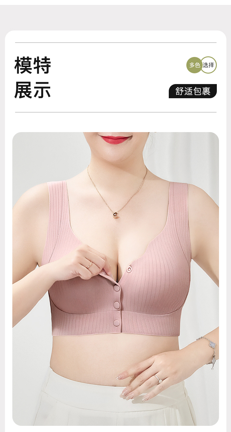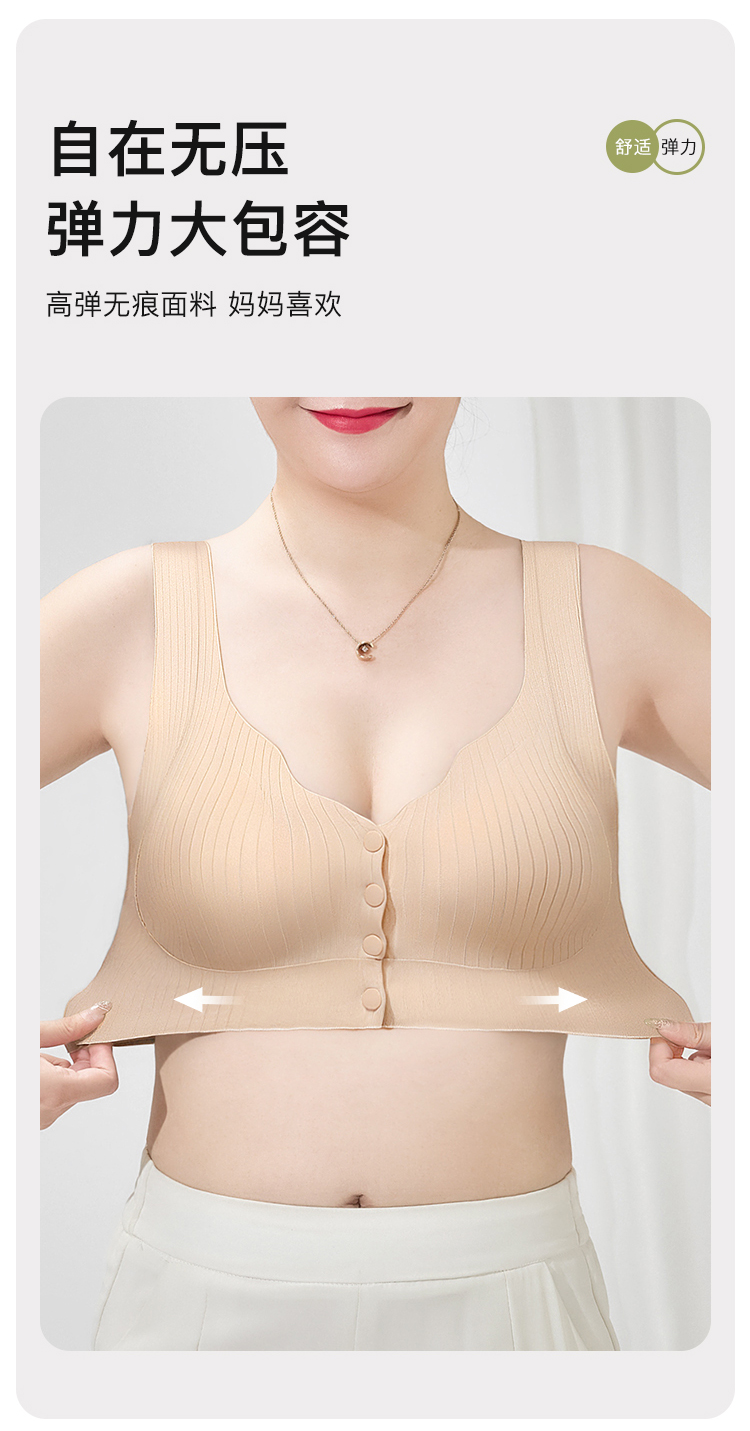 D1-【B杯】【中老年大码文胸】夏季超薄款前开扣内衣轻薄无痕背心式文胸罩 莲月荷香/欢柔舒欣