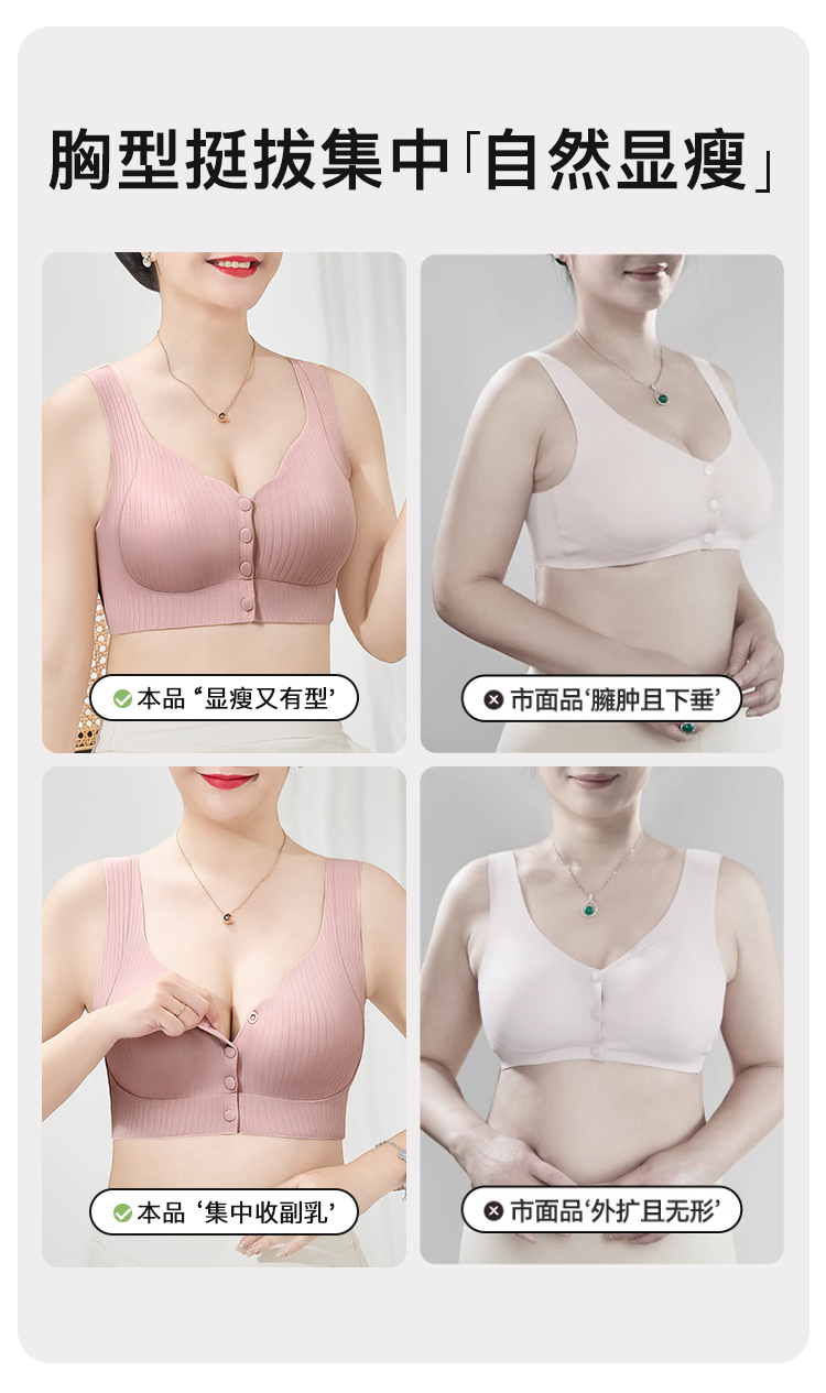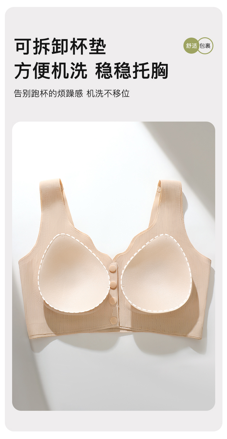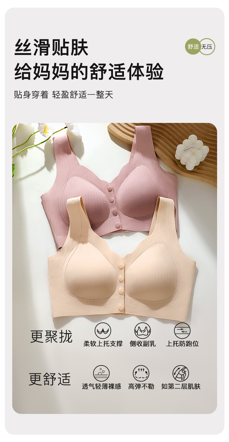 D1-【B杯】【中老年大码文胸】夏季超薄款前开扣内衣轻薄无痕背心式文胸罩 莲月荷香/欢柔舒欣