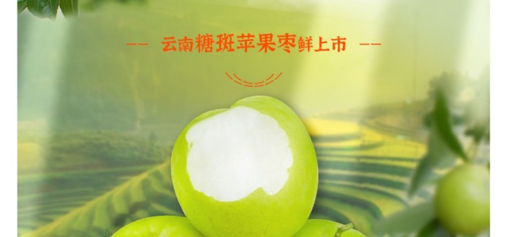 【云南雀斑苹果枣】树上熟酥脆化渣、香甜多汁、肉质细腻,专业设备分选测糖,可食率90%以上,甜度18+,补水解腻