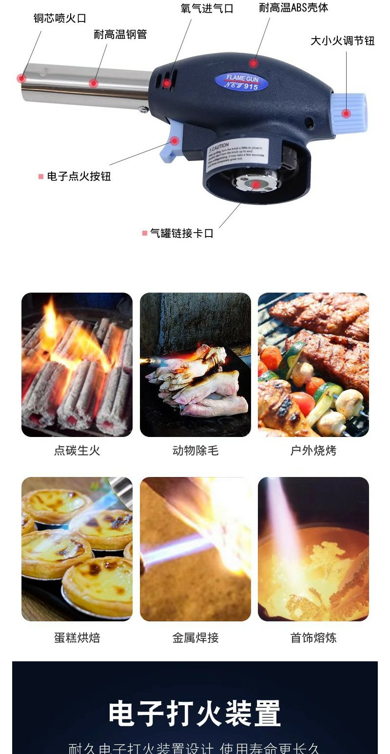 【点火枪】户外露营烧猪毛喷枪喷火器烧烤家用卡式炉气罐烘培碳炉喷枪头/个