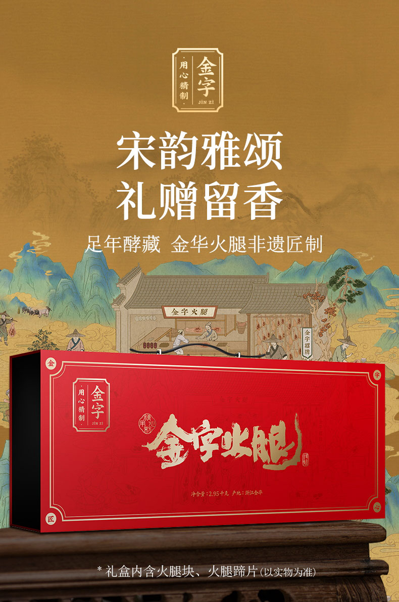 金字 金华火腿2.95kg礼盒分割 正宗浙江火腿肉特产腊味 过年礼品