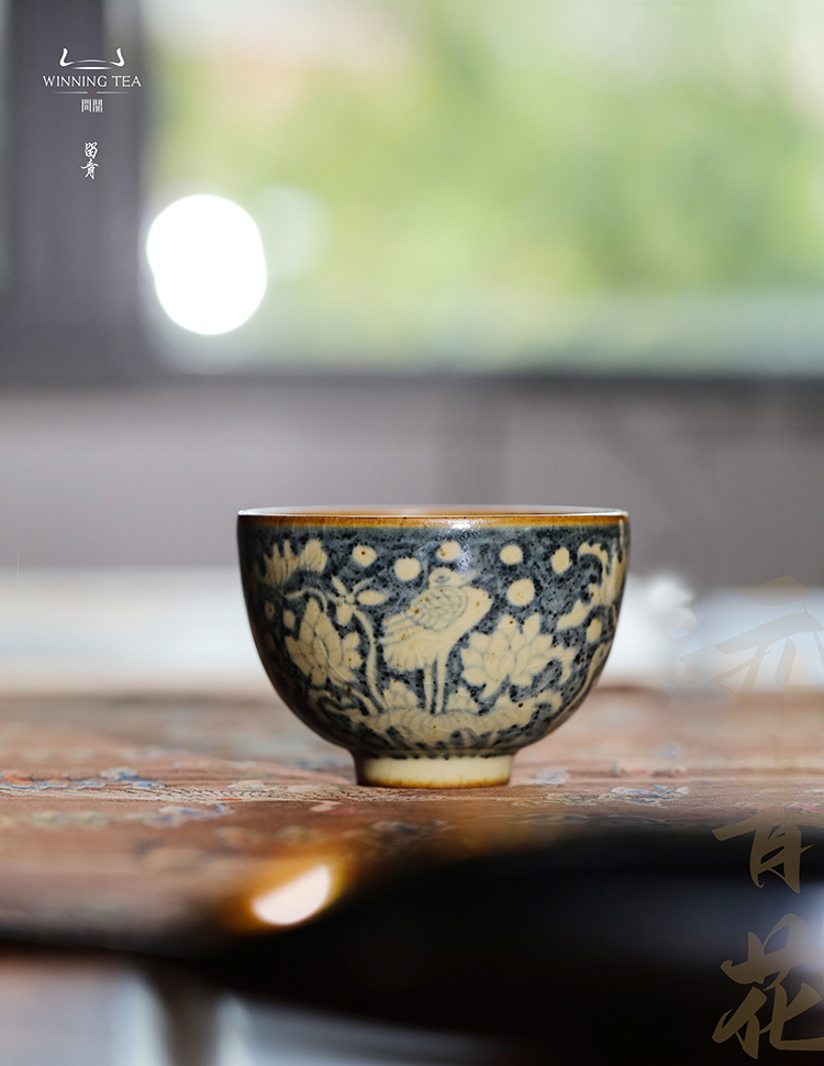 问鼎旗下留青汝瓷椒唐韶秀杯(一路莲科)
