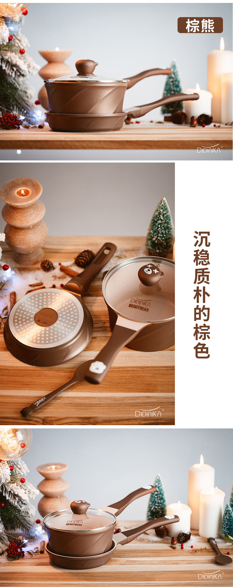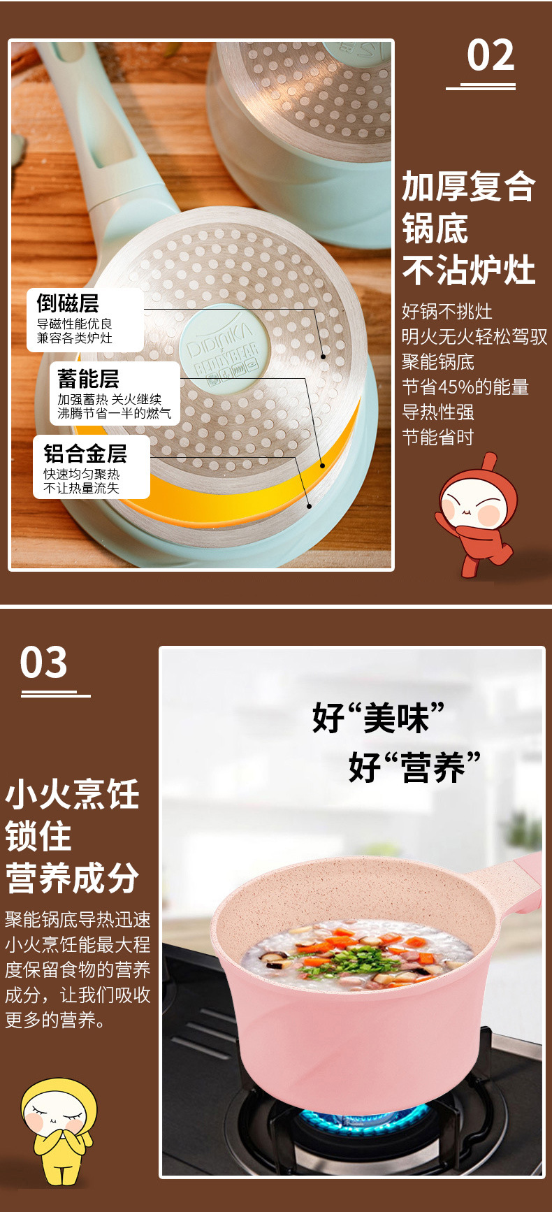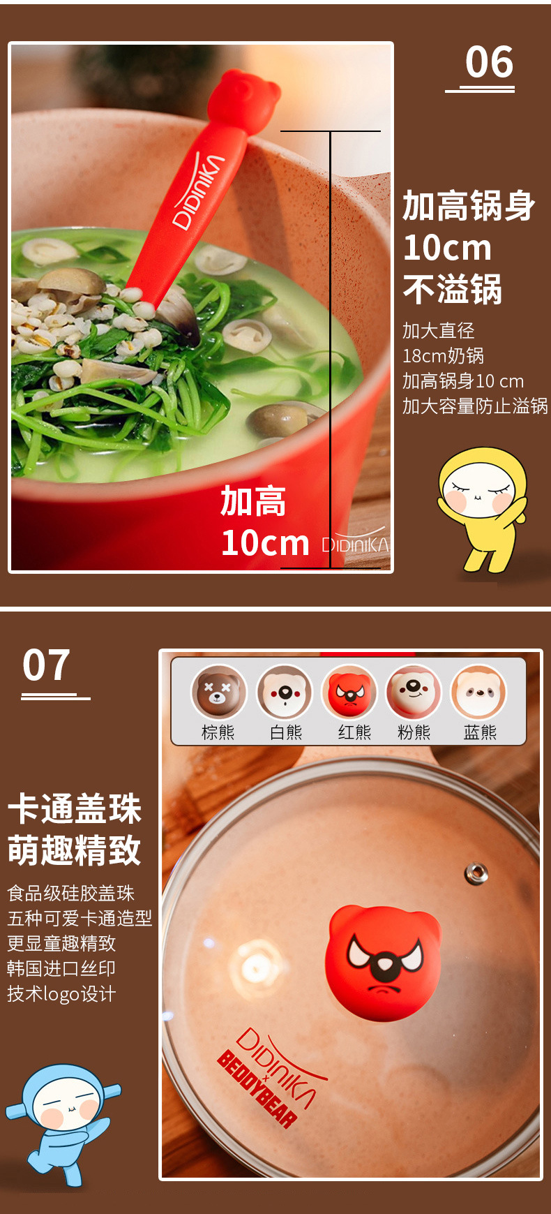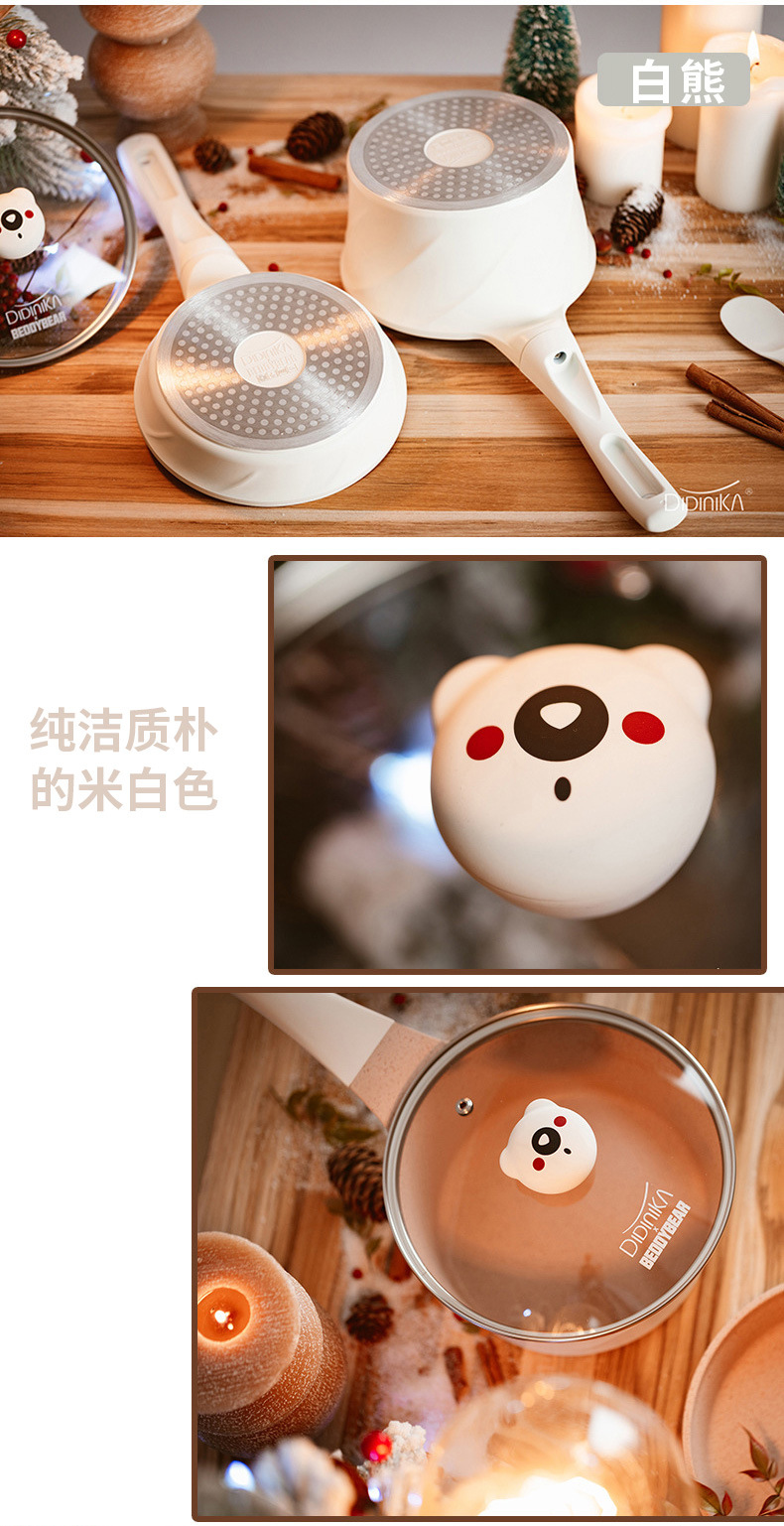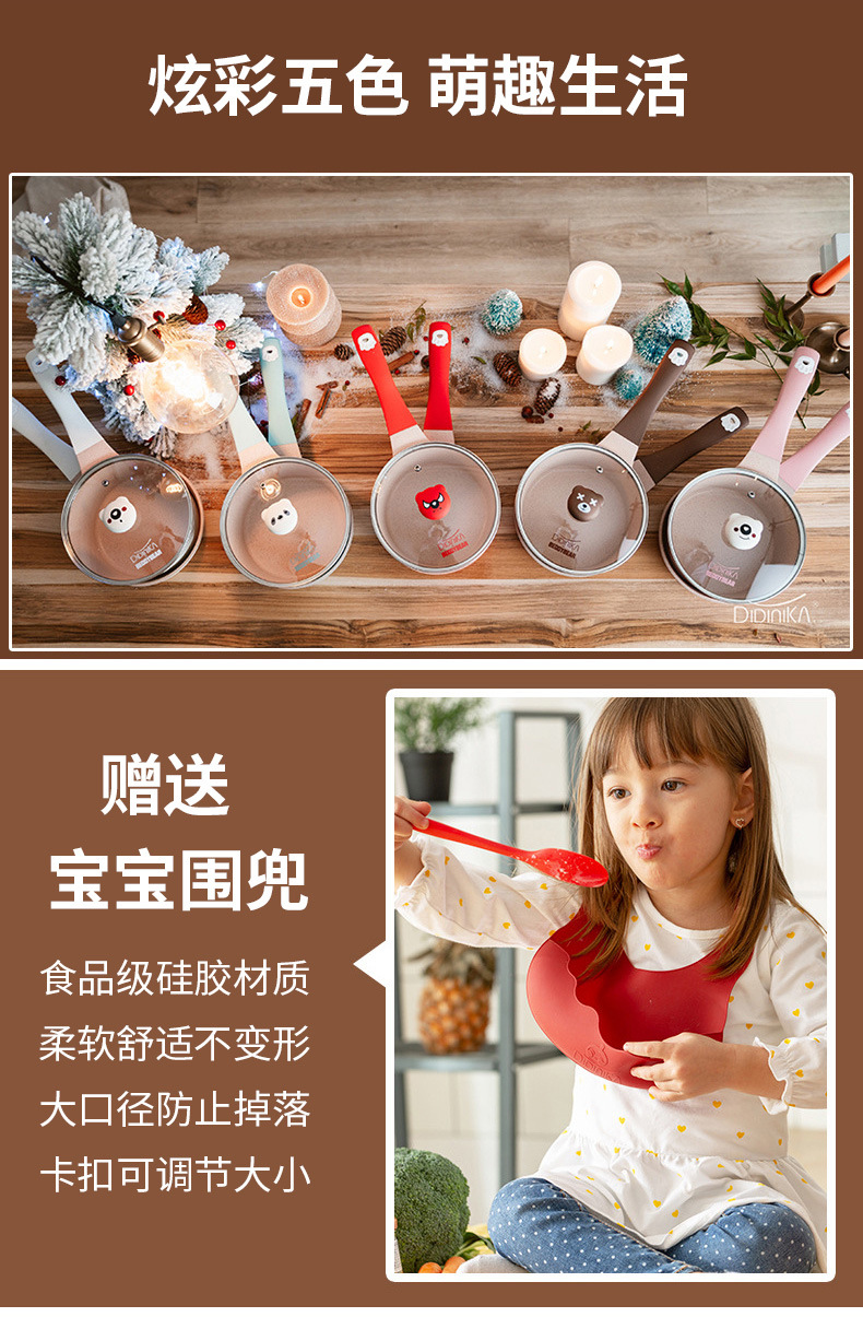 韩国didinika宝宝辅食锅饭麦石婴儿煎锅煮锅萌熊系列乖乖熊小奶锅