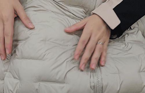 就这样在缝线处揉来揉去+拍拍打打,也都不会轻易钻绒。