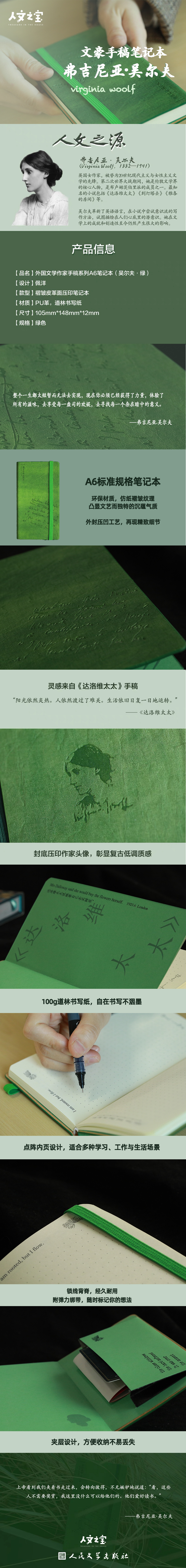 【人文之宝】外国文学作家手稿系列A6笔记本(伍尔夫-绿色) 人民文学出版社·出品
