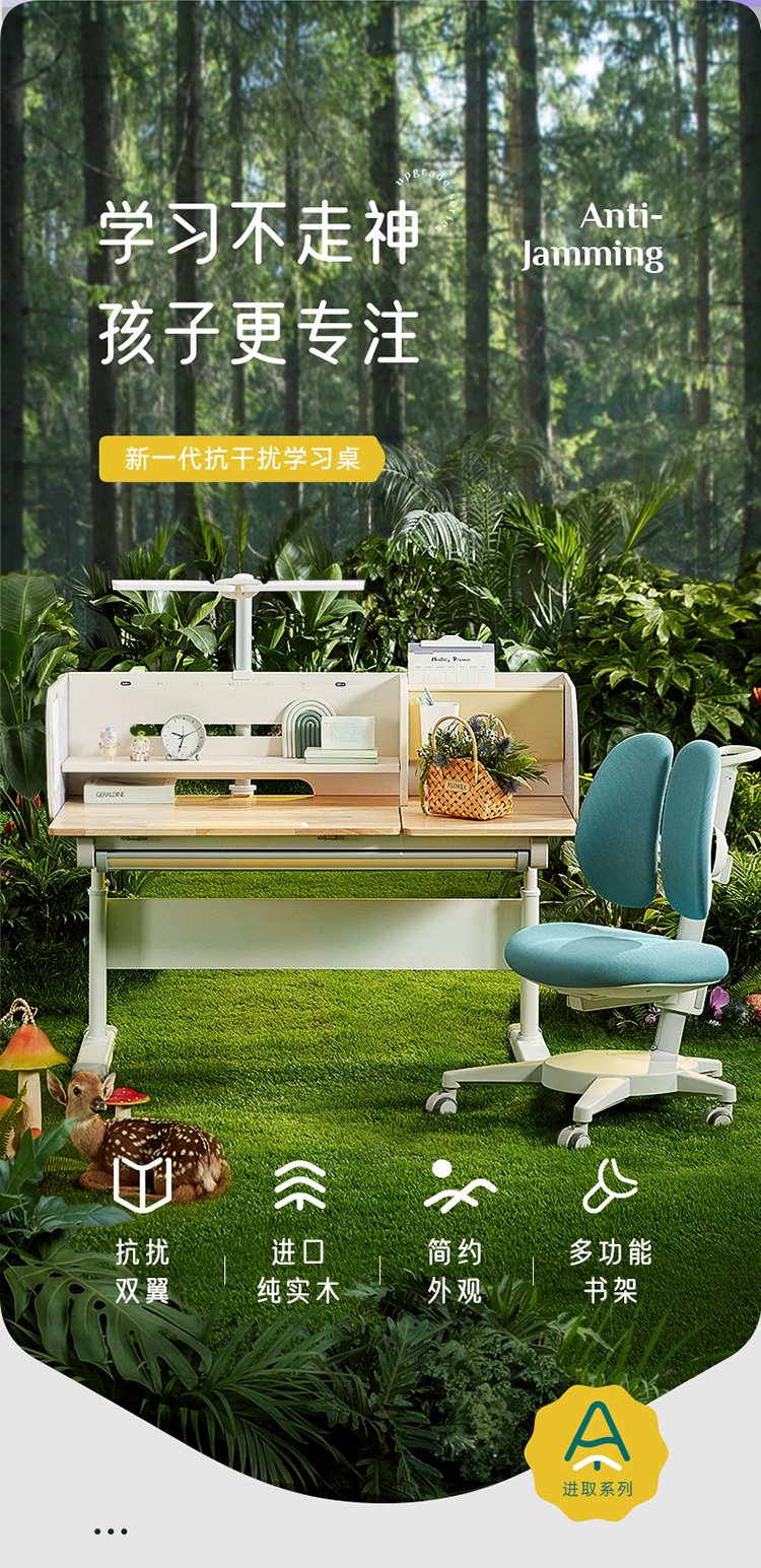 【三妈专属】【2022抗干扰系列俄罗斯A级桦木版】纯实木儿童学习桌椅套装