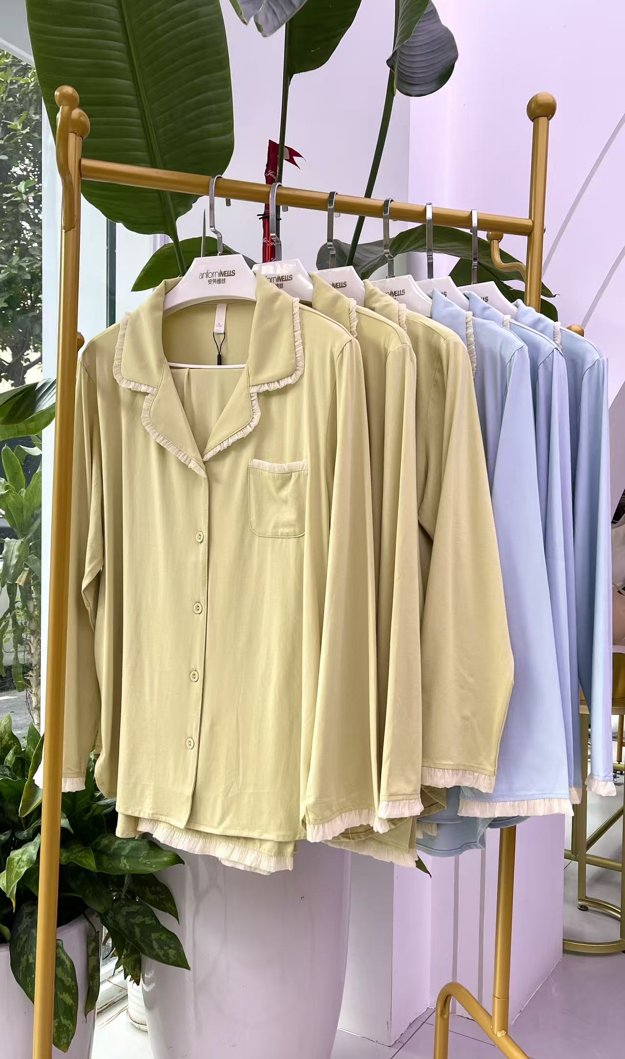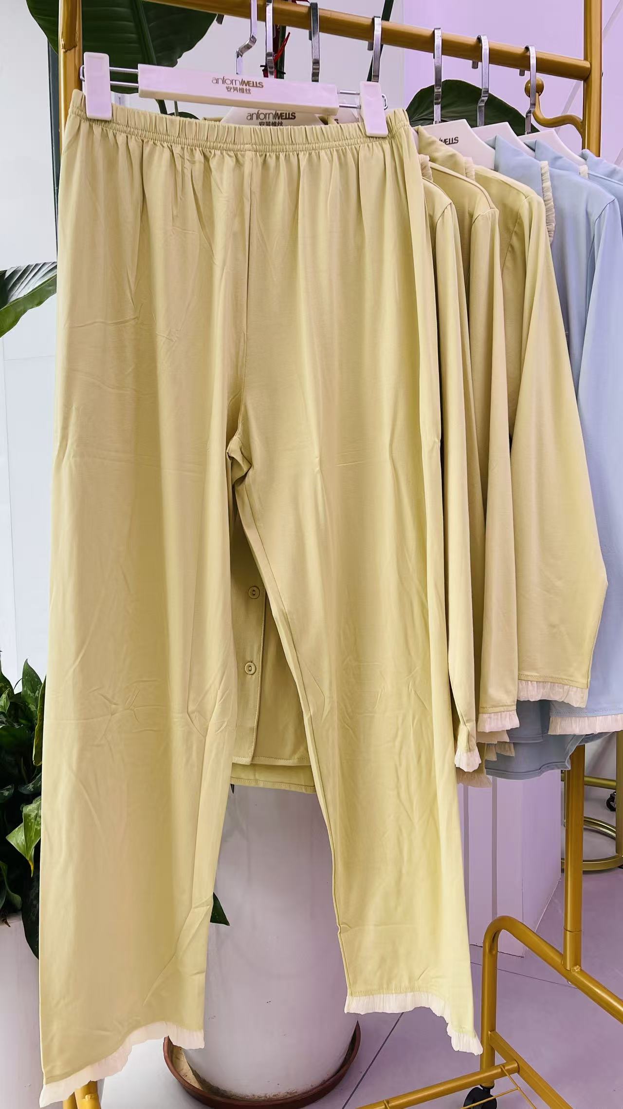 长袖长裤丝光棉翻领套装女款睡衣舒适透气1415339
