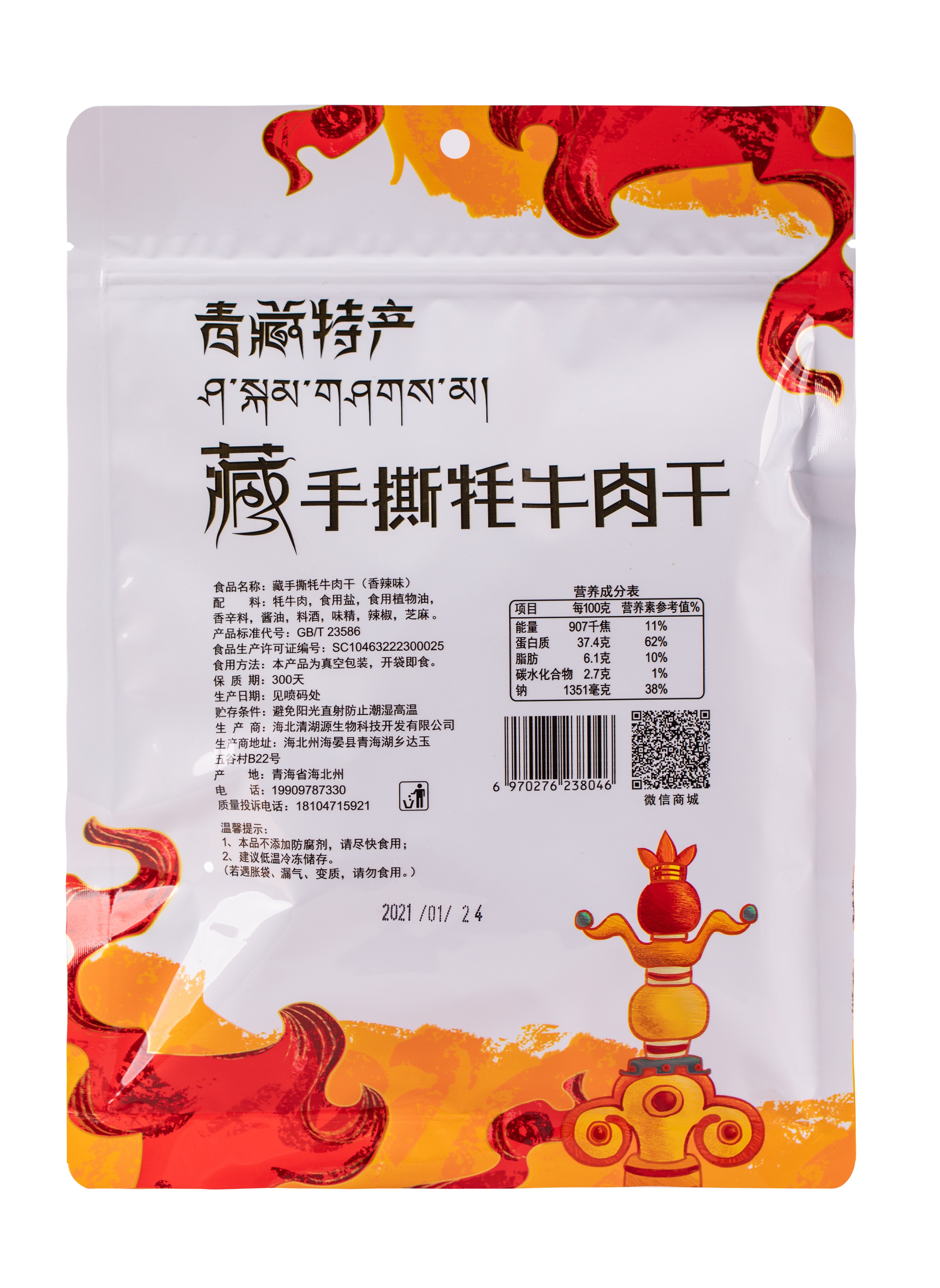 精选优质新鲜牦牛肉,高温烤至九五成干,锁住新鲜味。牦牛肉干蛋白质含量高,肉香浓郁,细嚼慢品,鲜香嚼劲大,满足你的味蕾。