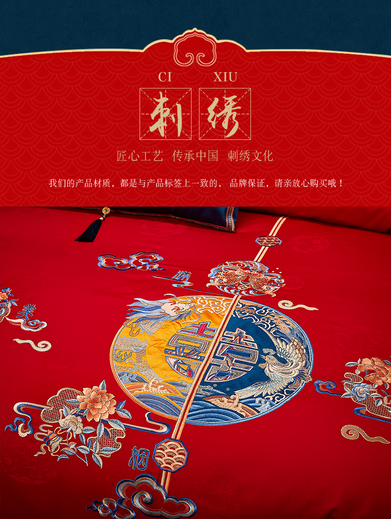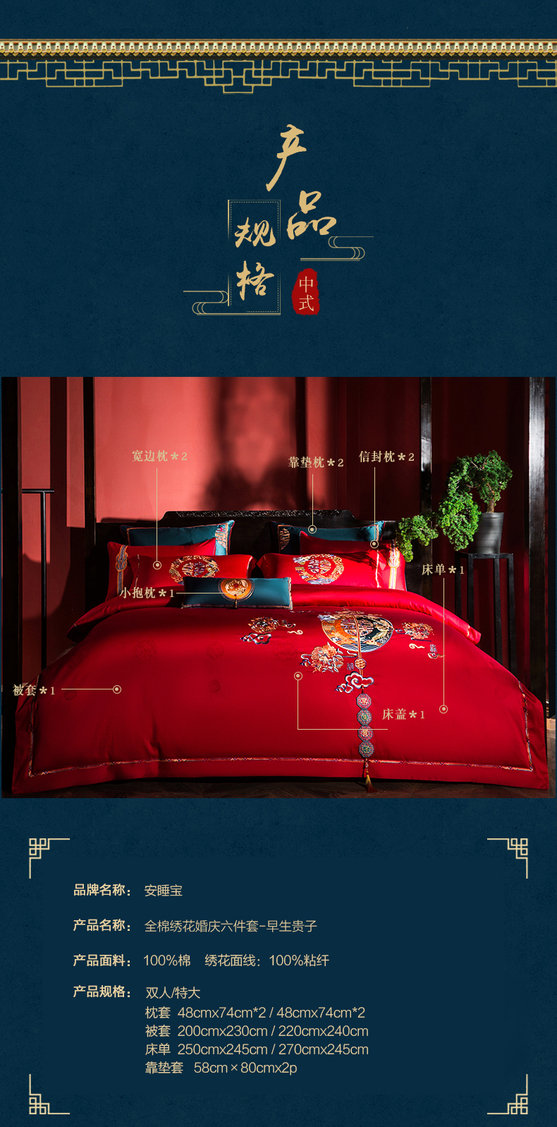 【云粉节】10楼 安睡宝 全棉绣花婚庆六件套-早生贵子 吊牌价6399~7299元 活动价2699~2899元