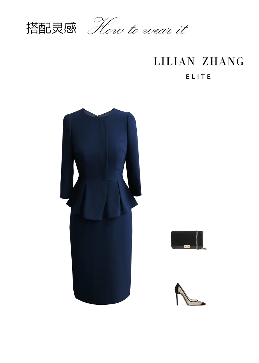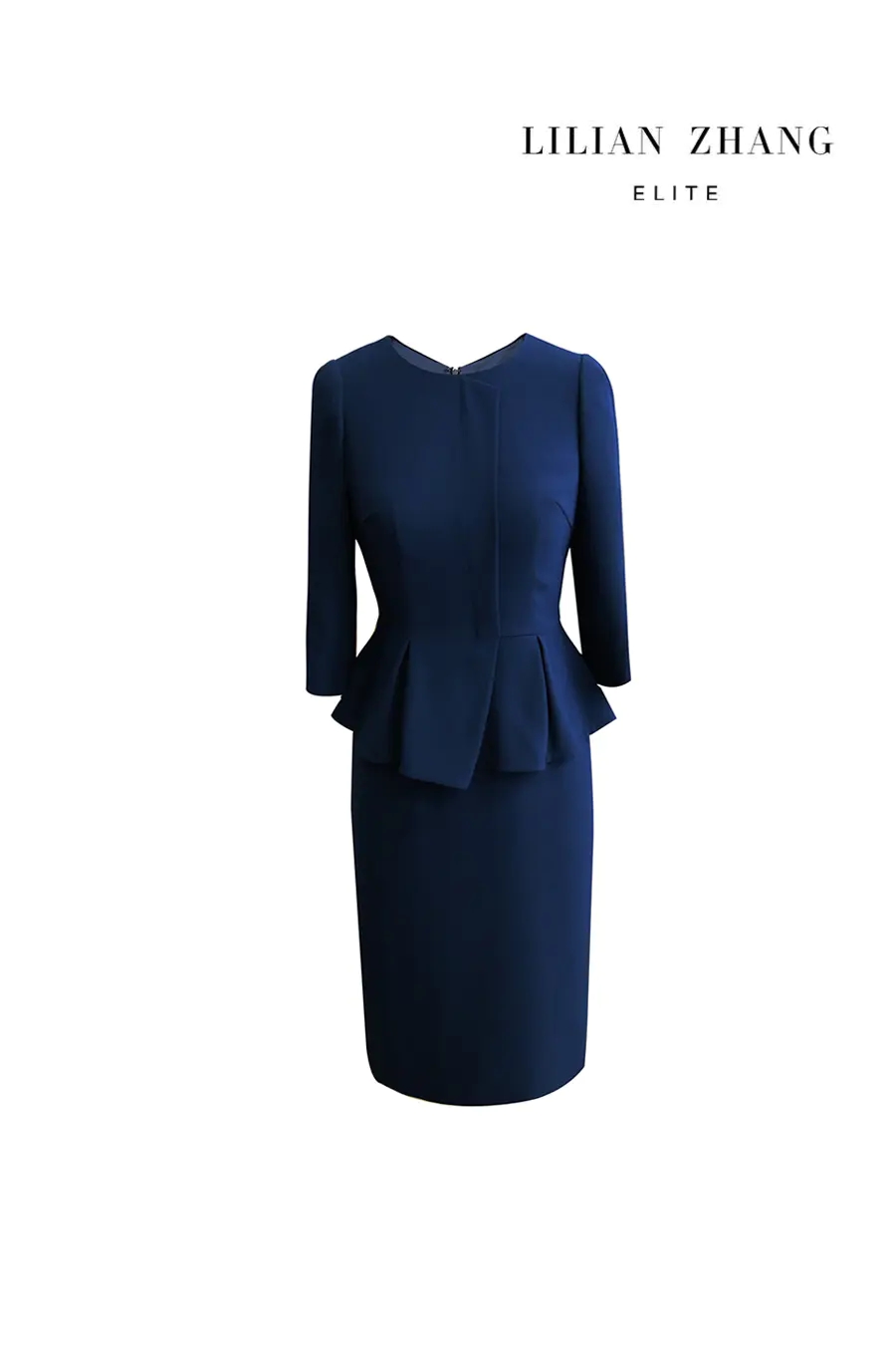 端庄优雅圆领假两件连衣裙 - 时尚通勤修身职业装中长裙 2001028
