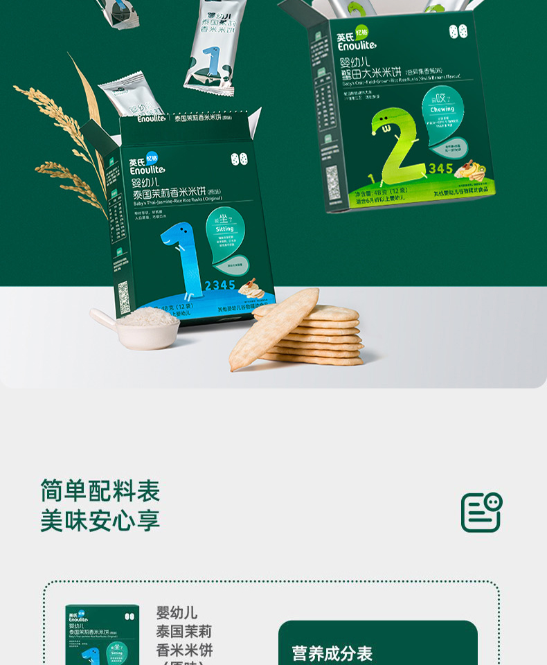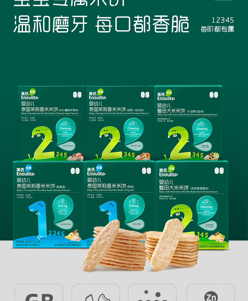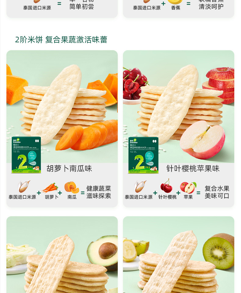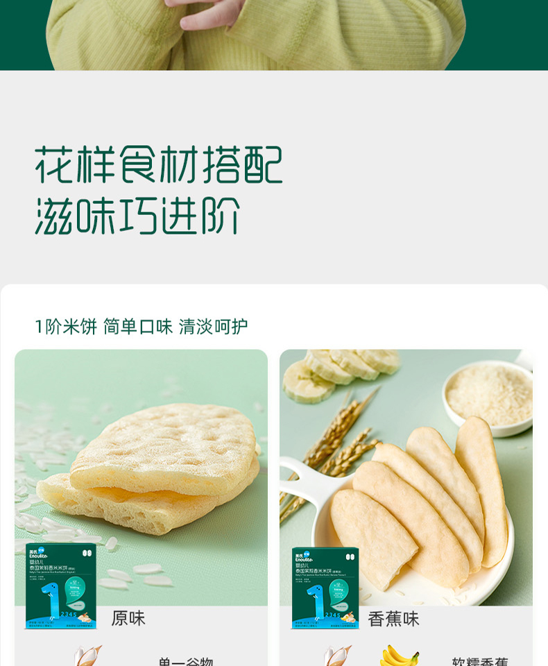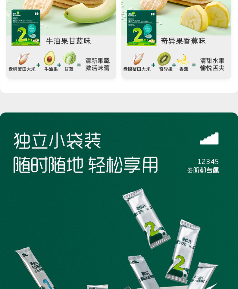 英氏婴幼儿蟹田大米米饼(牛油果甘蓝味/牛油果甘蓝味)48g(12袋)