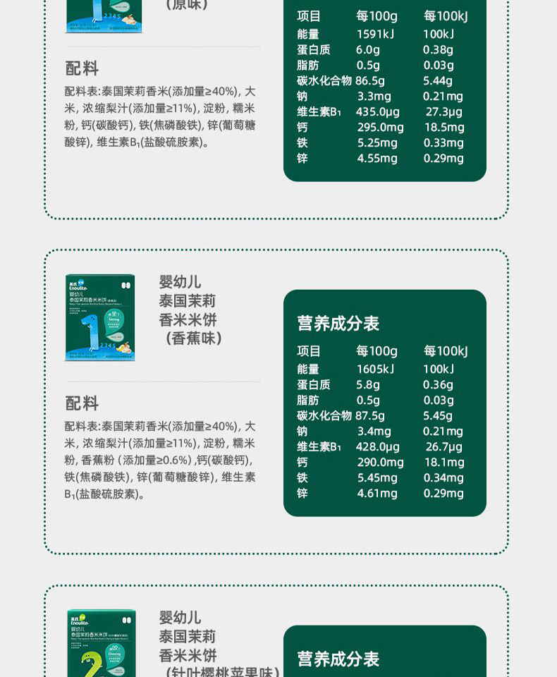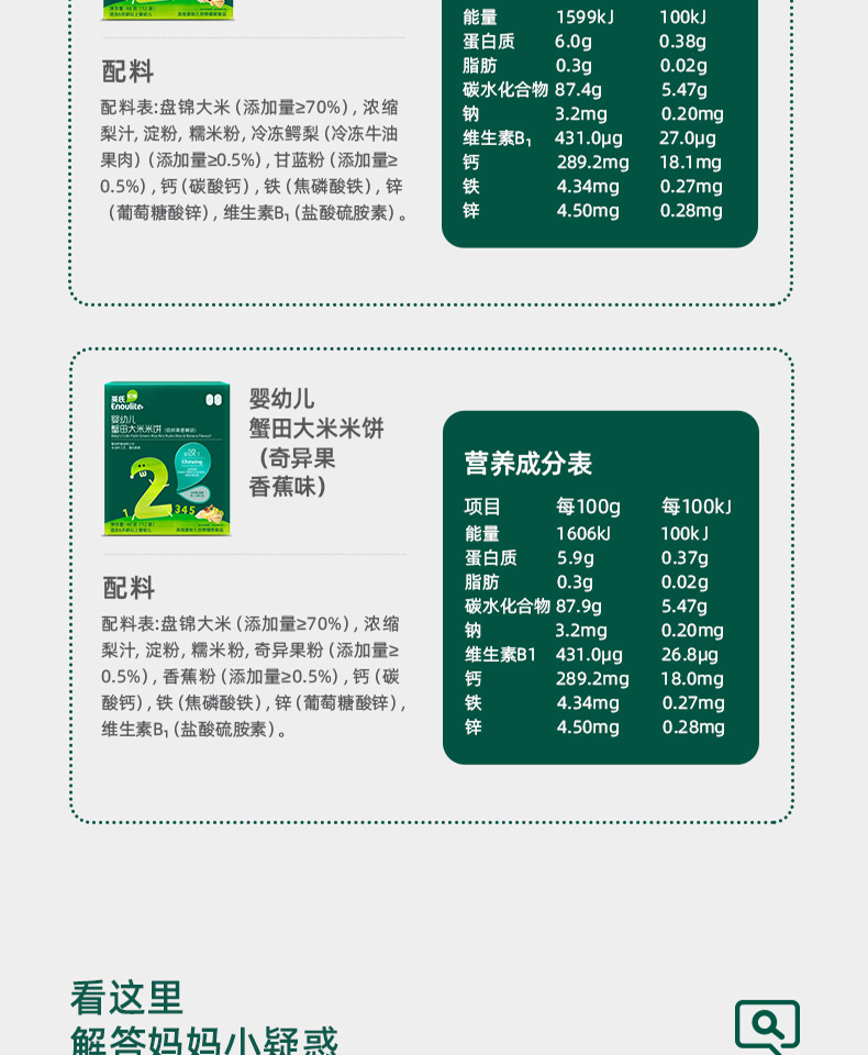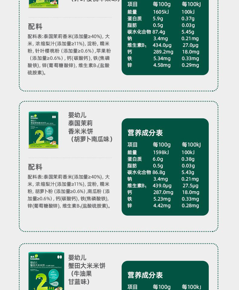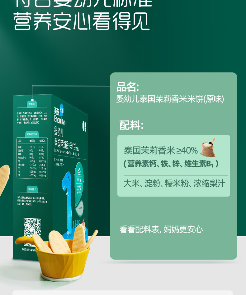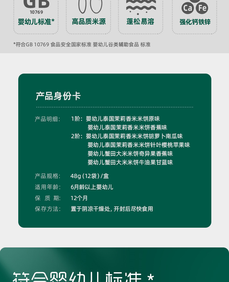 英氏婴幼儿蟹田大米米饼(牛油果甘蓝味/牛油果甘蓝味)48g(12袋)
