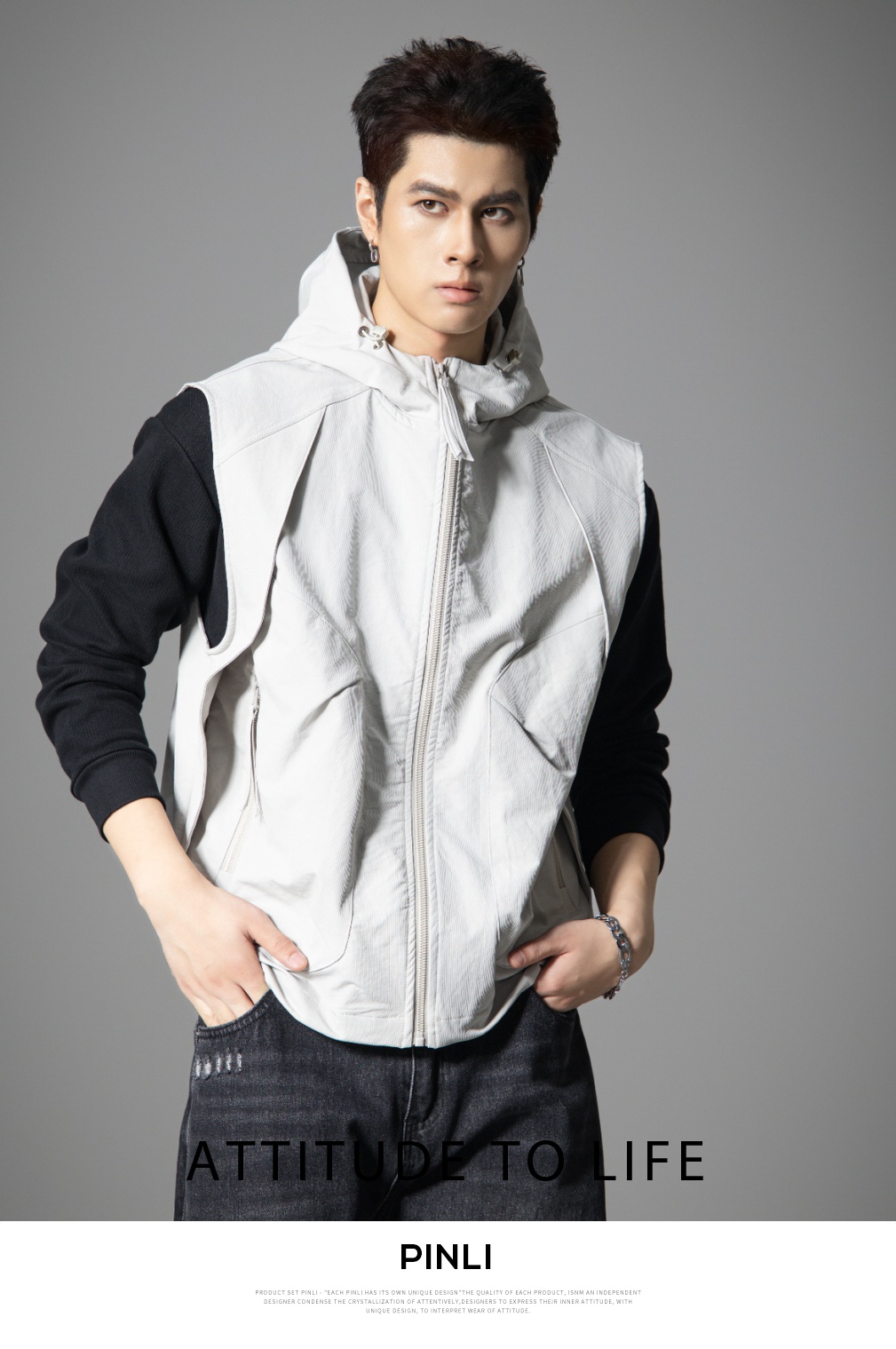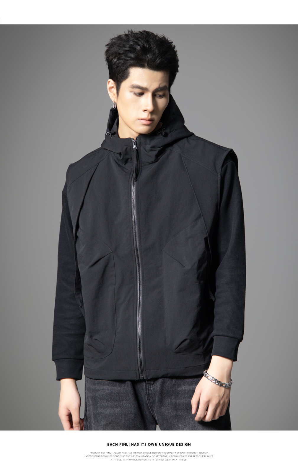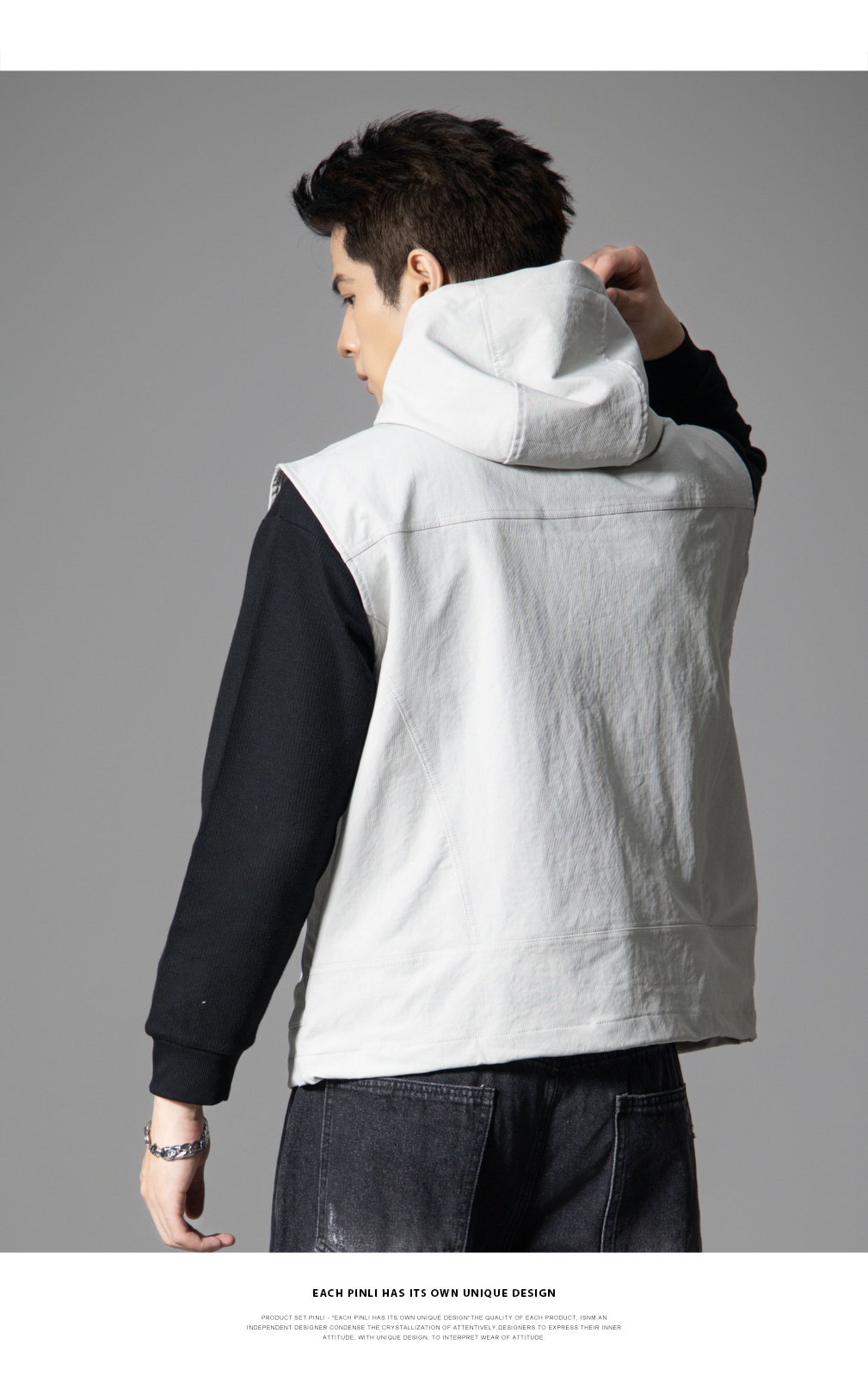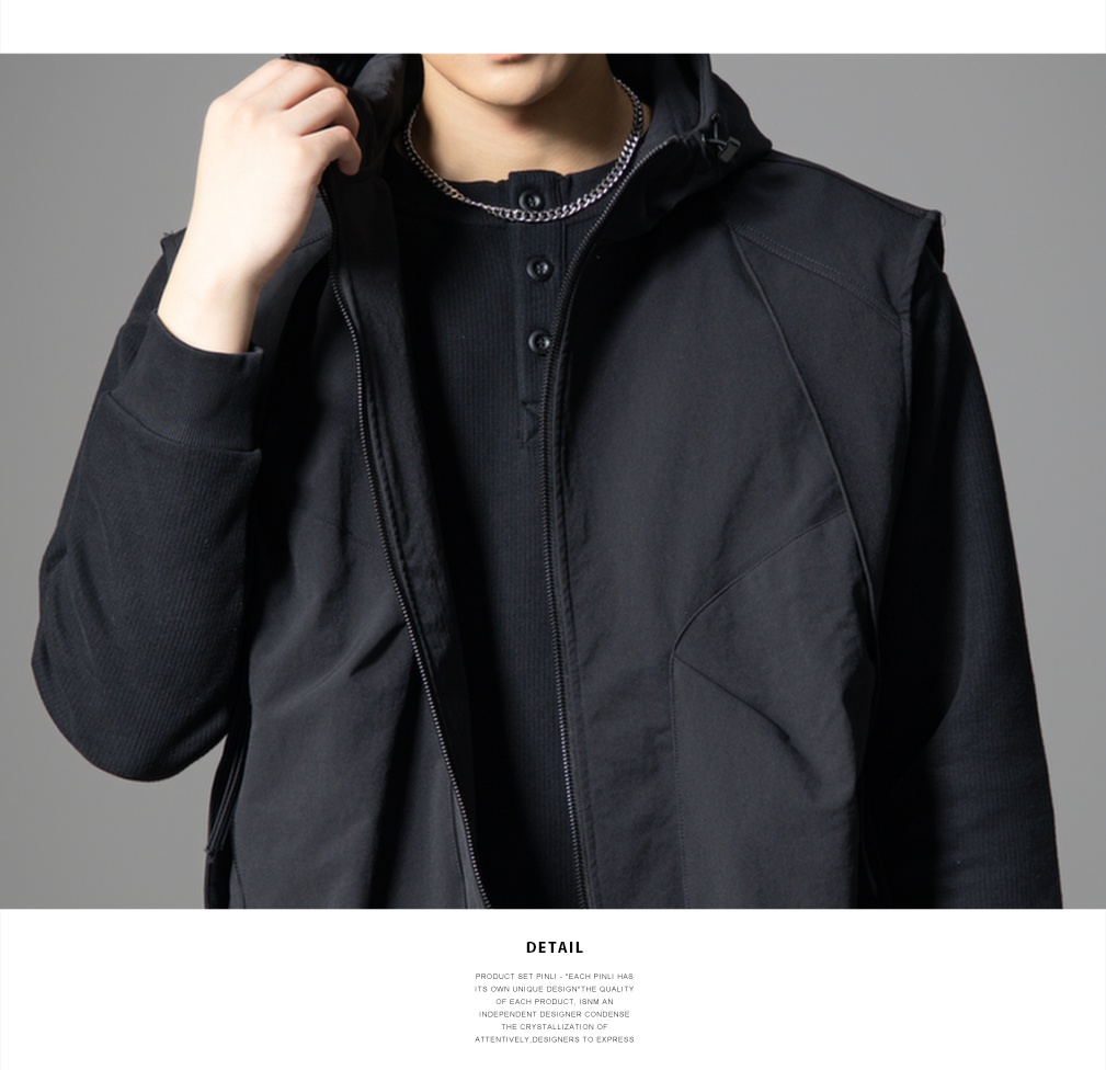 PINLI品立2025秋季新款男士宽松连帽背心休闲梭织马甲外套上衣潮GD253107151