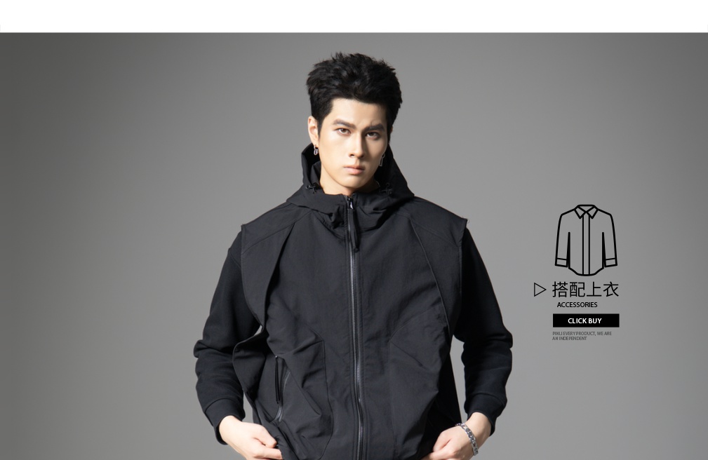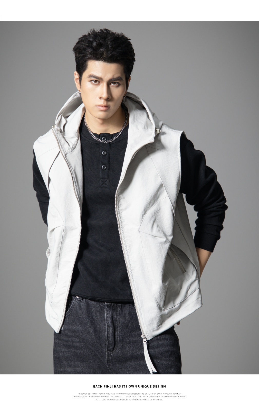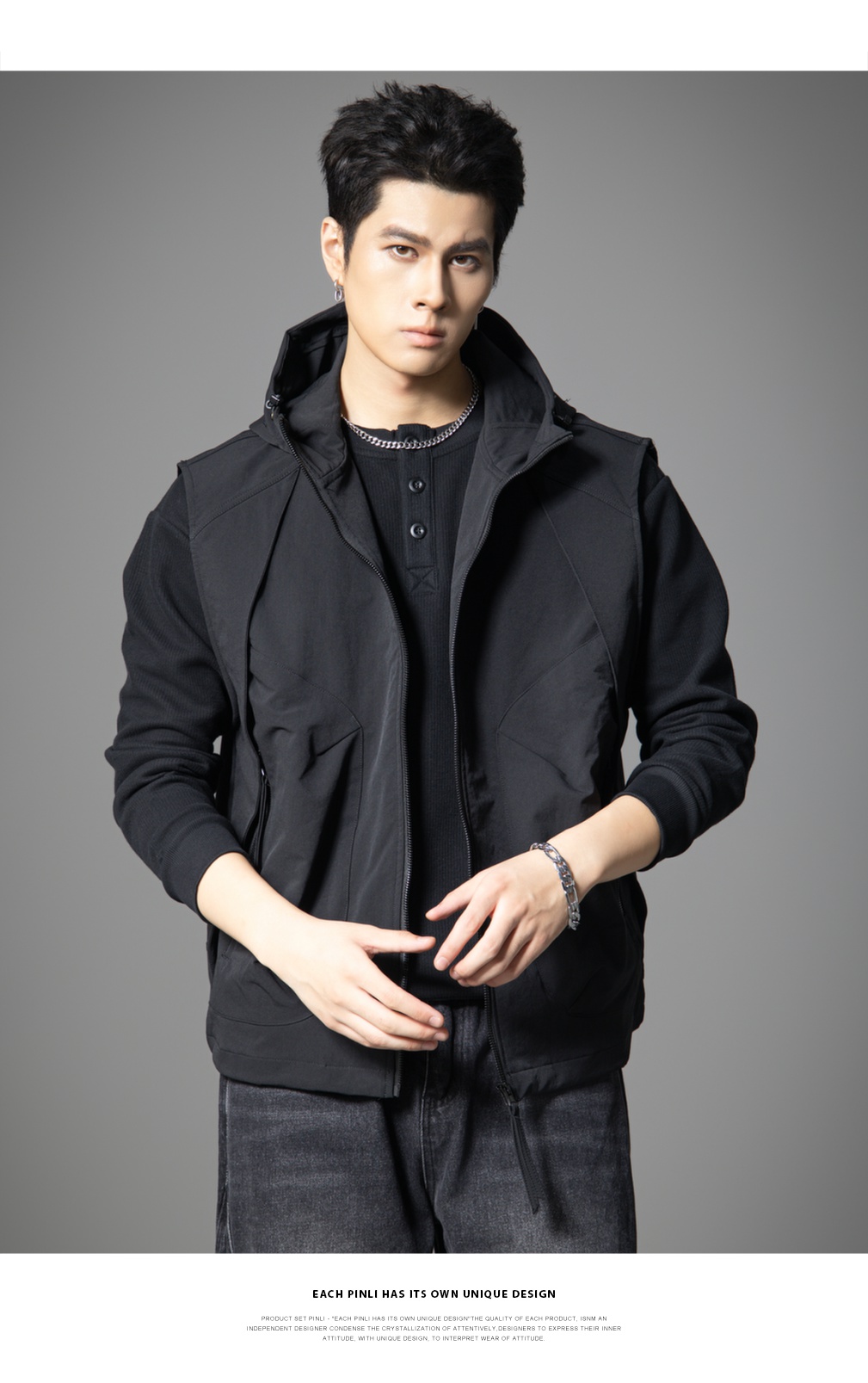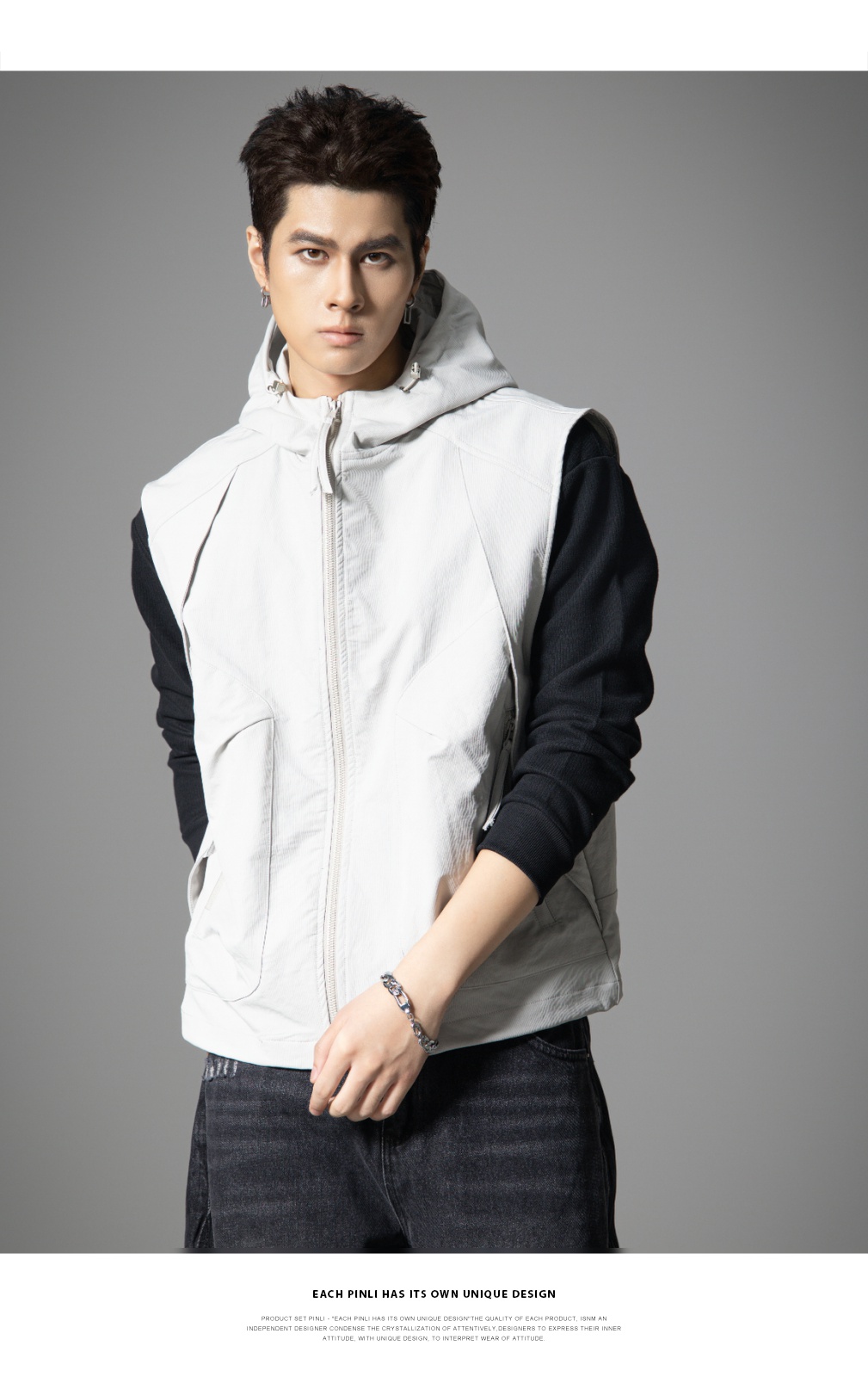 PINLI品立2025秋季新款男士宽松连帽背心休闲梭织马甲外套上衣潮GD253107151