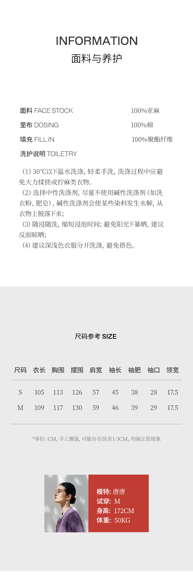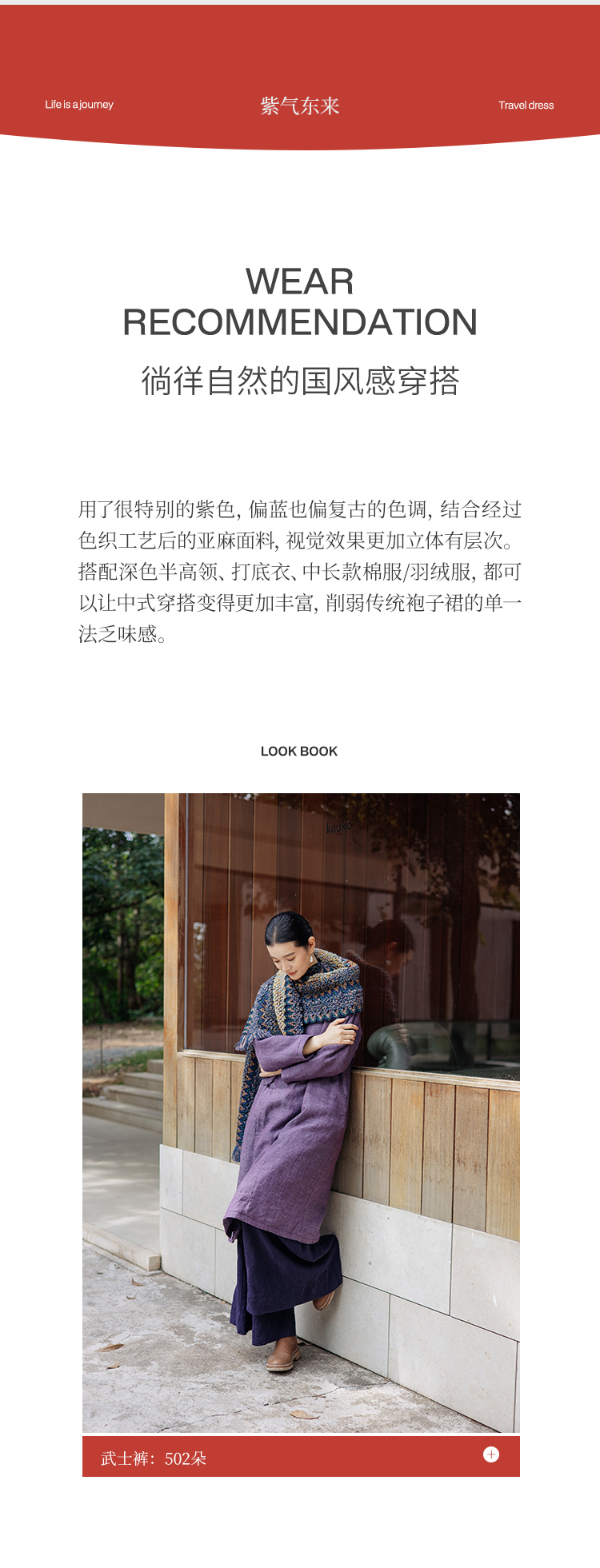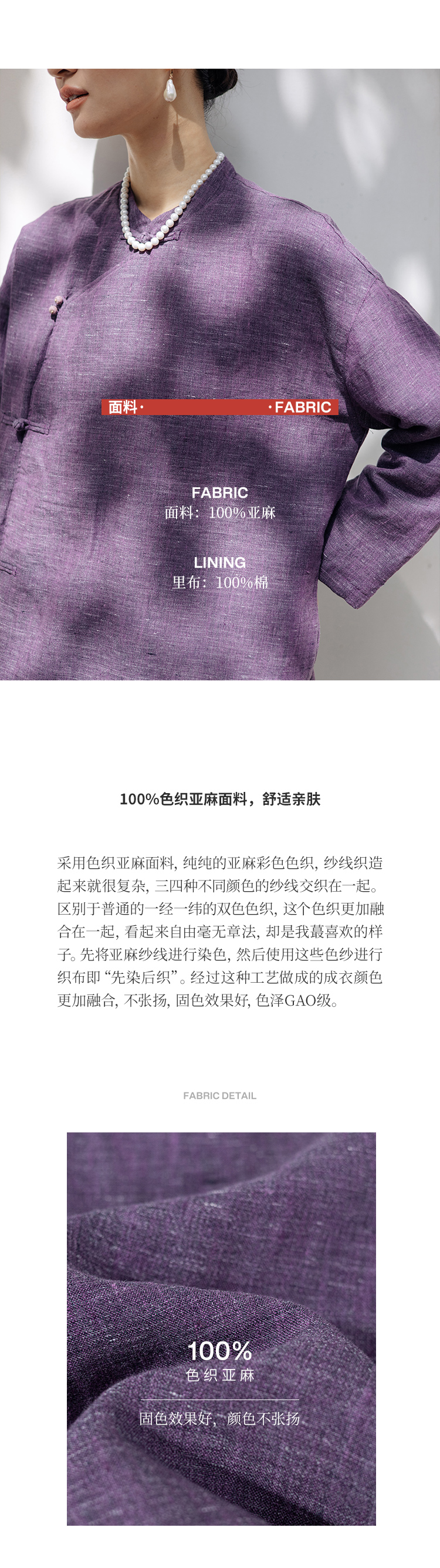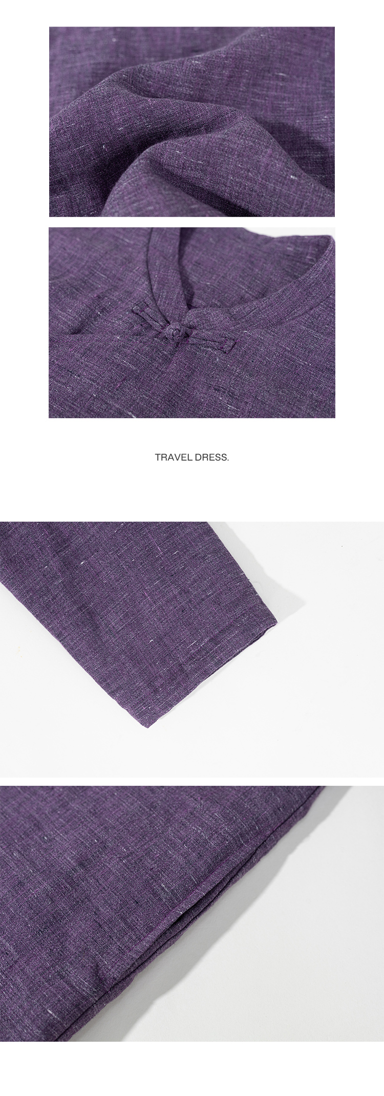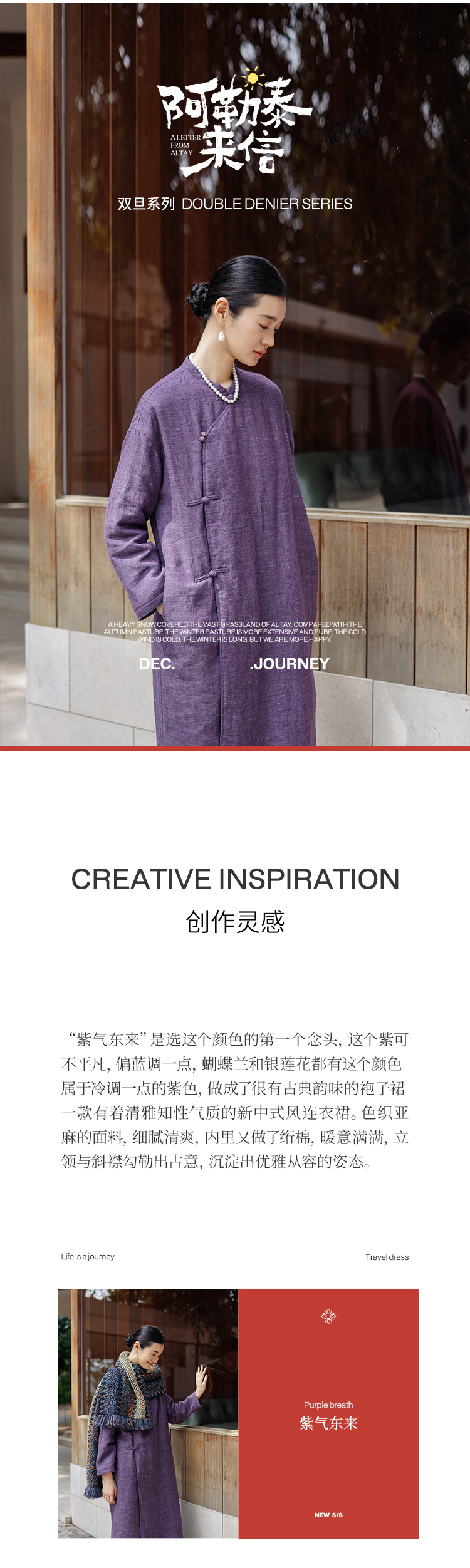 绽放847朵/紫气东来连衣裙亚麻色织新中式盘扣斜开门襟绗棉长裙