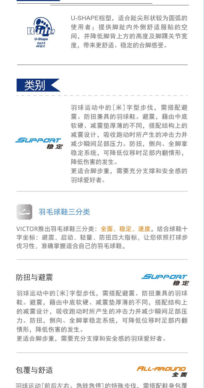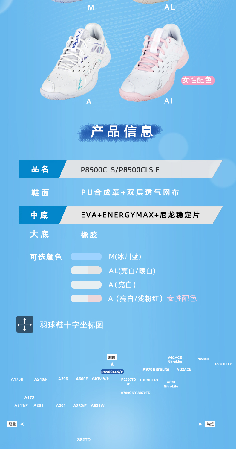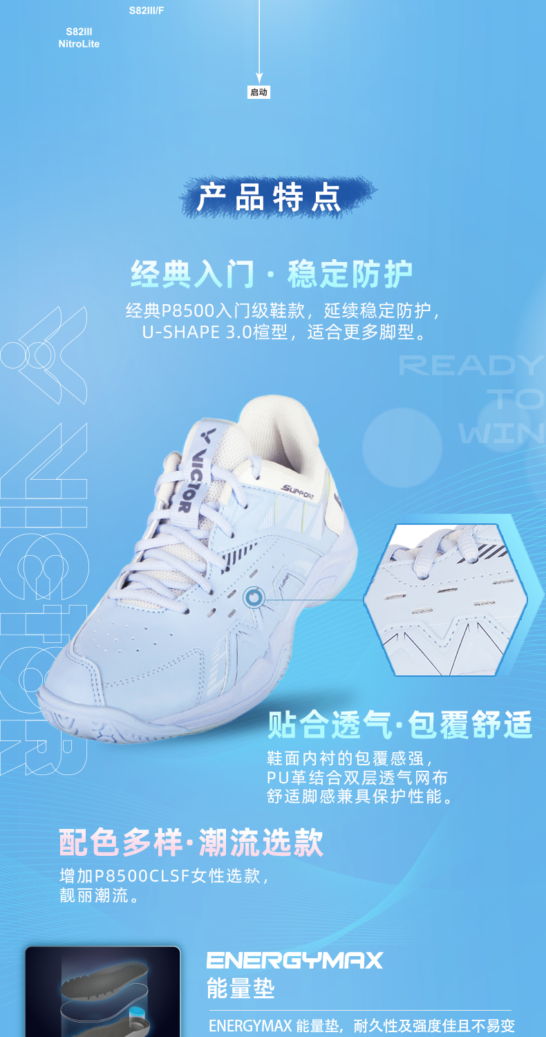 VICTOR威克多羽毛球鞋P8500CLS透气耐磨U3.0宽楦入门级稳定类羽球鞋P8500CLSF