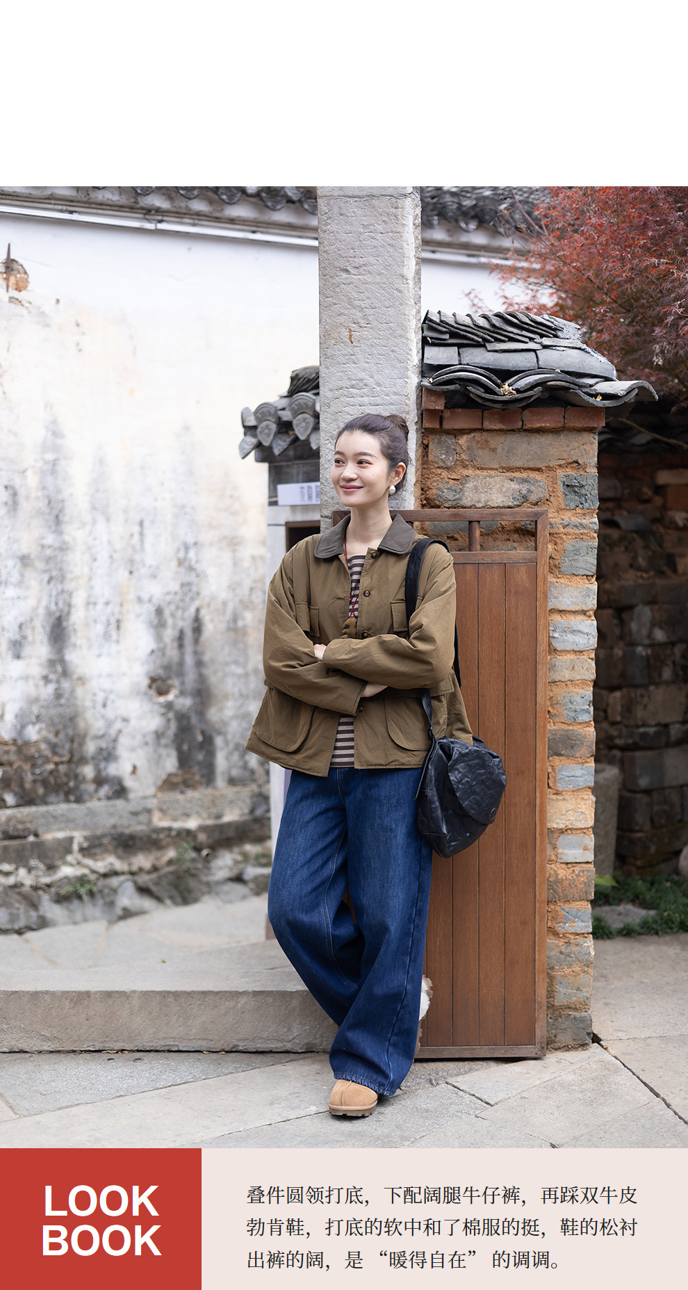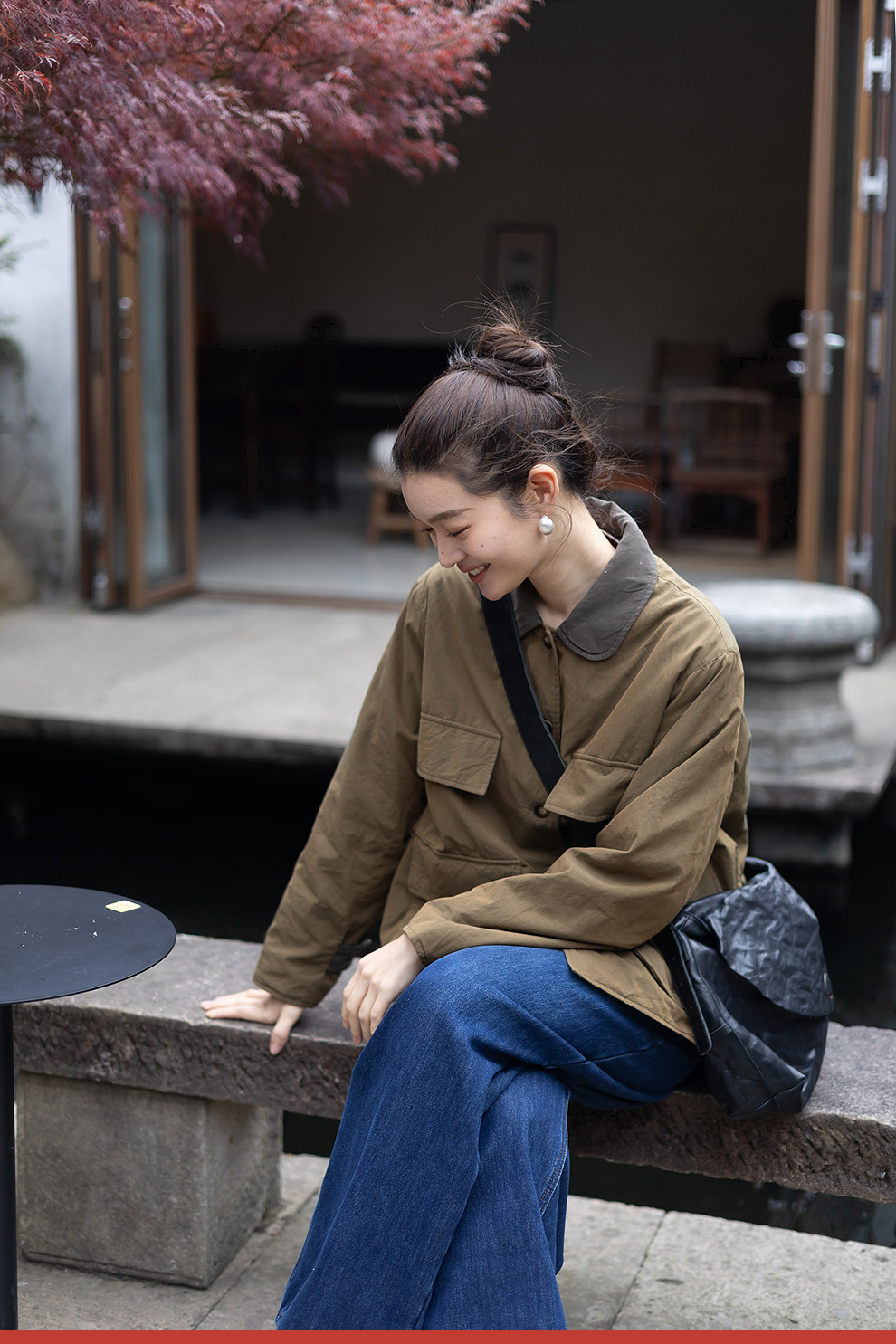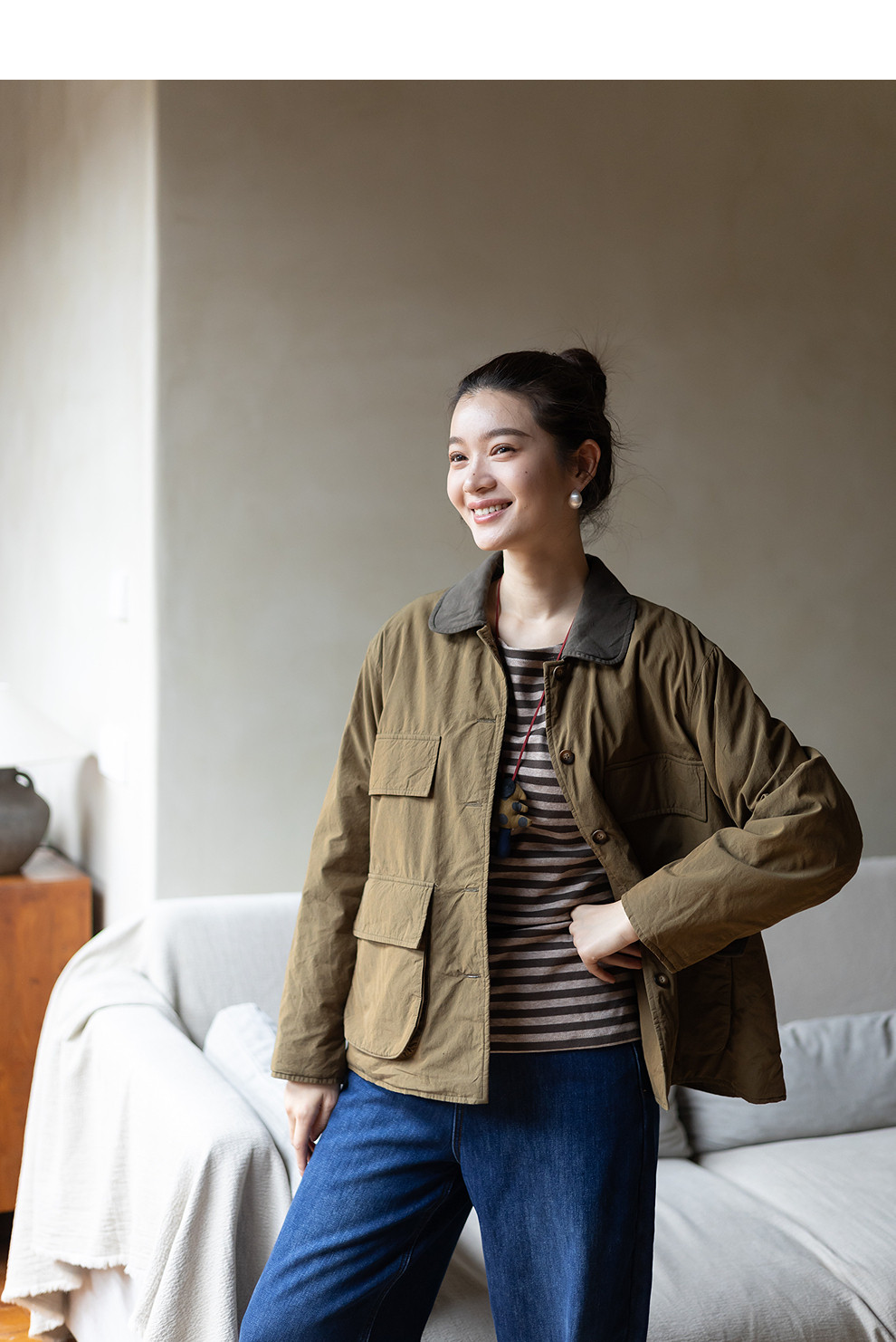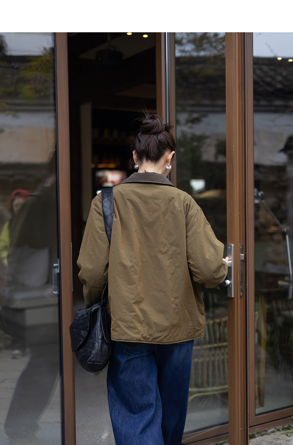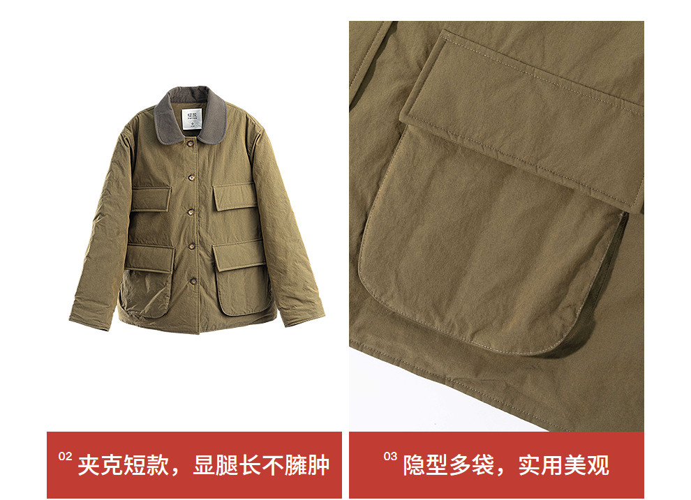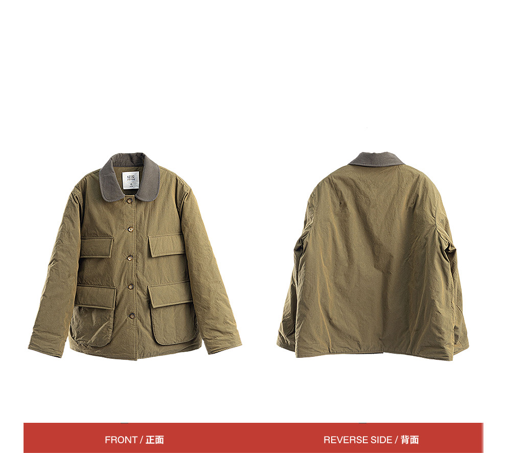 绽放063朵/铜绿撞领棉服短外套女工装棉衣秋冬季新款纯棉复古外套