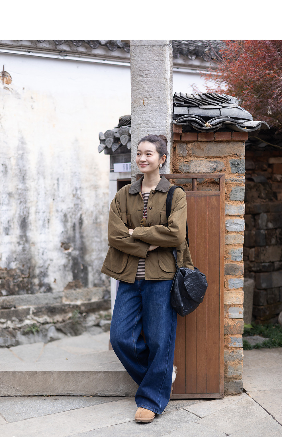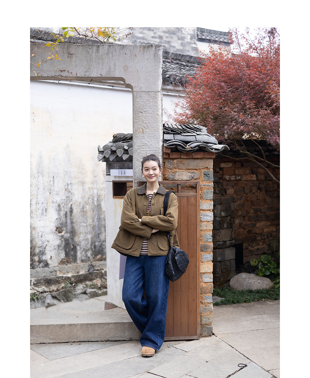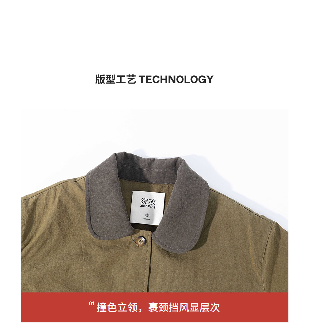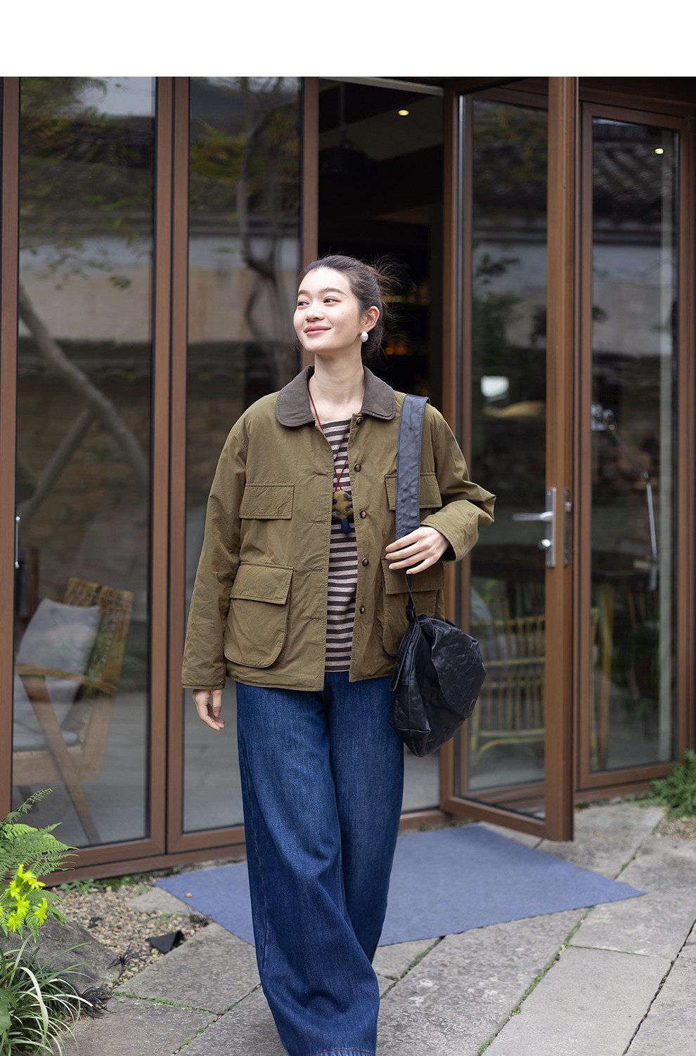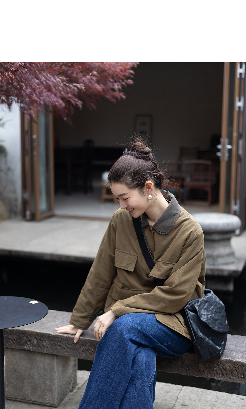 绽放063朵/铜绿撞领棉服短外套女工装棉衣秋冬季新款纯棉复古外套