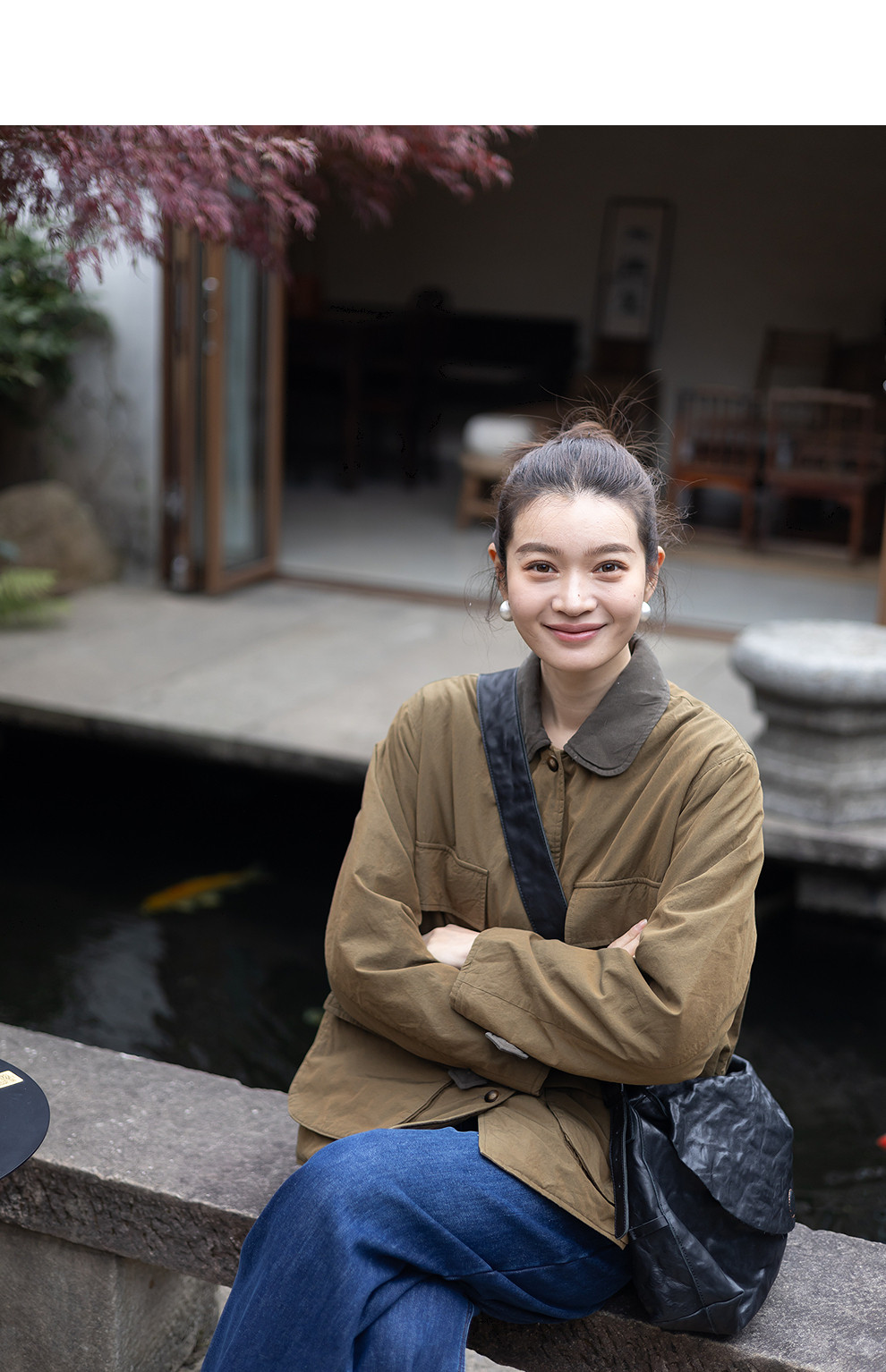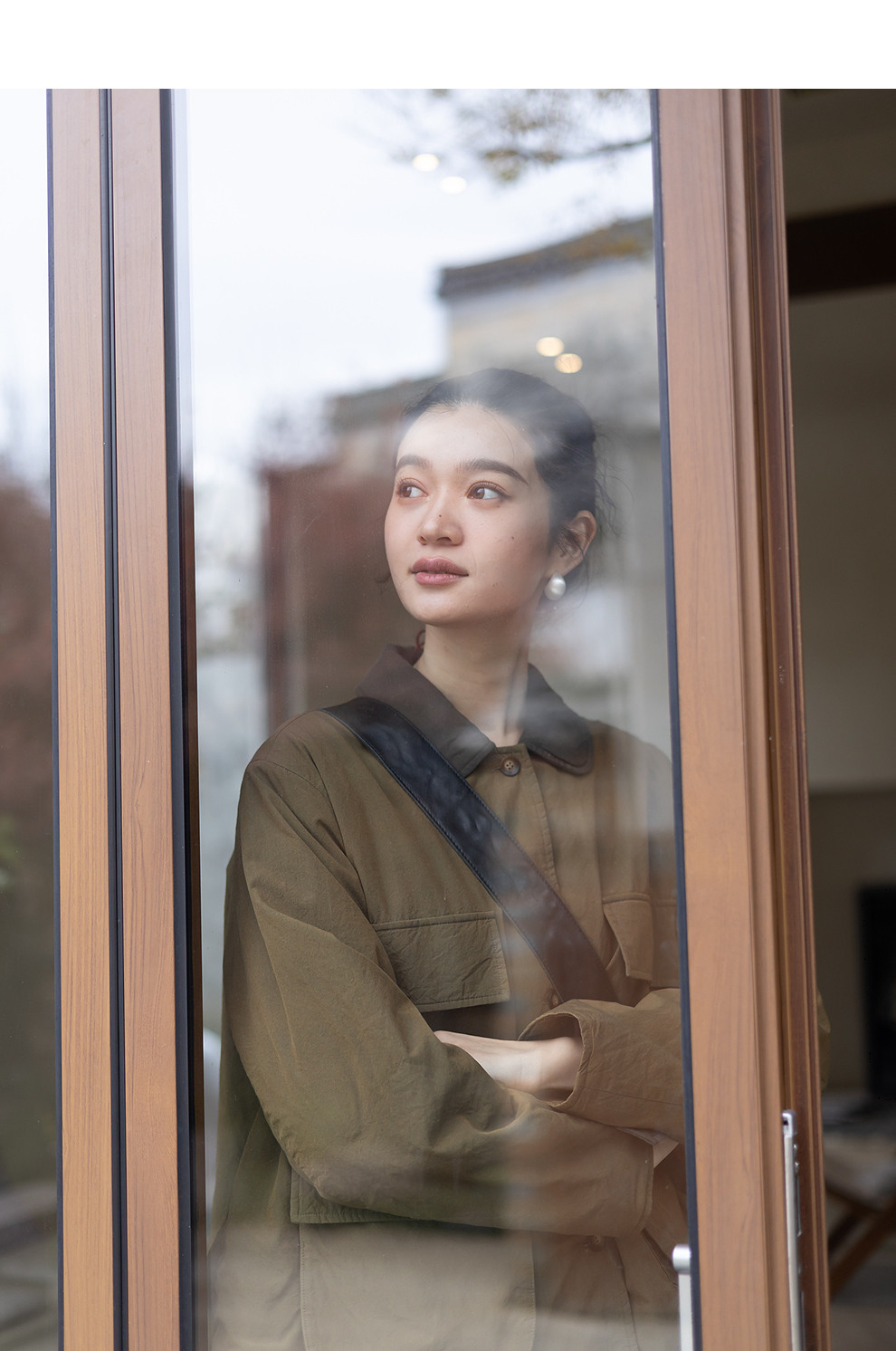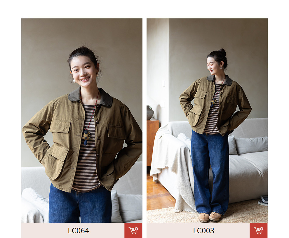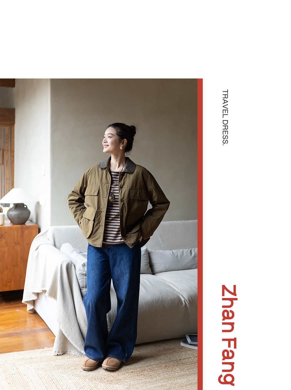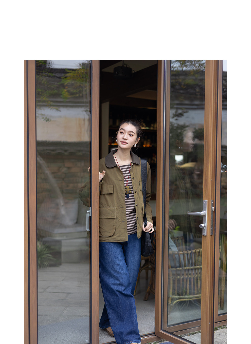 绽放063朵/铜绿撞领棉服短外套女工装棉衣秋冬季新款纯棉复古外套