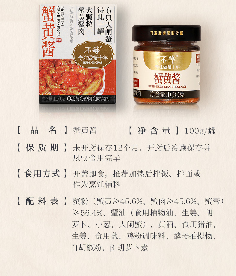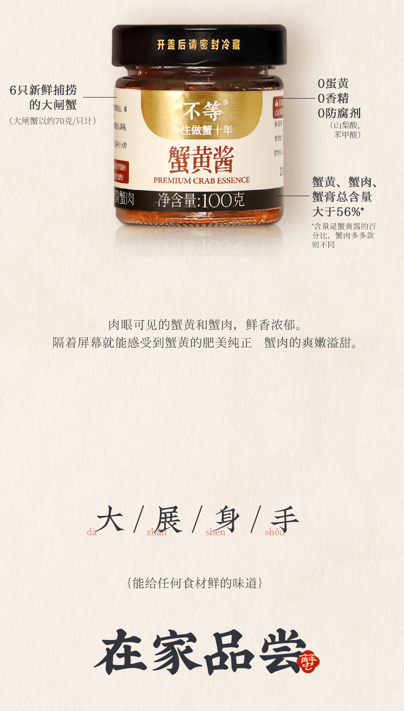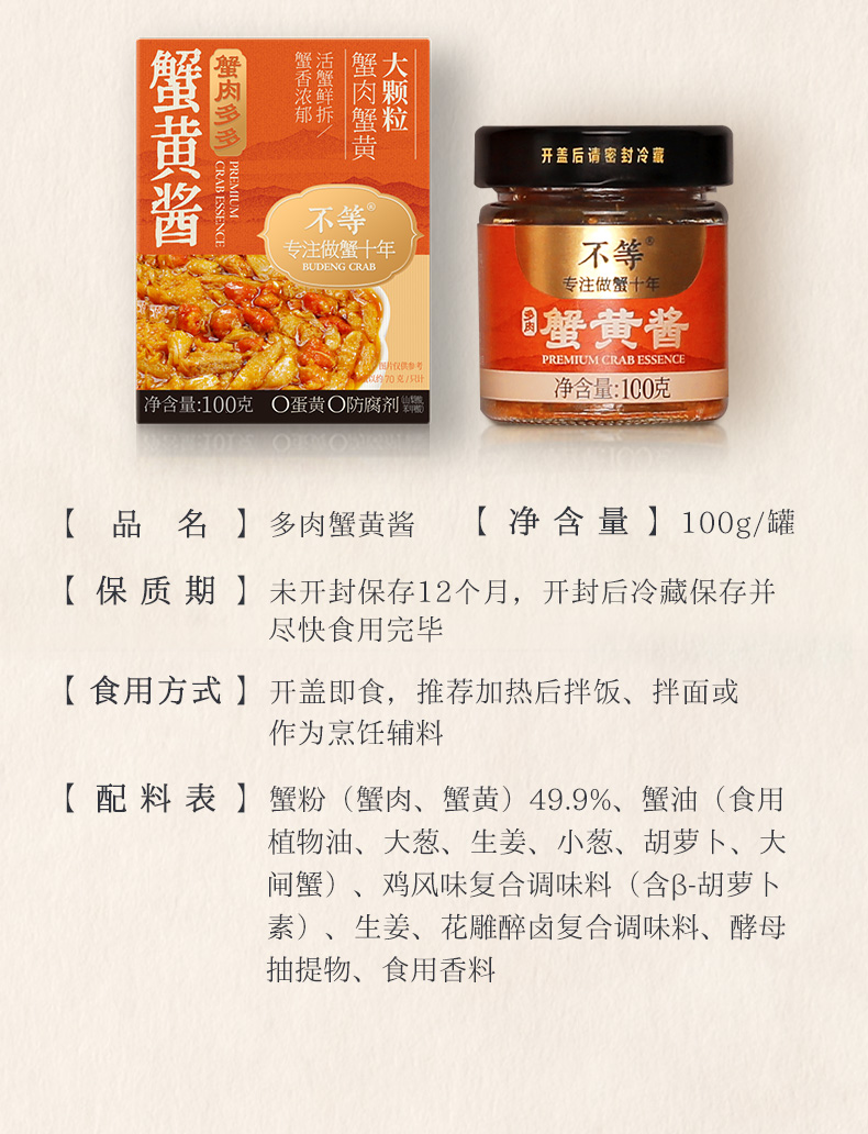 不等蟹黄酱常温拌面拌饭酱秃黄油大闸蟹蟹肉蟹膏正宗官方即食拌饭