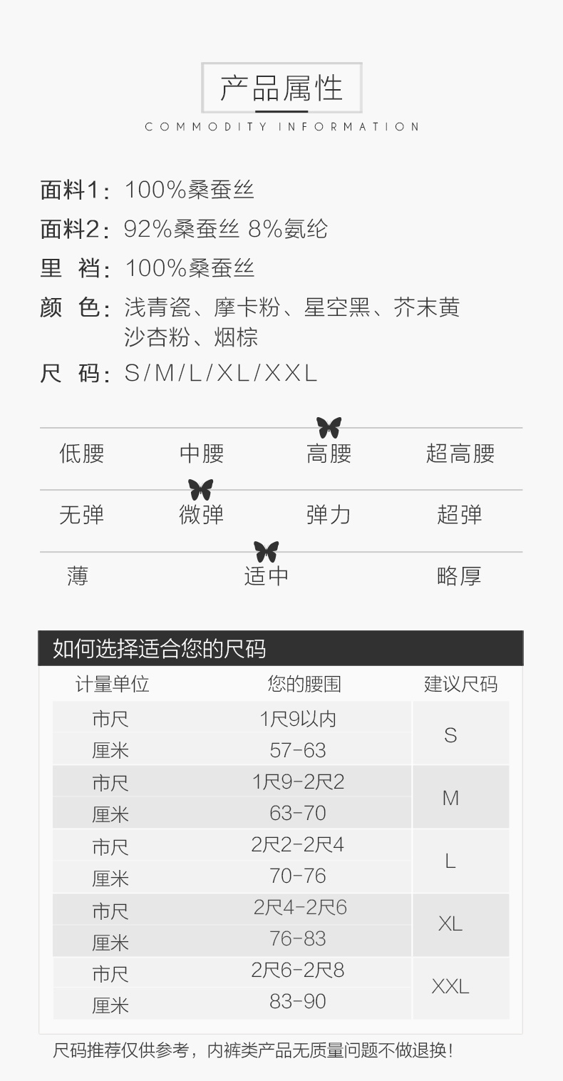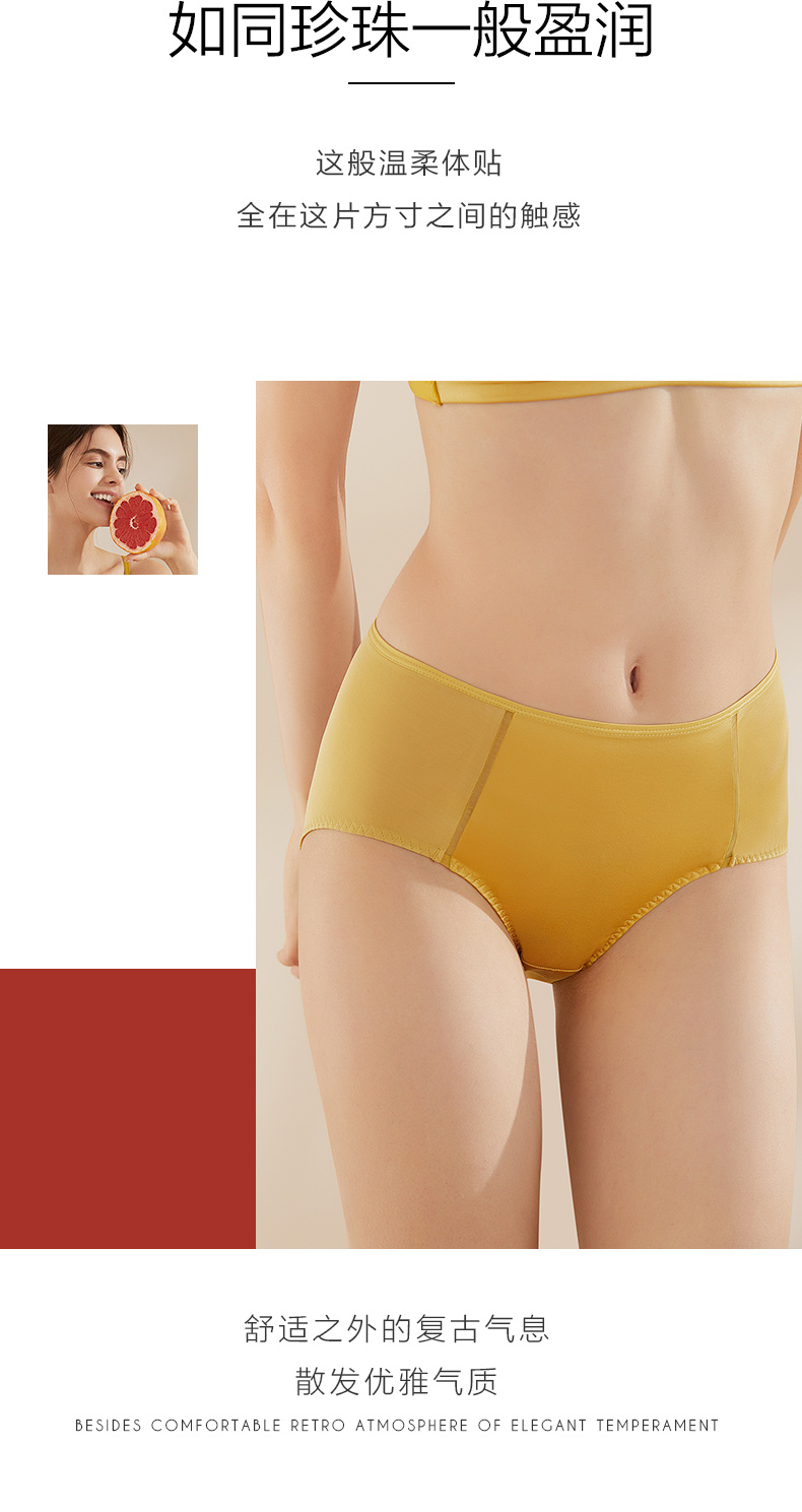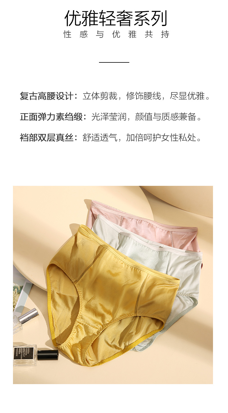 金三塔真丝内裤女100%桑蚕丝缎面透气舒适高腰三角裤女(私密物品不支持退换) NZFAA201