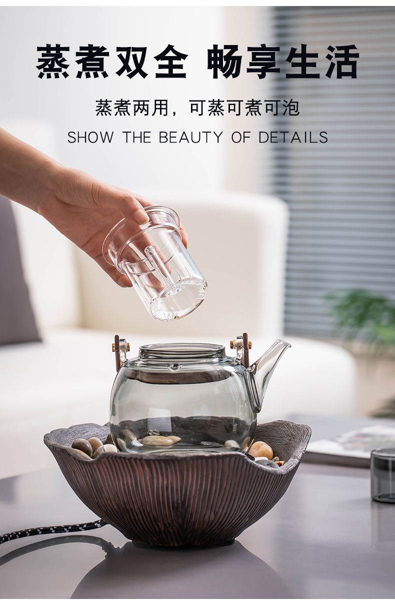 围炉煮茶壶一整套室内家用电陶炉烤茶烤红薯日式玻璃煮茶器煮茶炉