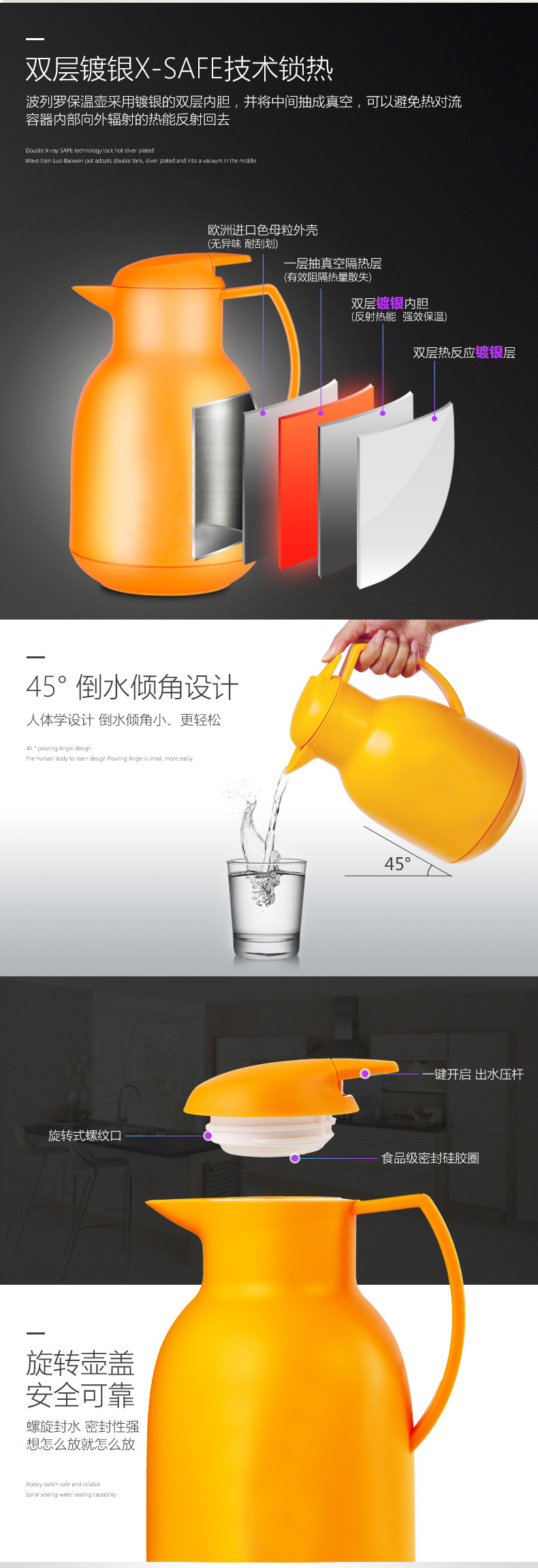【6F】利快生活德国进口轻奢保温壶真空镀银双层内胆暖热水瓶家用波列罗