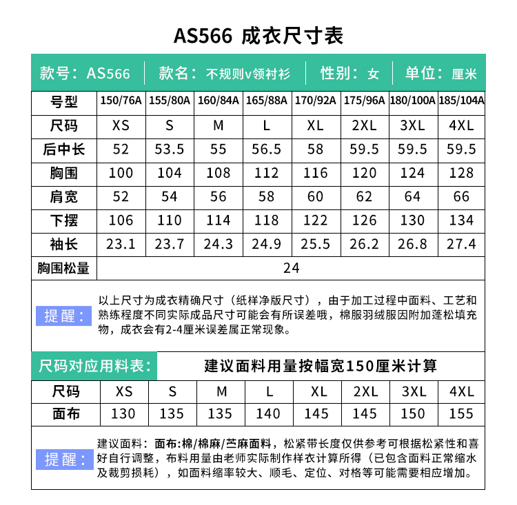 裁缝学苑AS566法式系扣不规则v领衬衫纸样女装中袖上衣小衫样板图纸