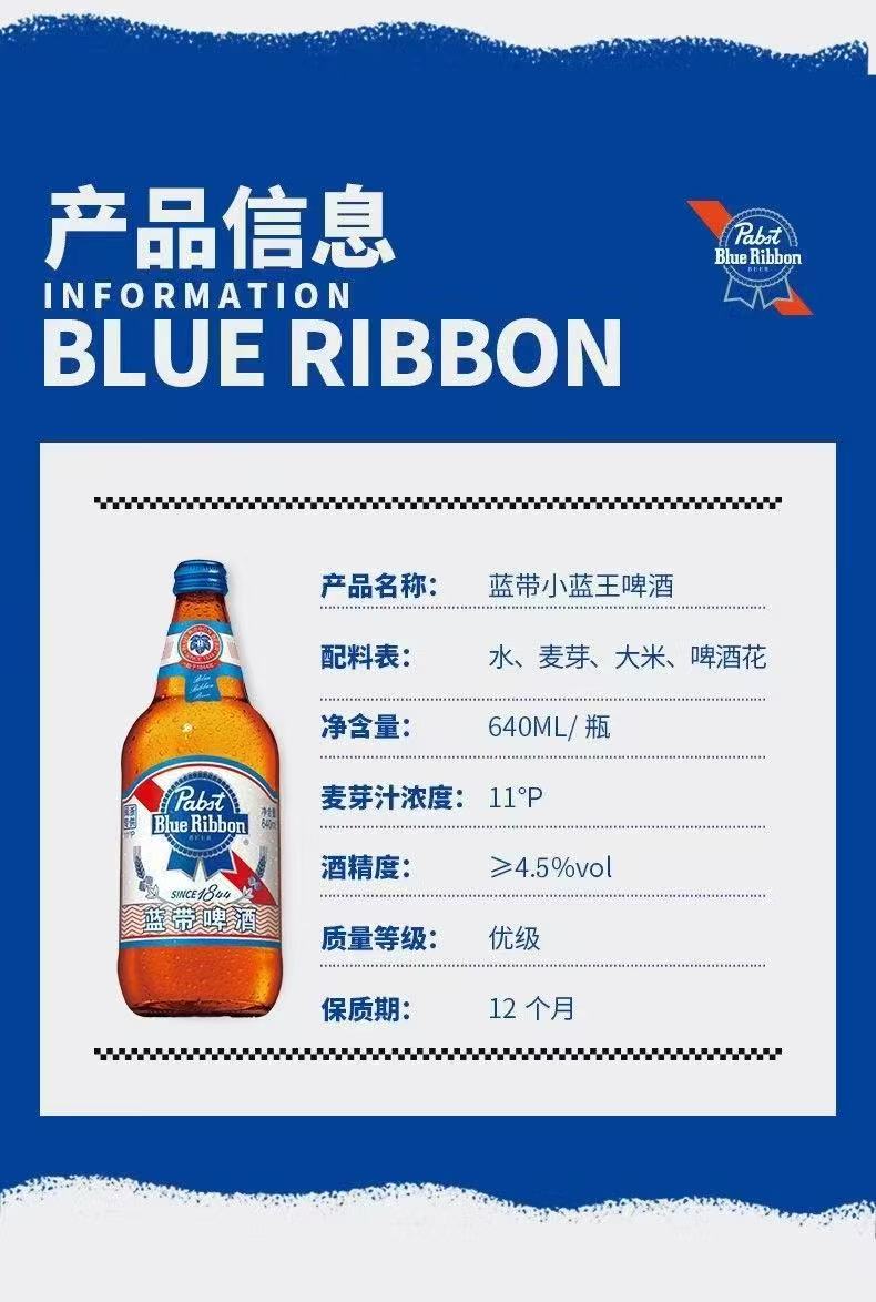 蓝带小蓝王啤酒 4.5%vol 640ml*12瓶