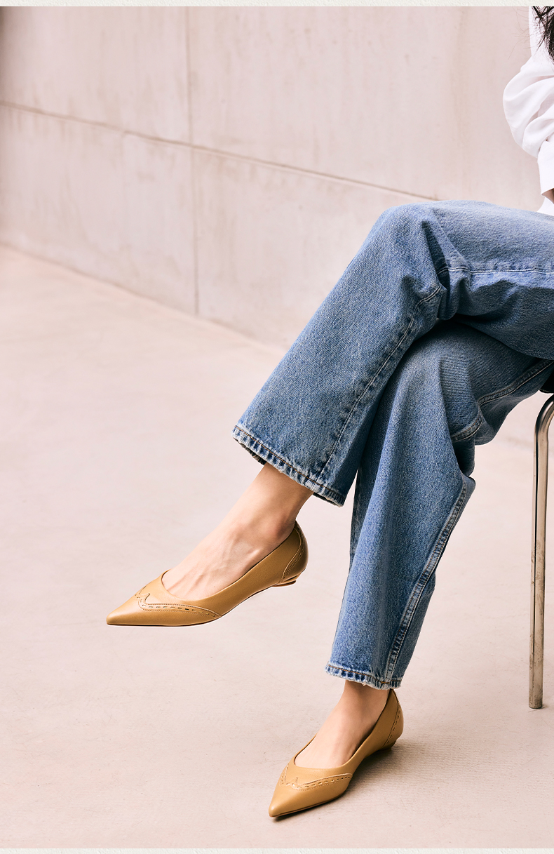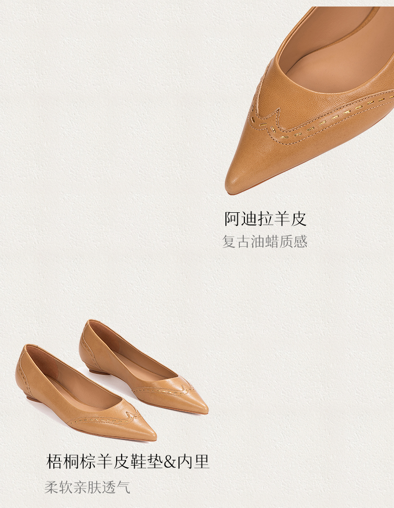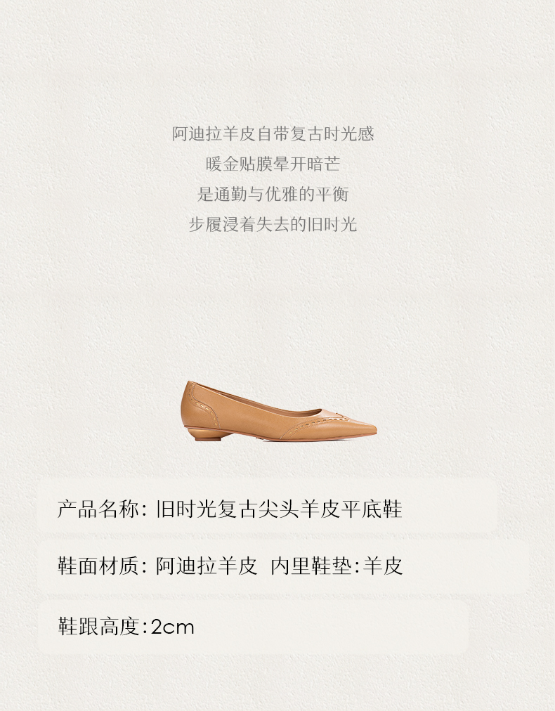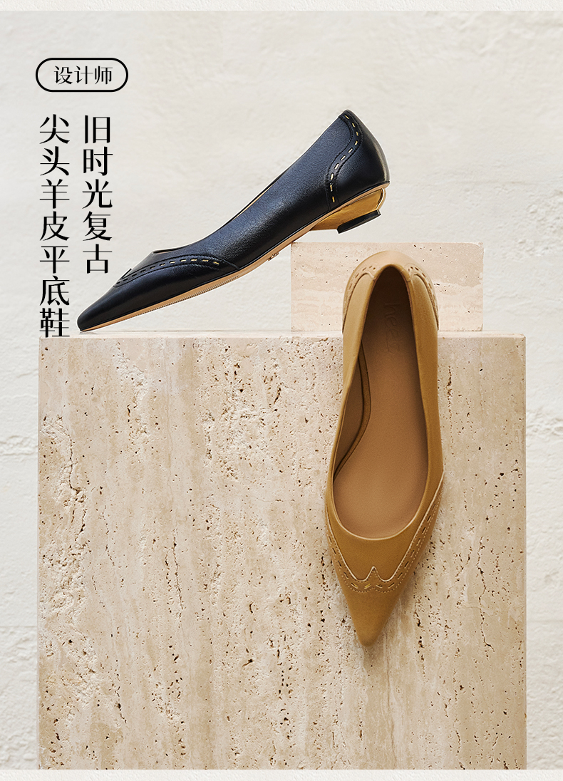 heelz设计师手工鞋履 |旧时光复古尖头羊皮平底鞋2公分