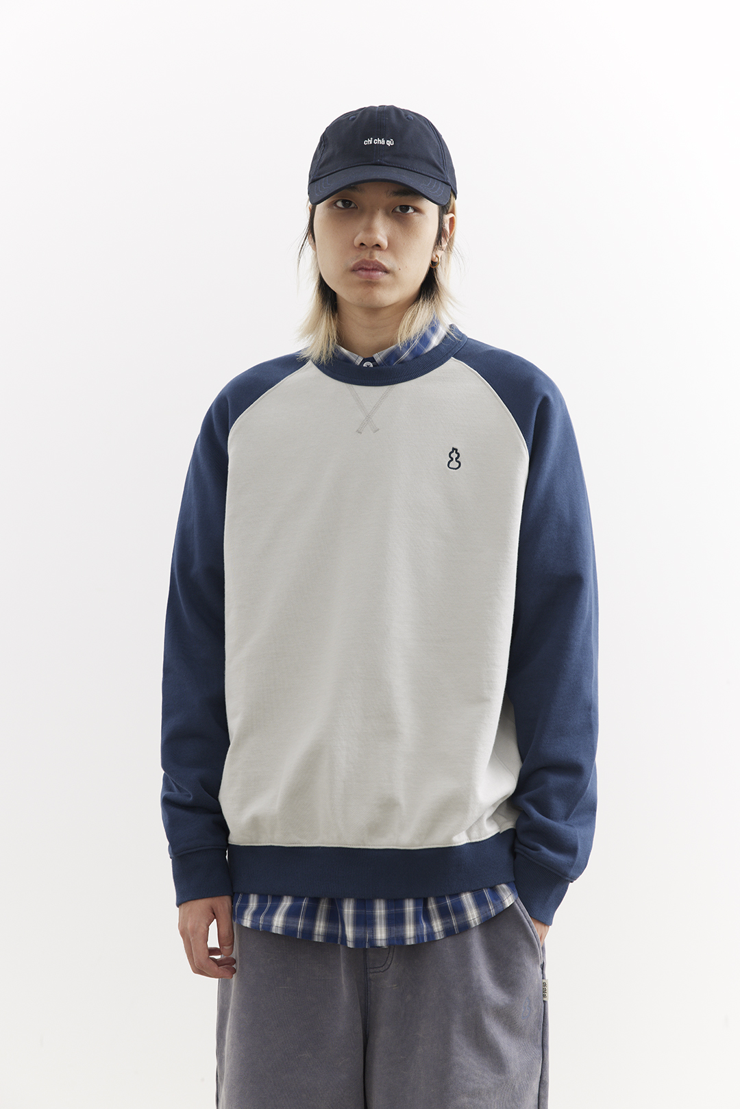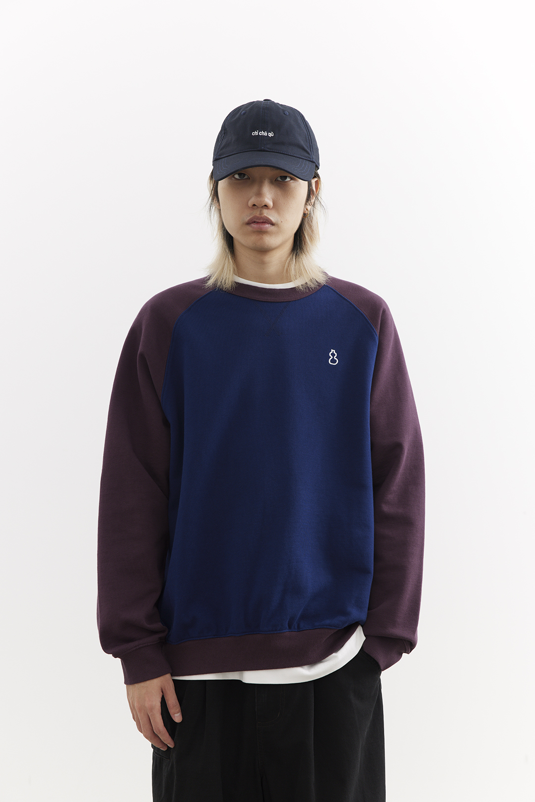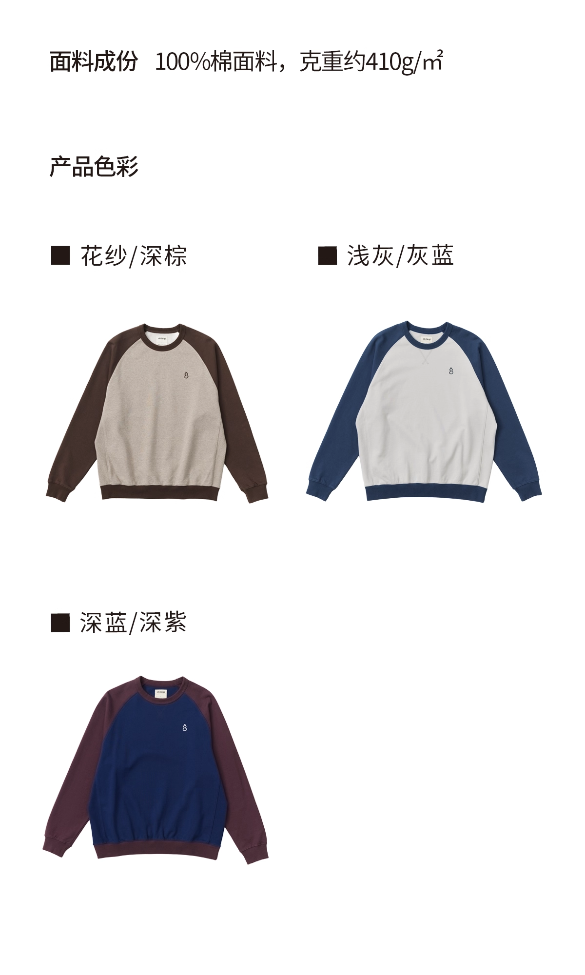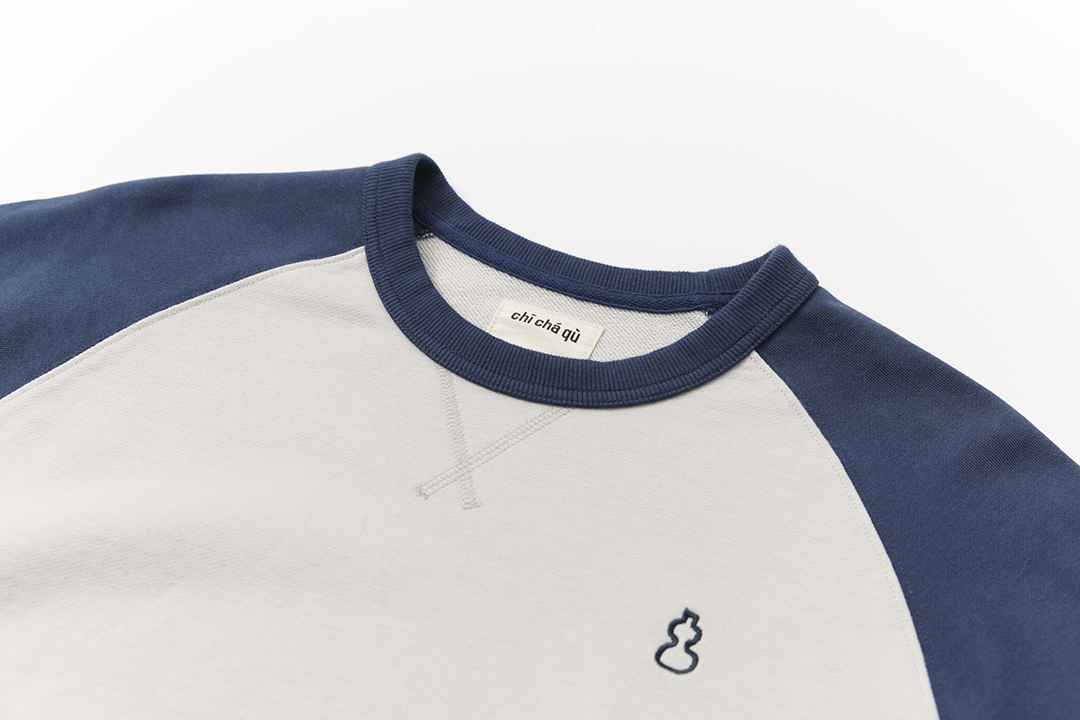 吃茶去chichaqu25经典插肩拼色全棉圆领卫衣宽松休闲运动街头百搭