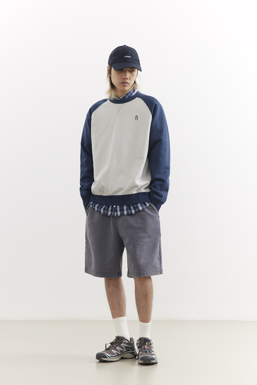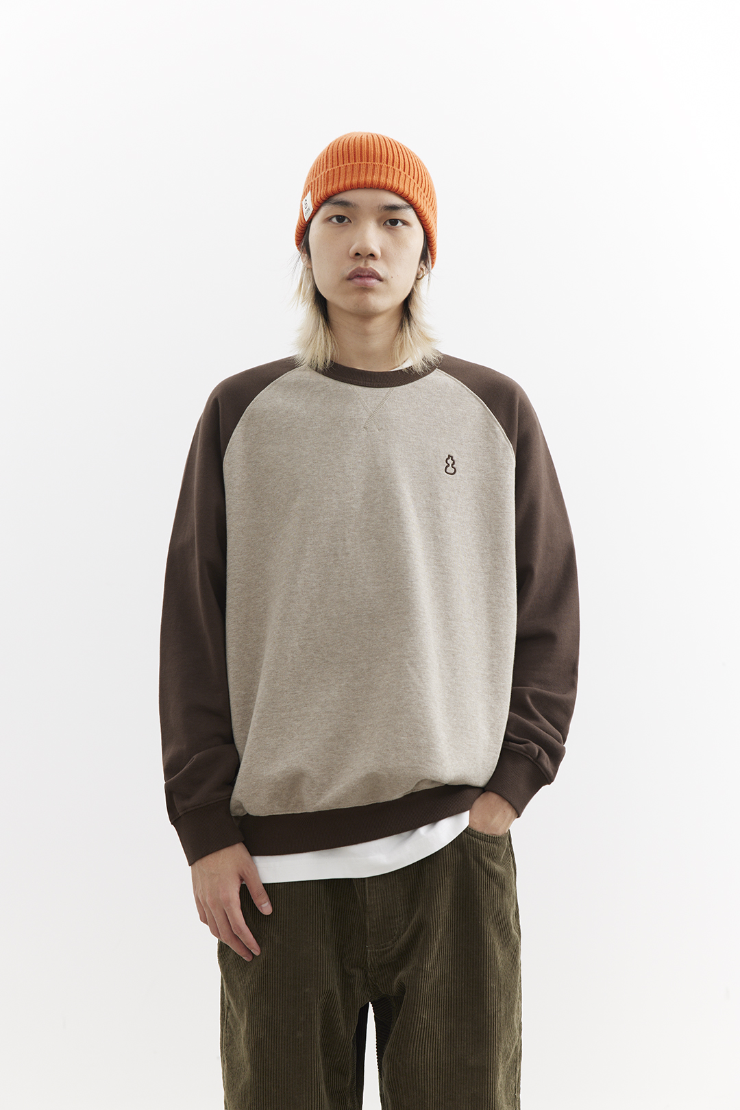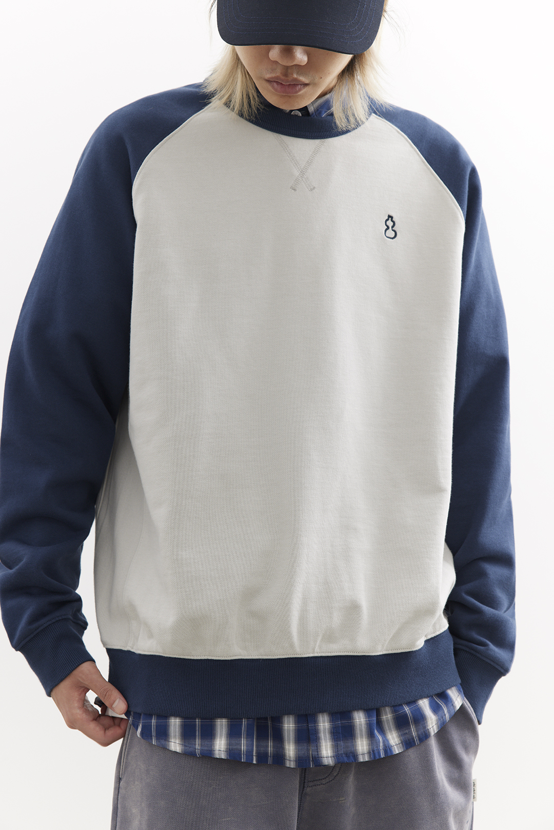 吃茶去chichaqu25经典插肩拼色全棉圆领卫衣宽松休闲运动街头百搭