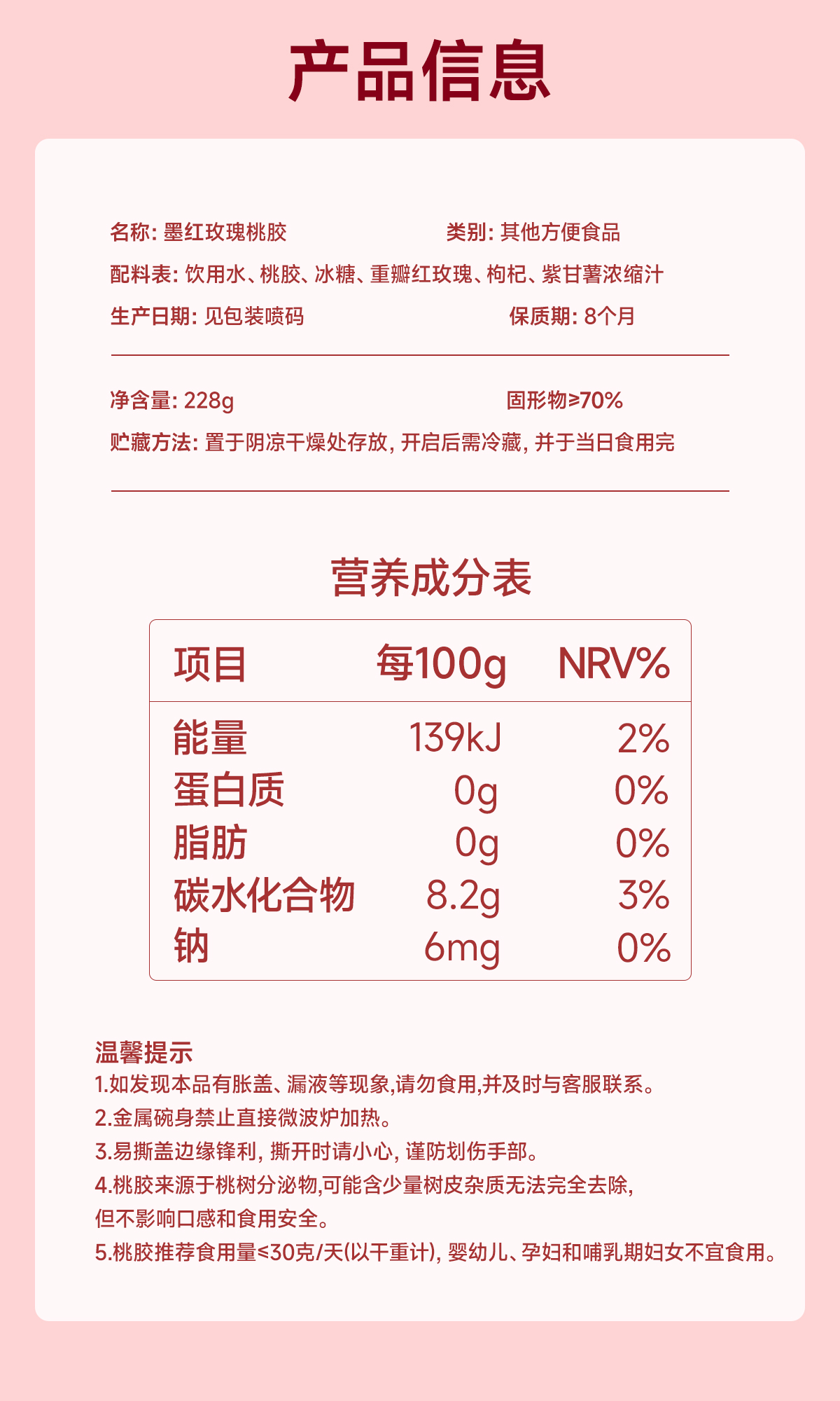【老客专享价】中秋节 极盏 墨红玫瑰桃胶 十年老树桃胶 228g/碗*8碗起