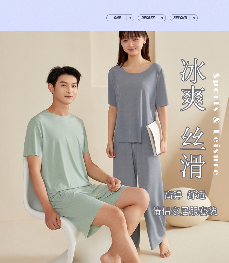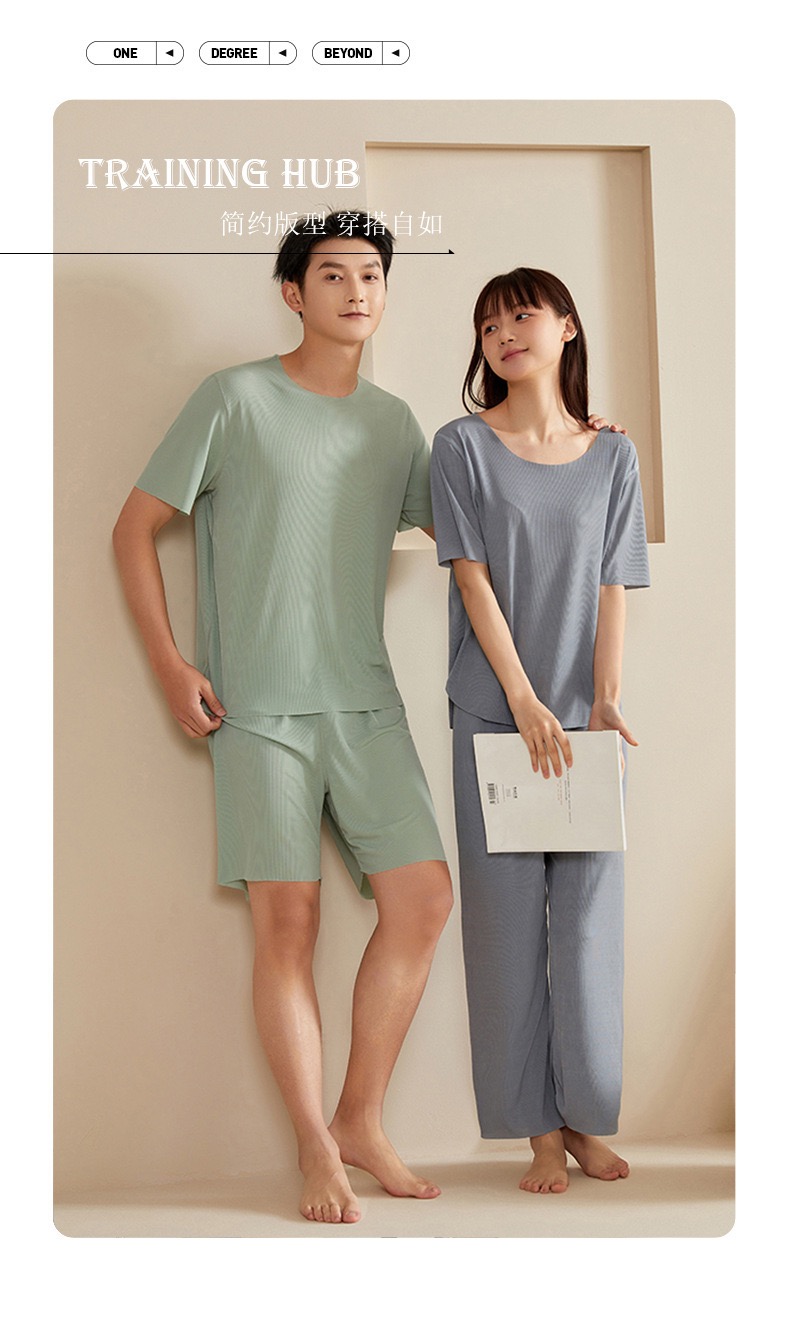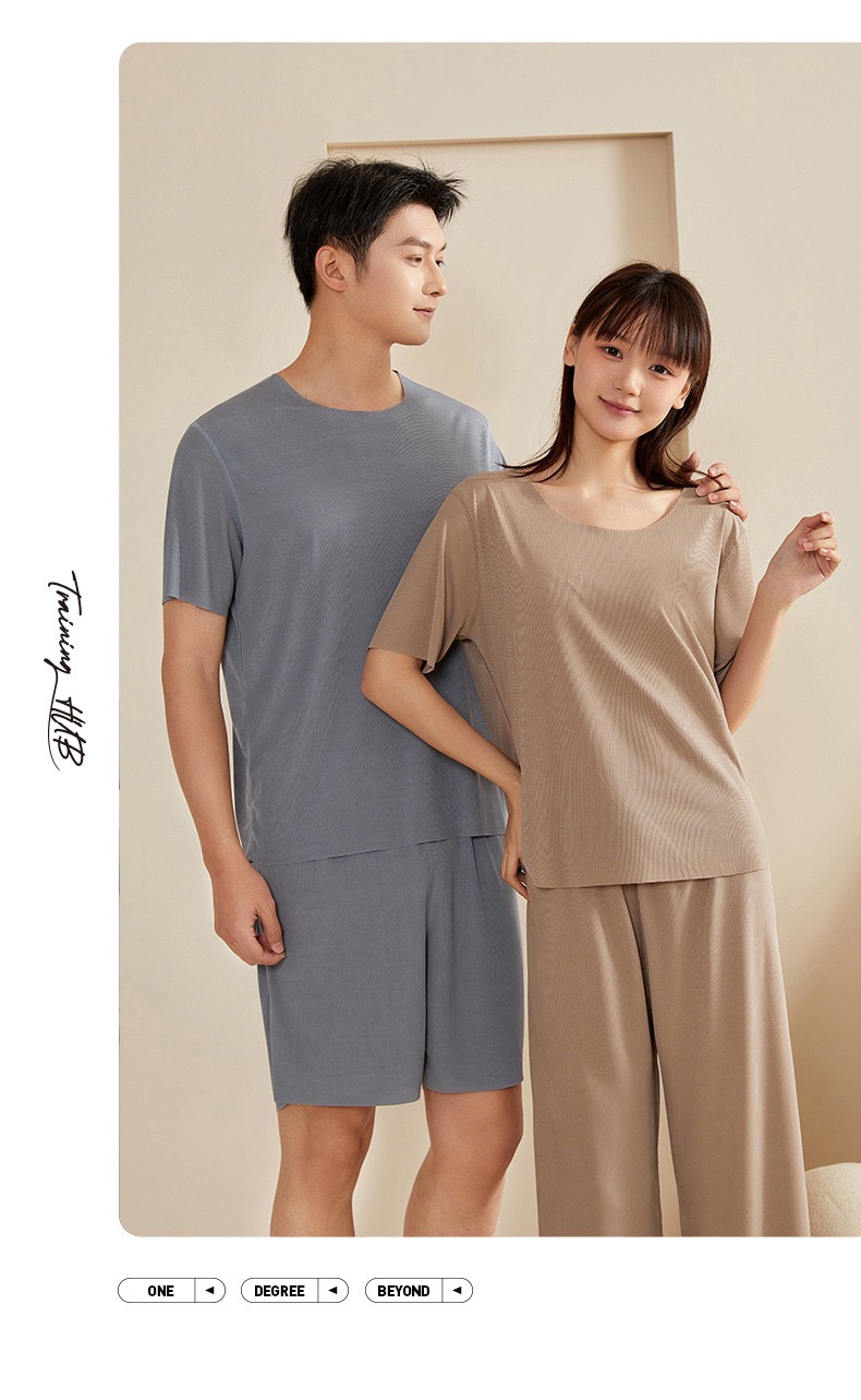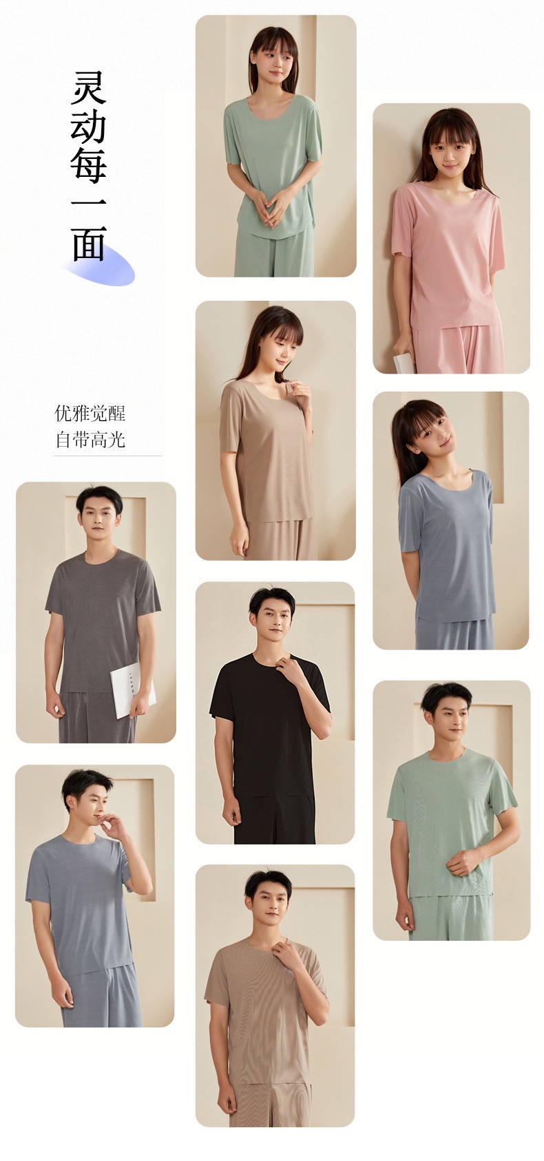 【热销任选两套69元】司纤2025年热销爆款男女款凉感冰丝螺纹睡衣套装(单拍不发货)