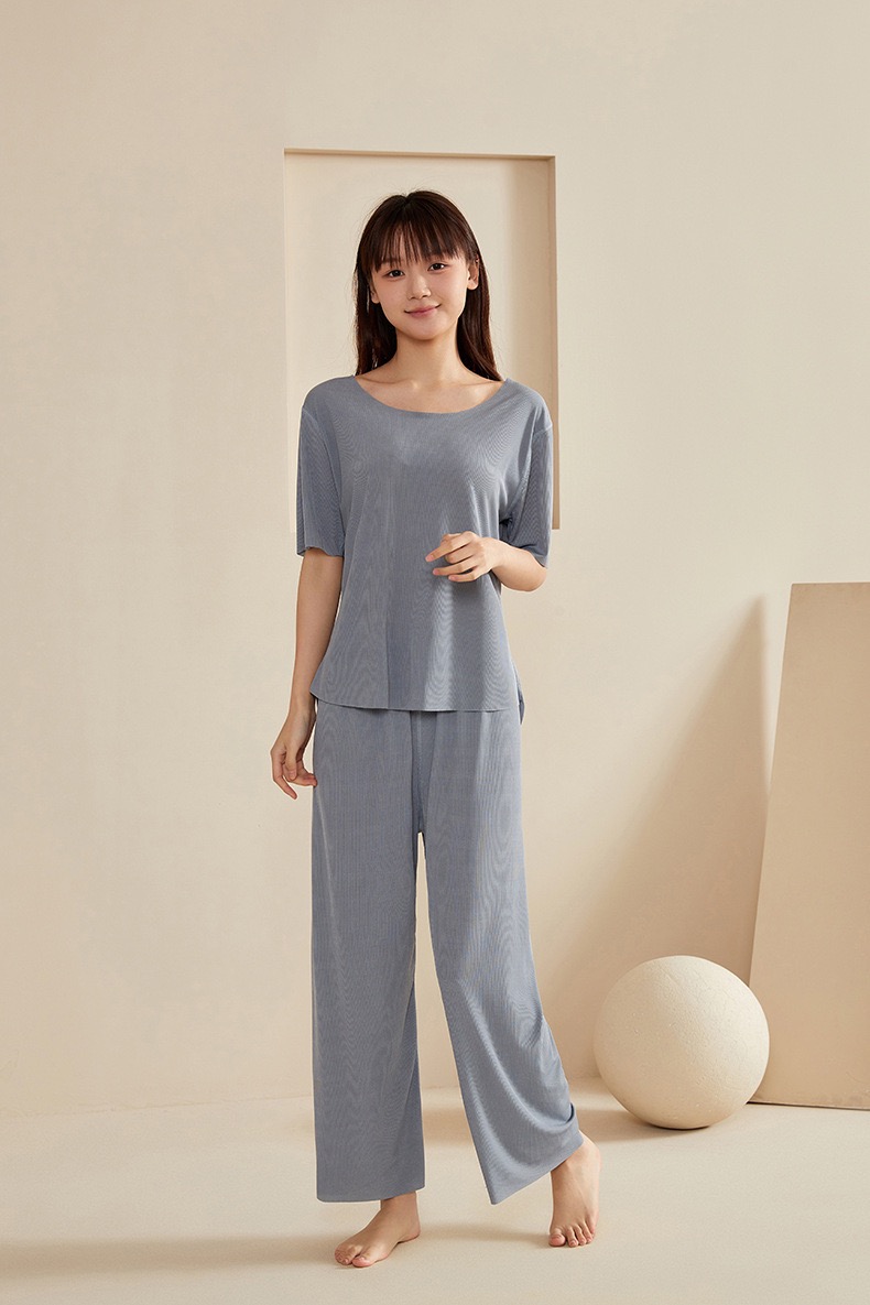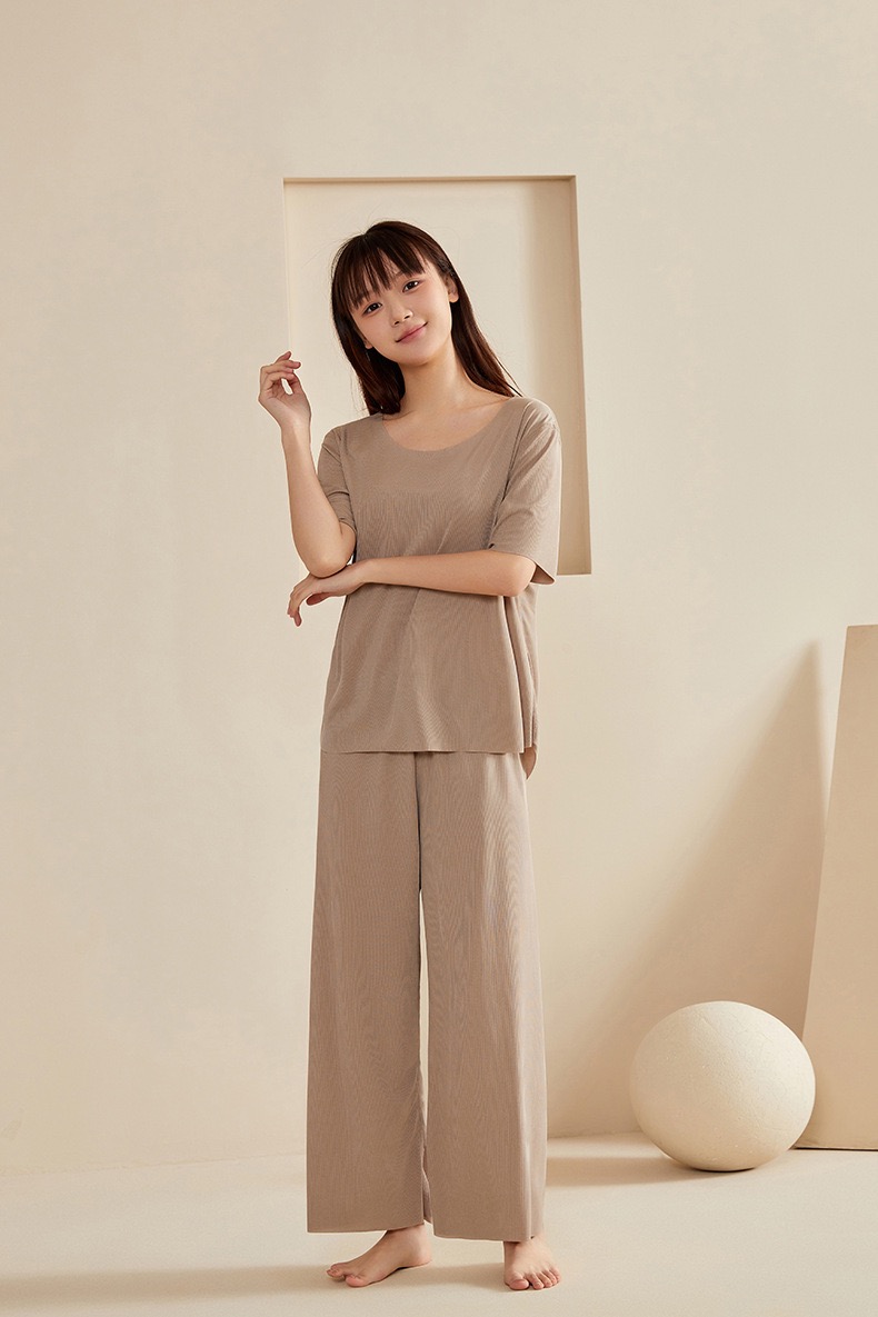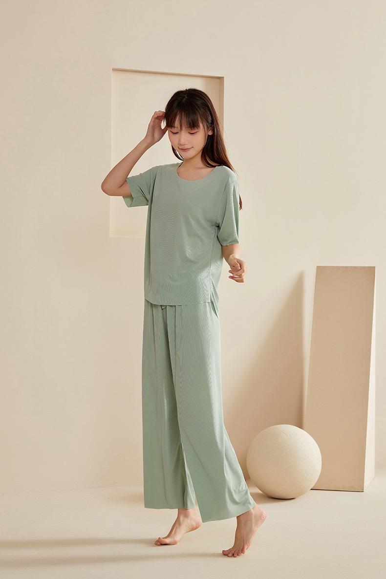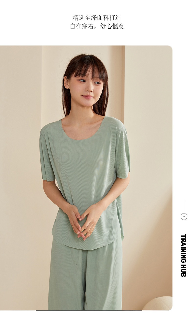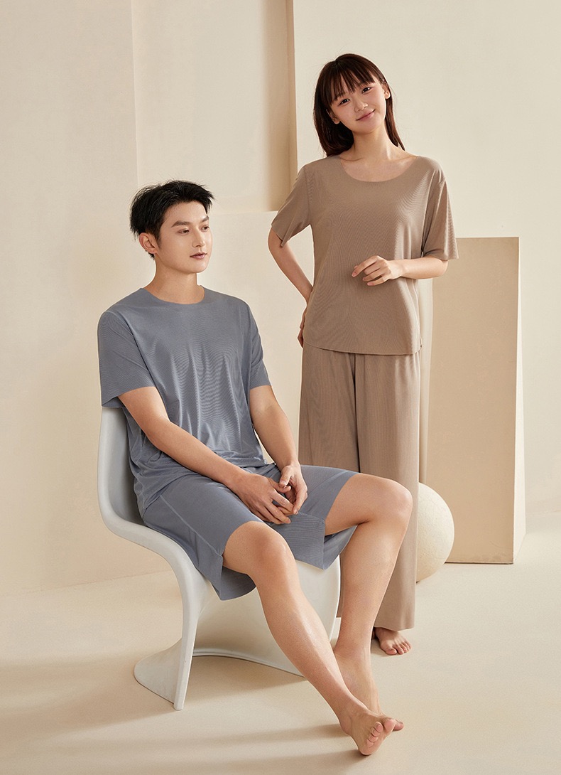 【热销任选两套69元】司纤2025年热销爆款男女款凉感冰丝螺纹睡衣套装(单拍不发货)