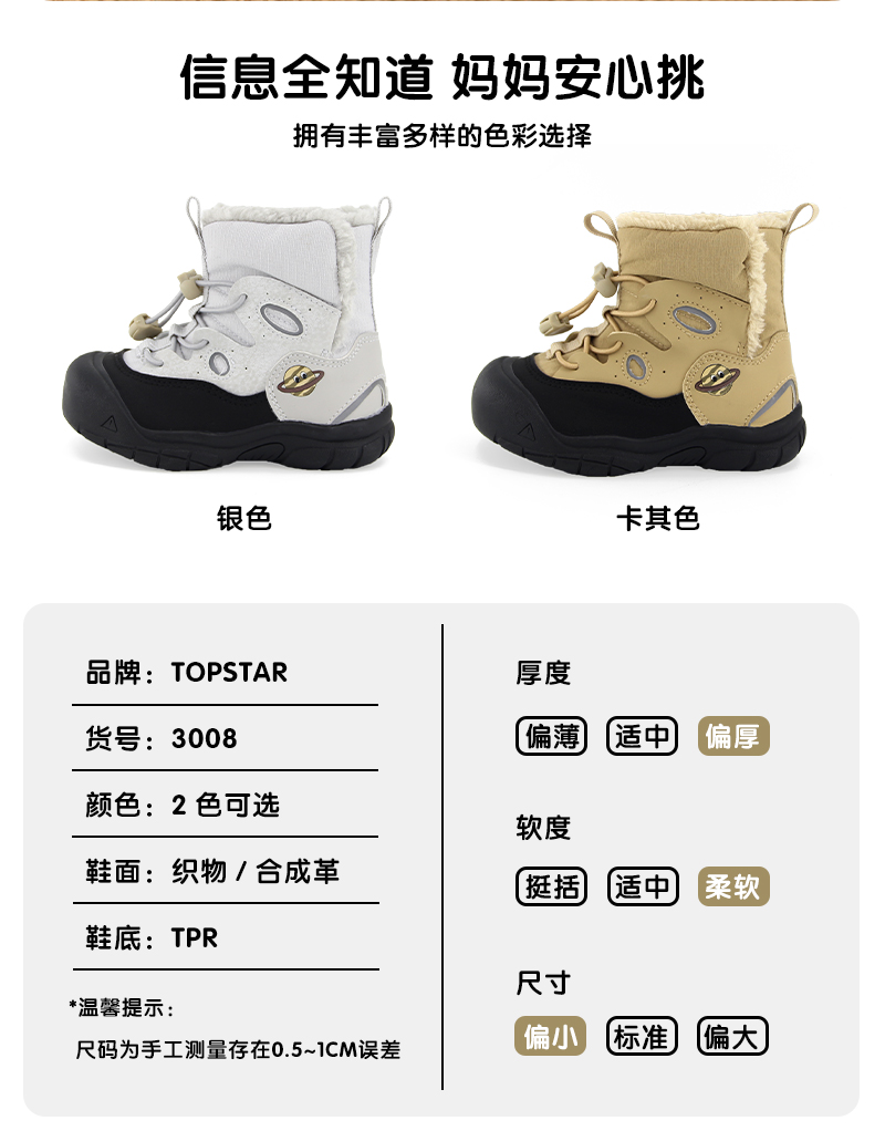 TOPSTAR2024冬季新款软底儿童雪地靴3008