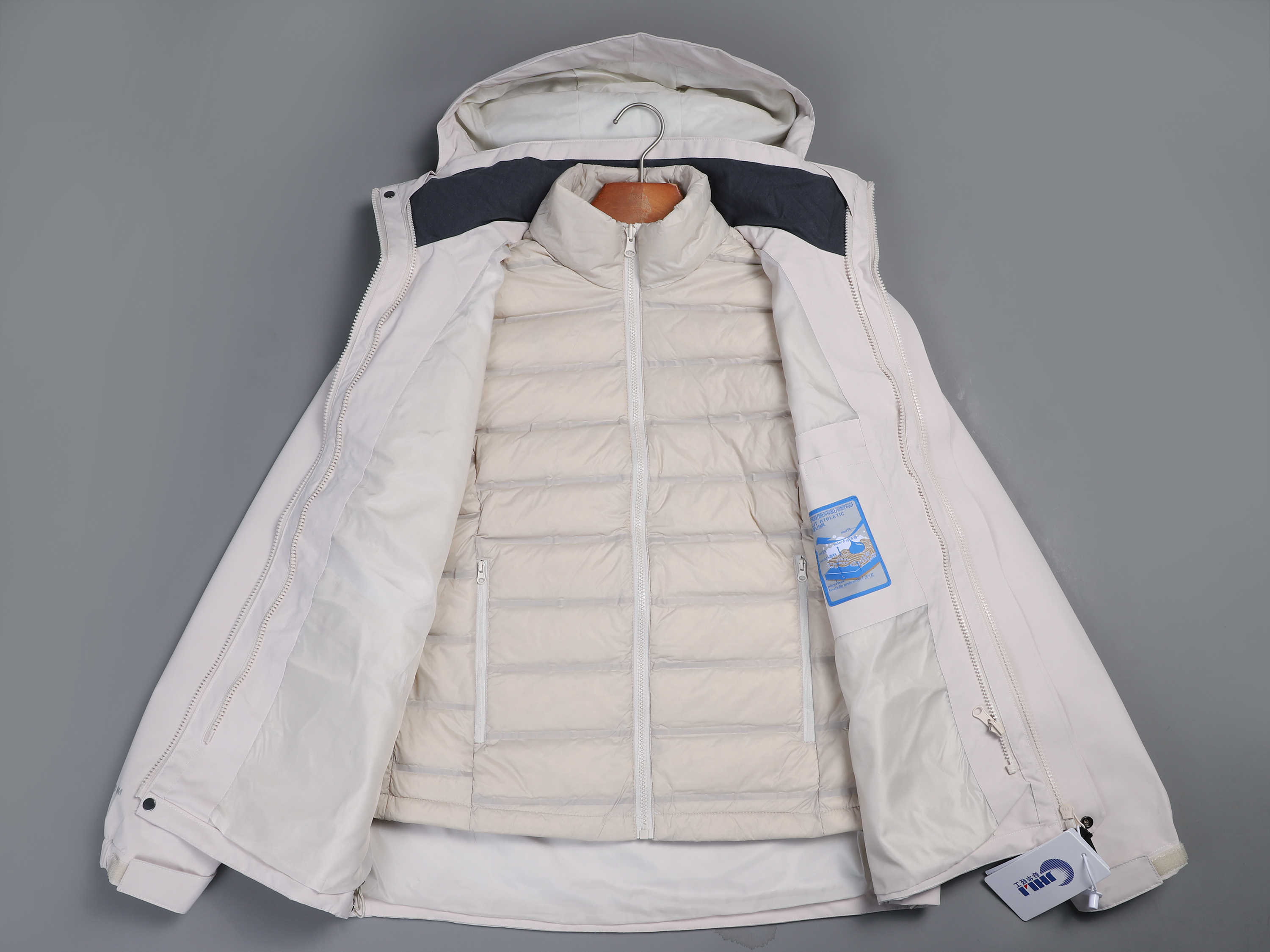 三合一是指:外套可以单穿,内胆可以单穿,外套连接内胆也可以穿,共3种穿法,因此叫三合一。
