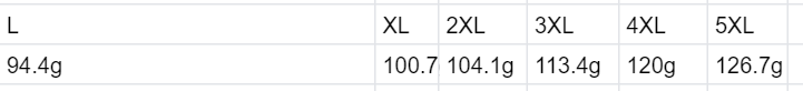 充绒量具体如下: