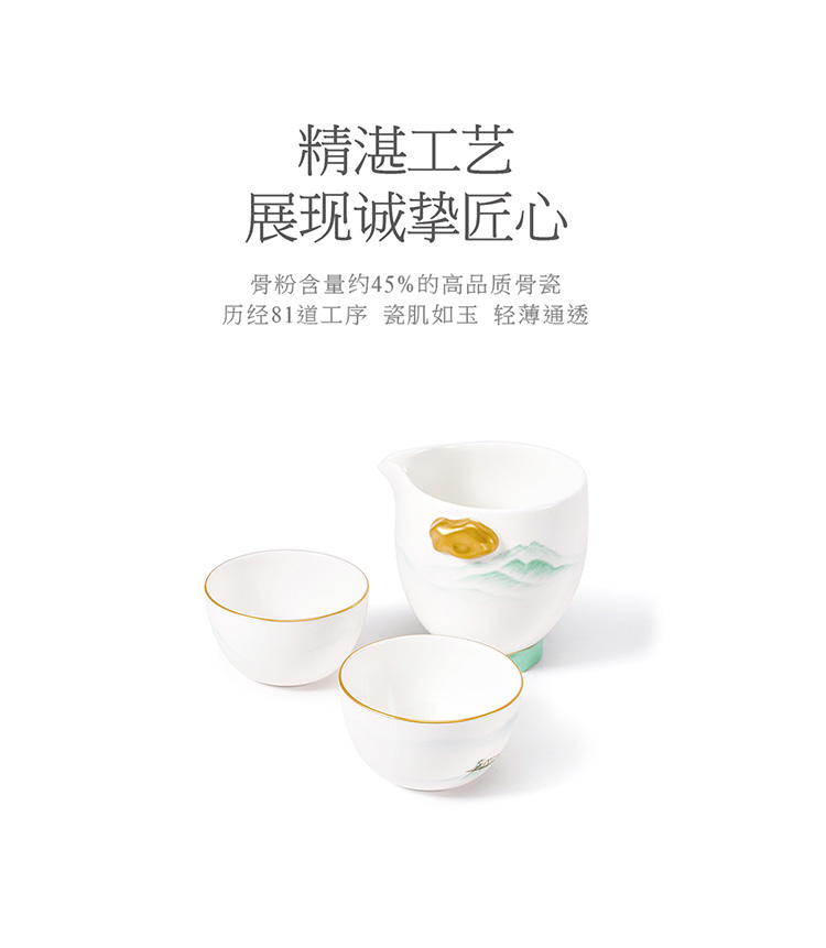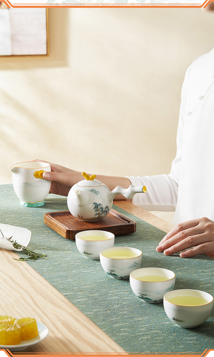 【6F】玛戈隆特 8头西湖盛宴听风4人份骨瓷功夫茶具套装家用中式创意礼盒装