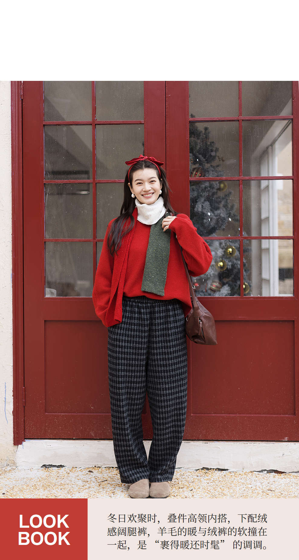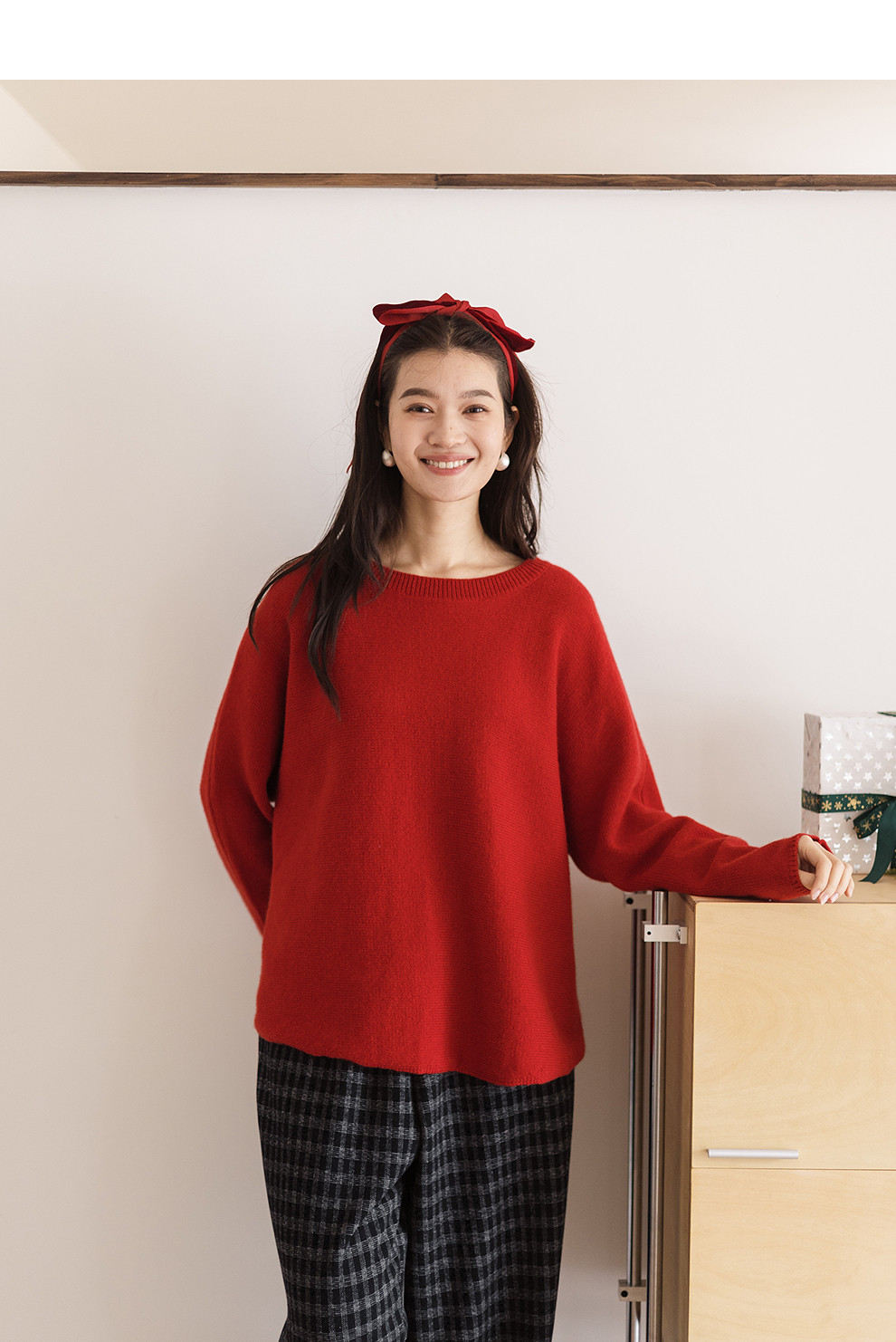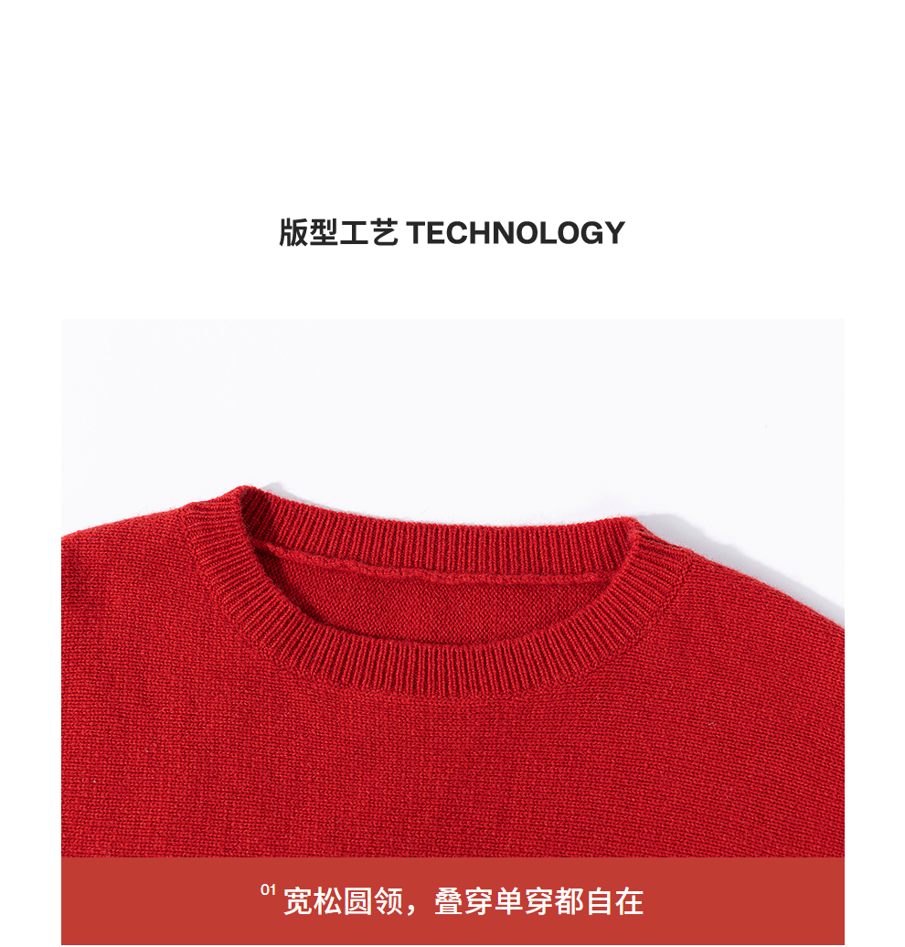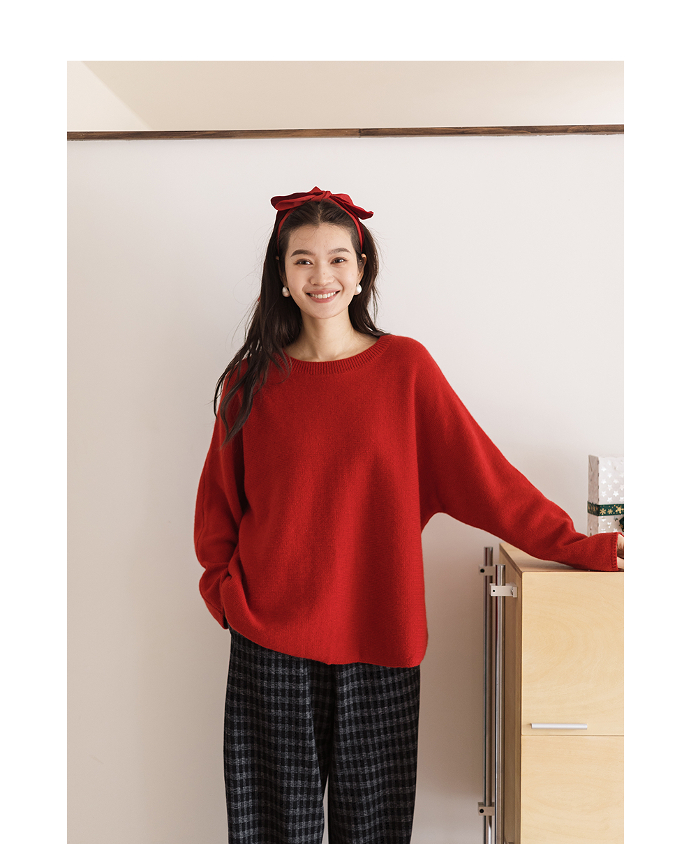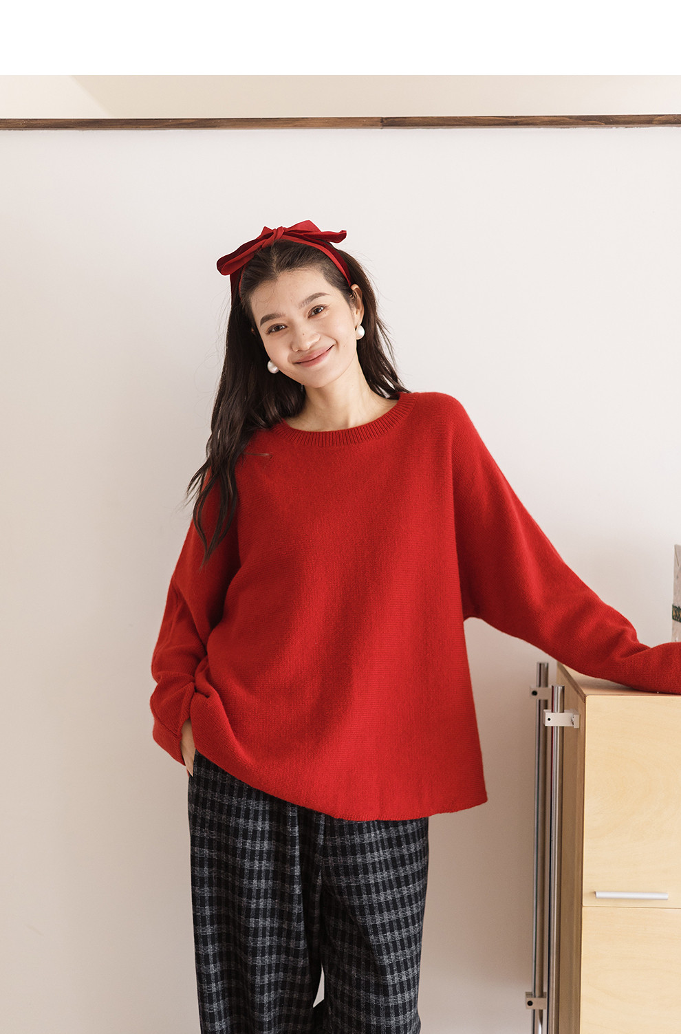 绽放858朵/松弛与暖·纯羊毛衫宽松圆领长袖套头毛针织衫女冬毛衣