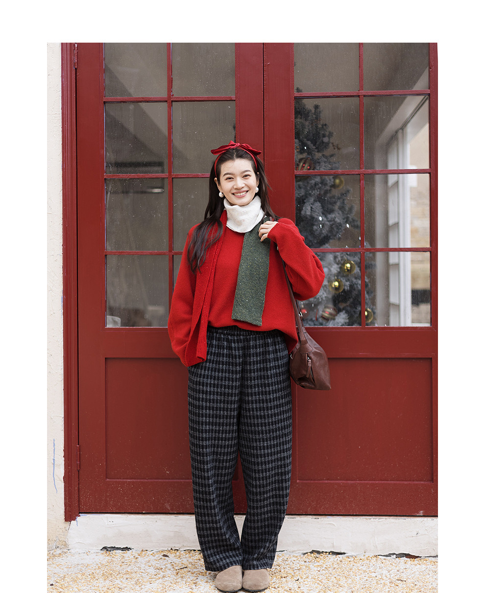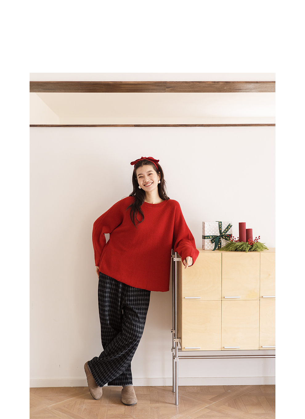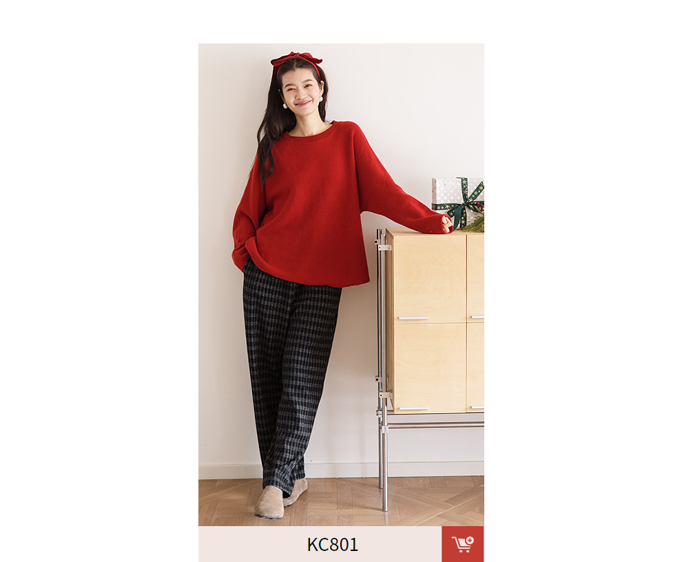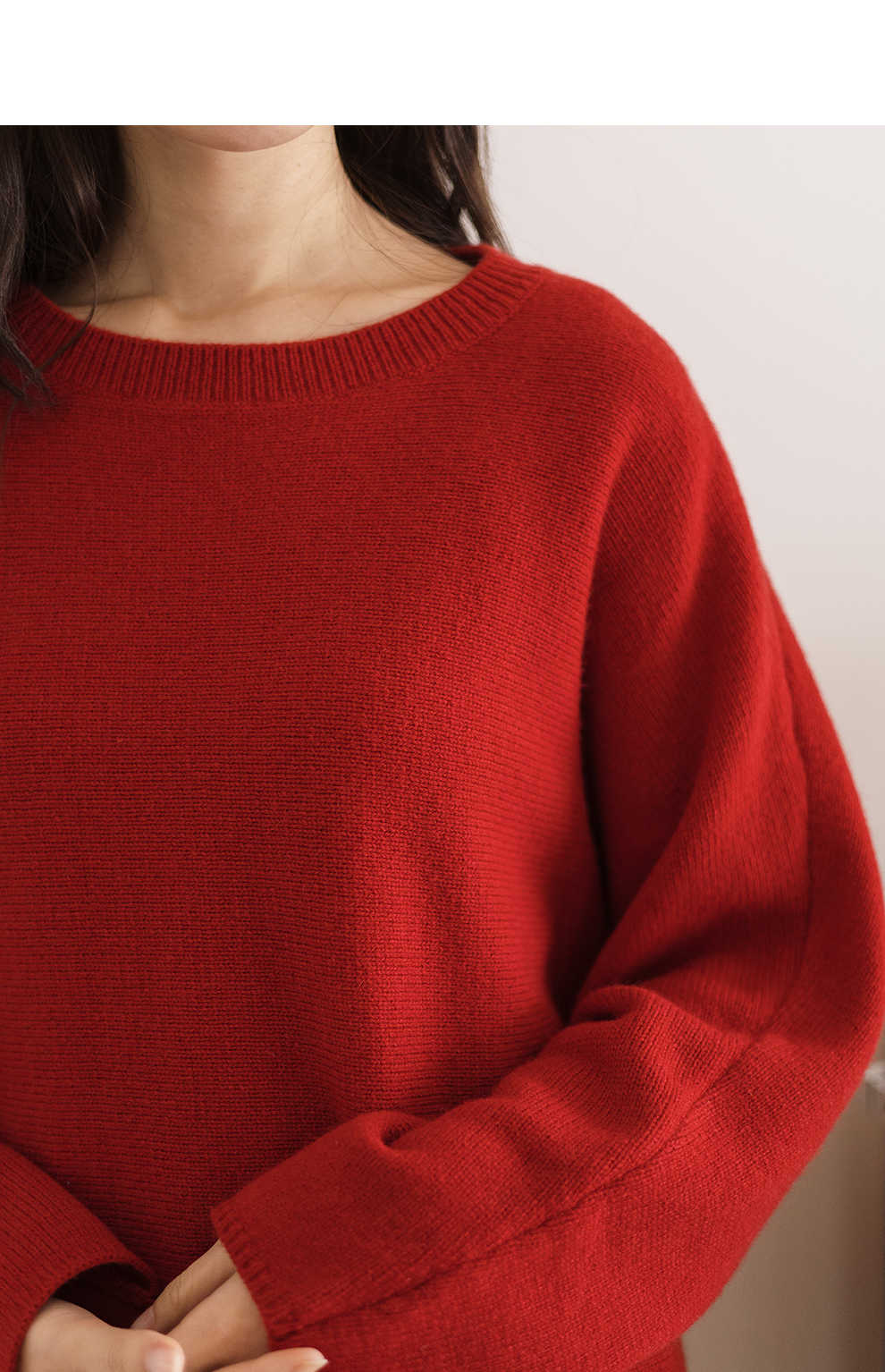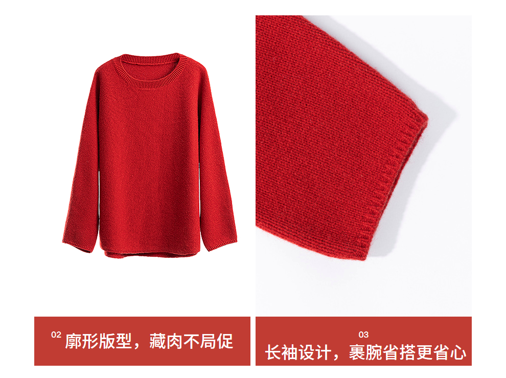 绽放858朵/松弛与暖·纯羊毛衫宽松圆领长袖套头毛针织衫女冬毛衣