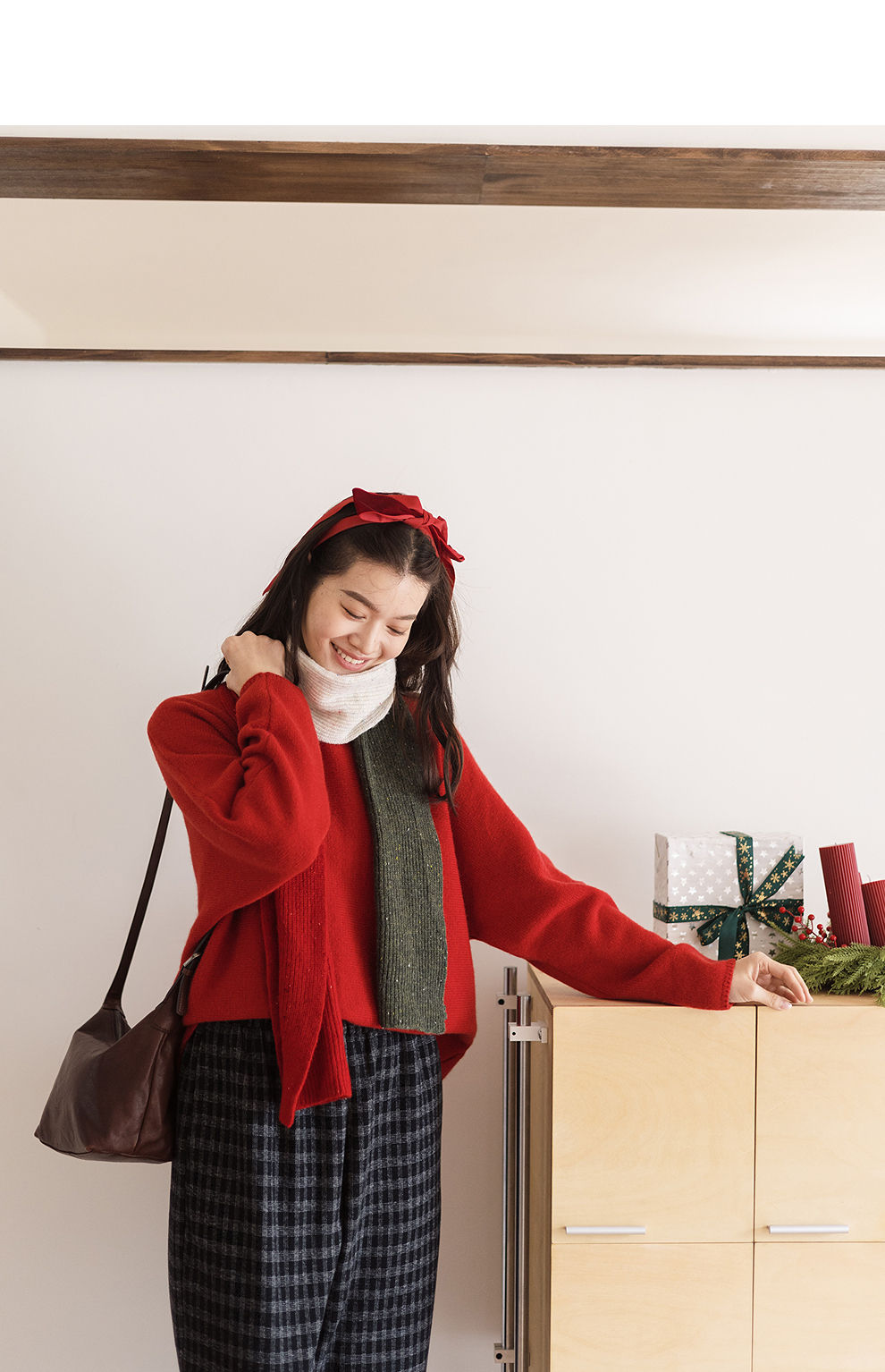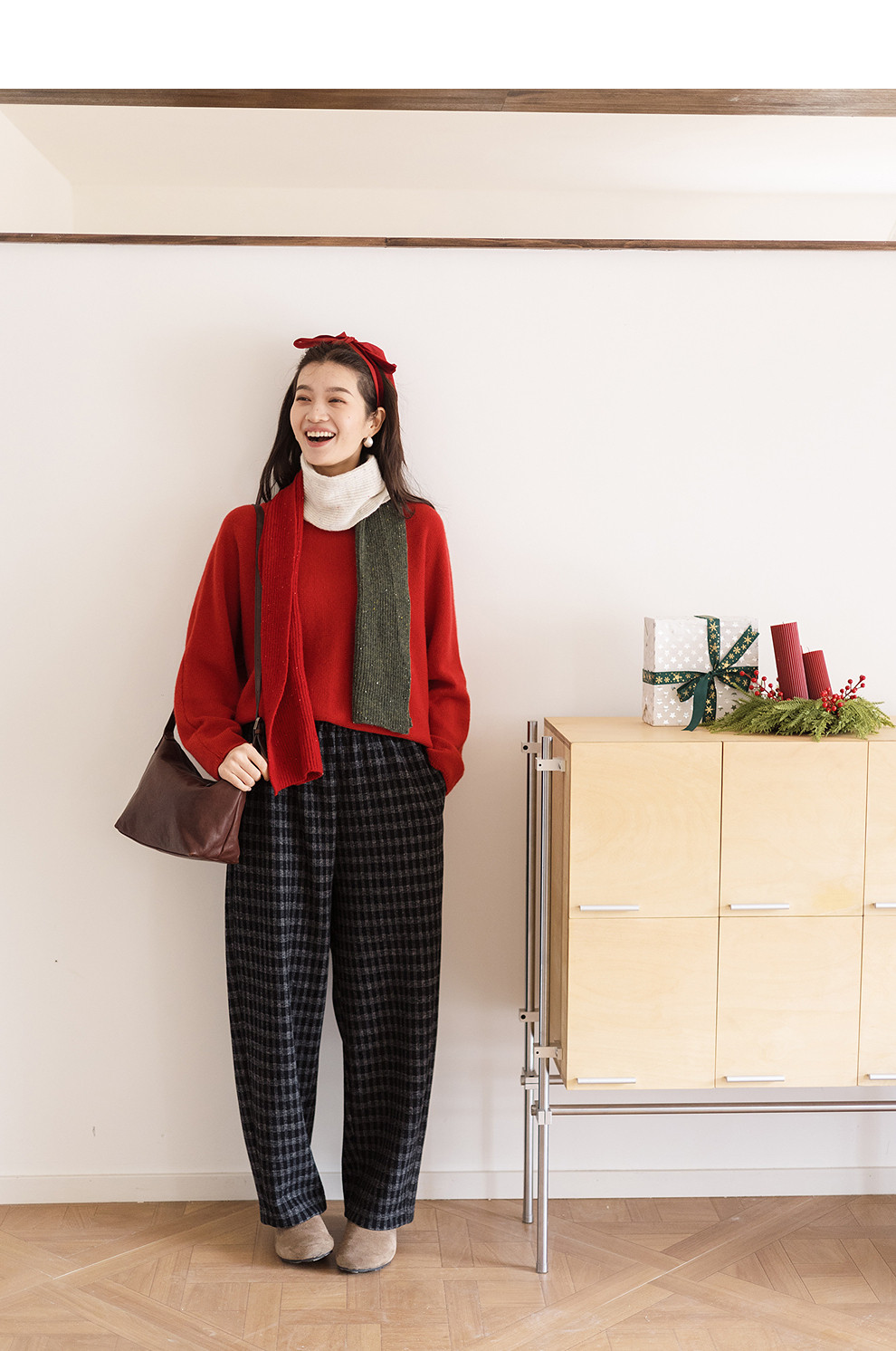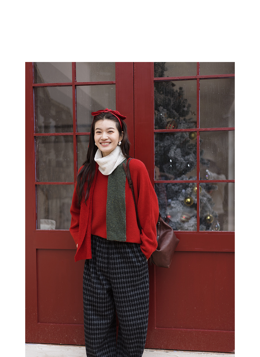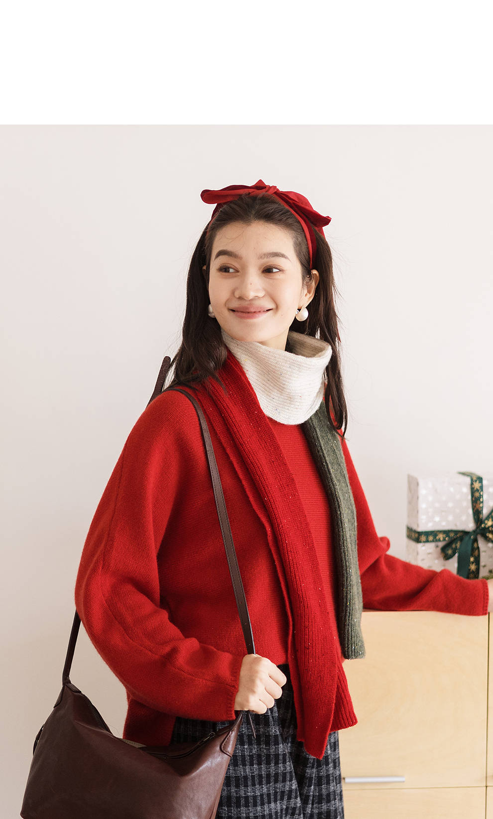 绽放858朵/松弛与暖·纯羊毛衫宽松圆领长袖套头毛针织衫女冬毛衣