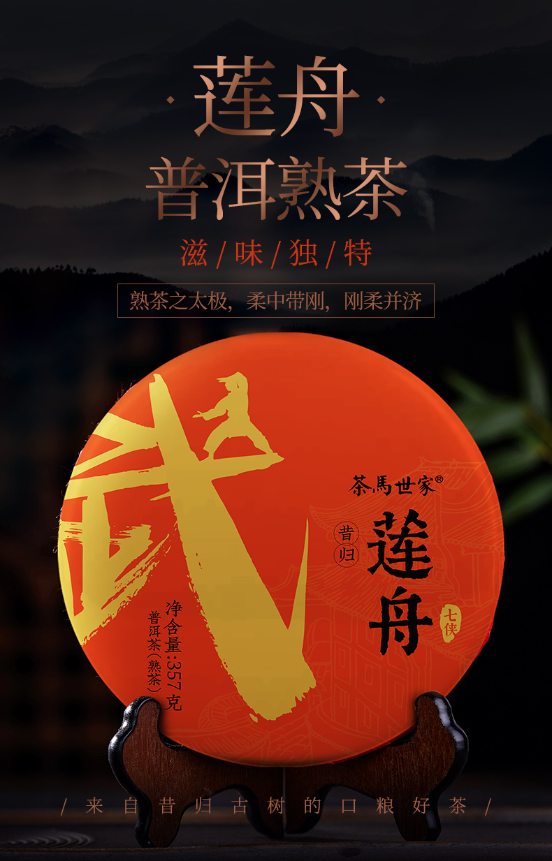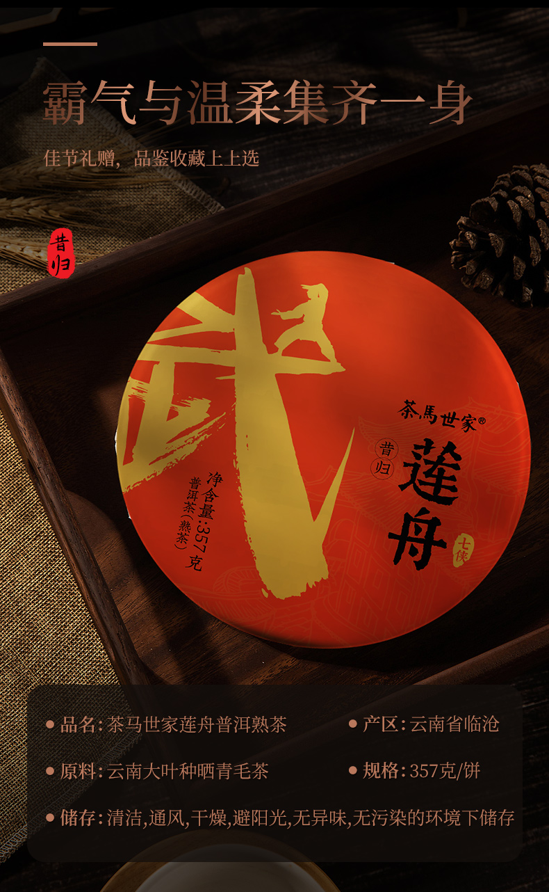 茶马世家丨莲舟 13年陈云南昔归古树普洱熟茶357g 百鸟朝凤礼盒装